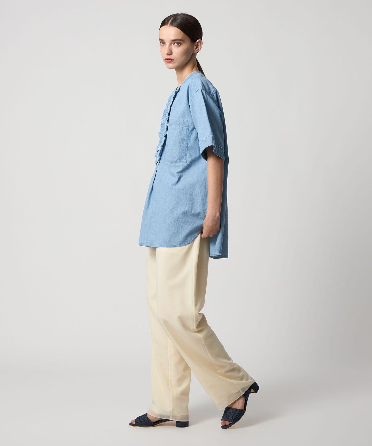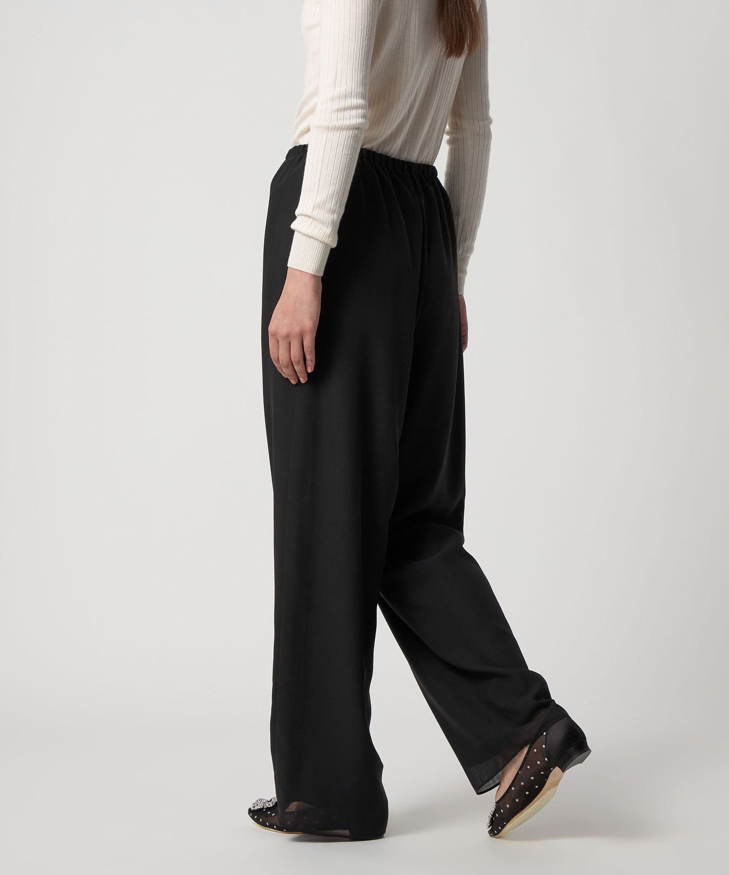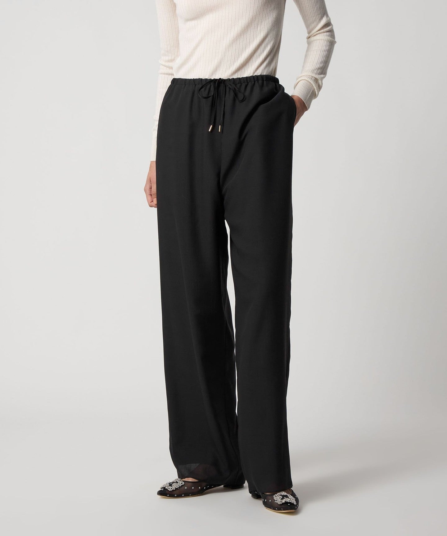 Drawstring pants with a delicate sheer feel that gives off an elegant vibe.