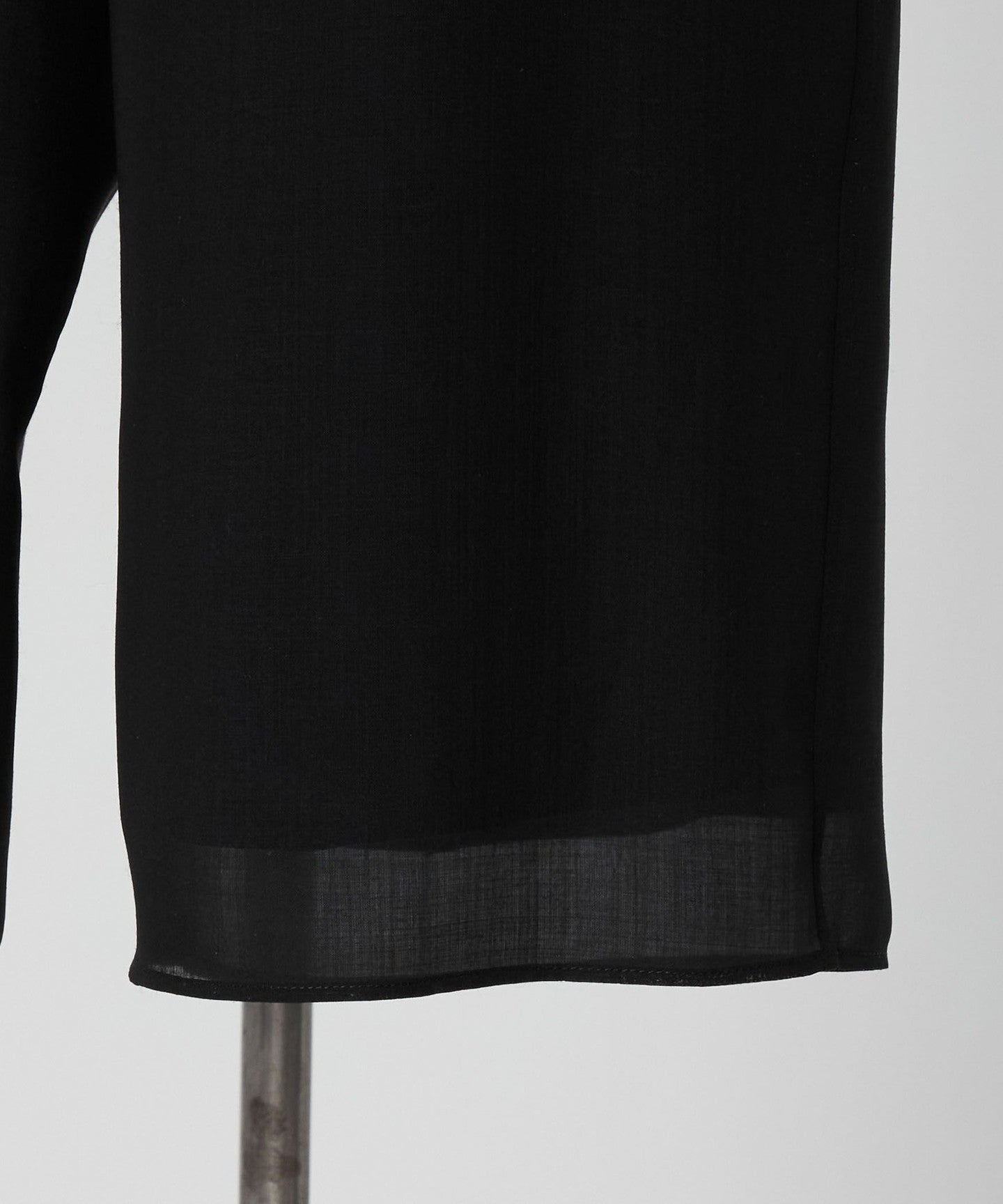 This garment has a sheer outer fabric with a lining, giving it a light feel overall.