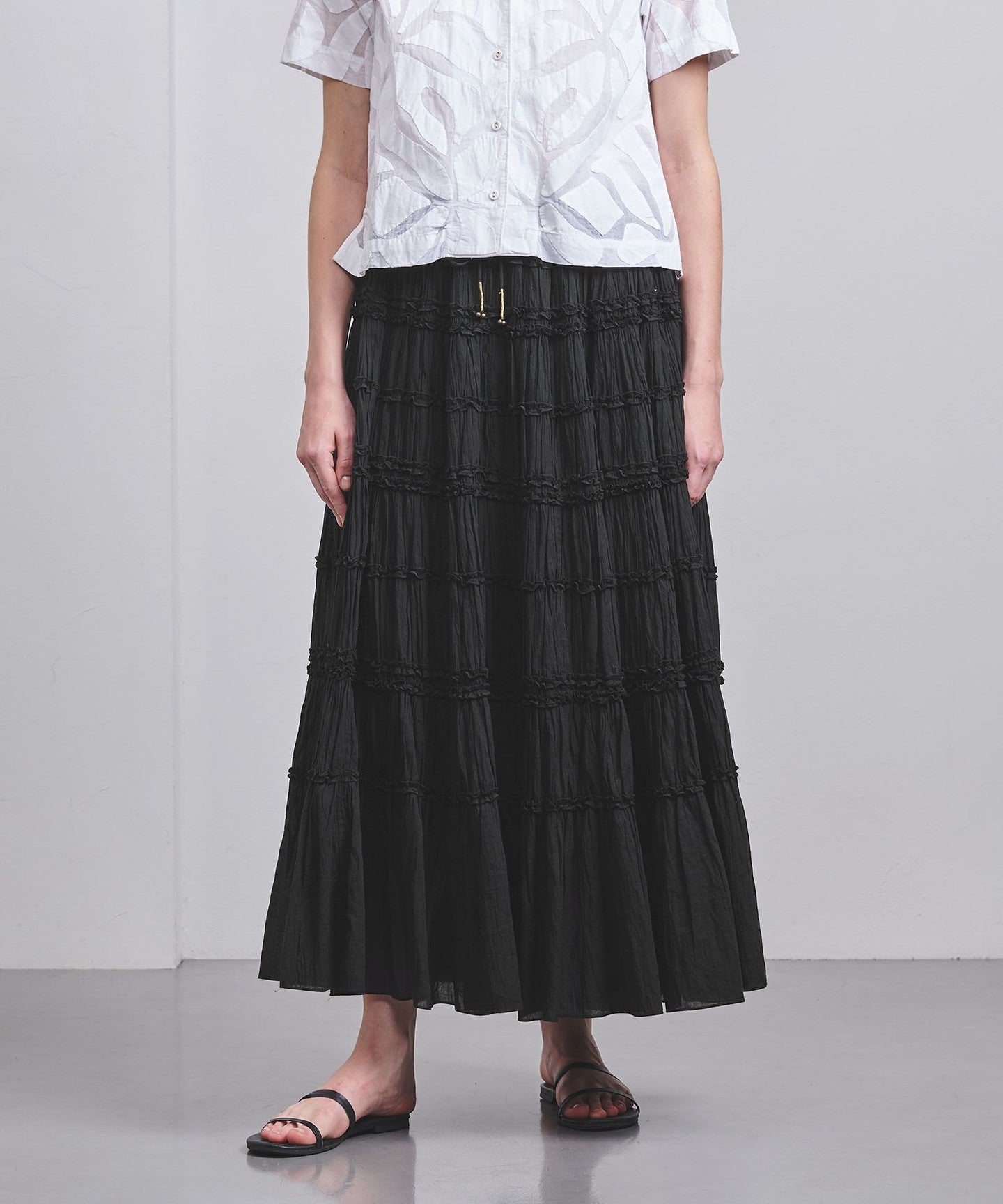 A long skirt with voluminous gathers that gives it a gorgeous look.