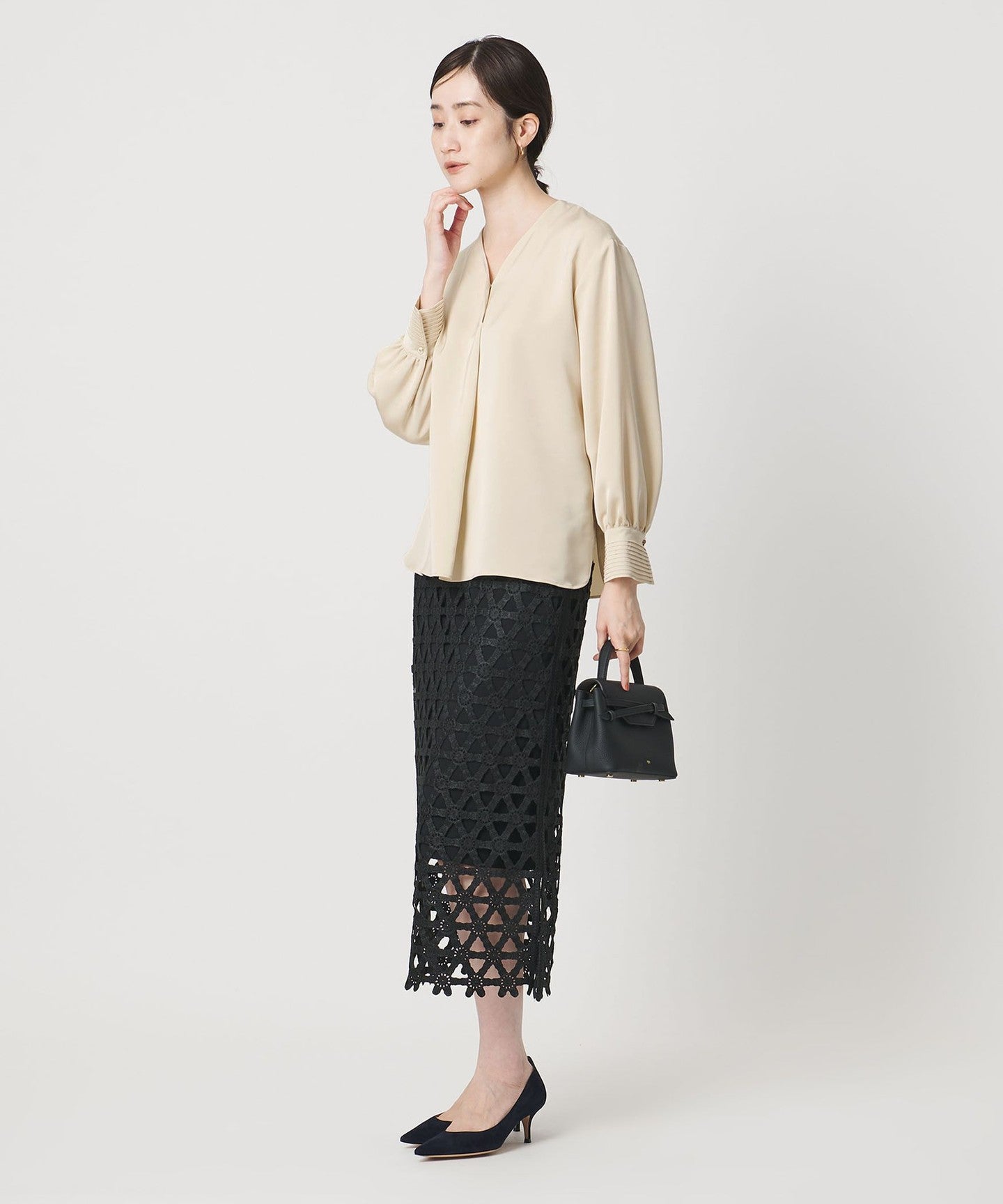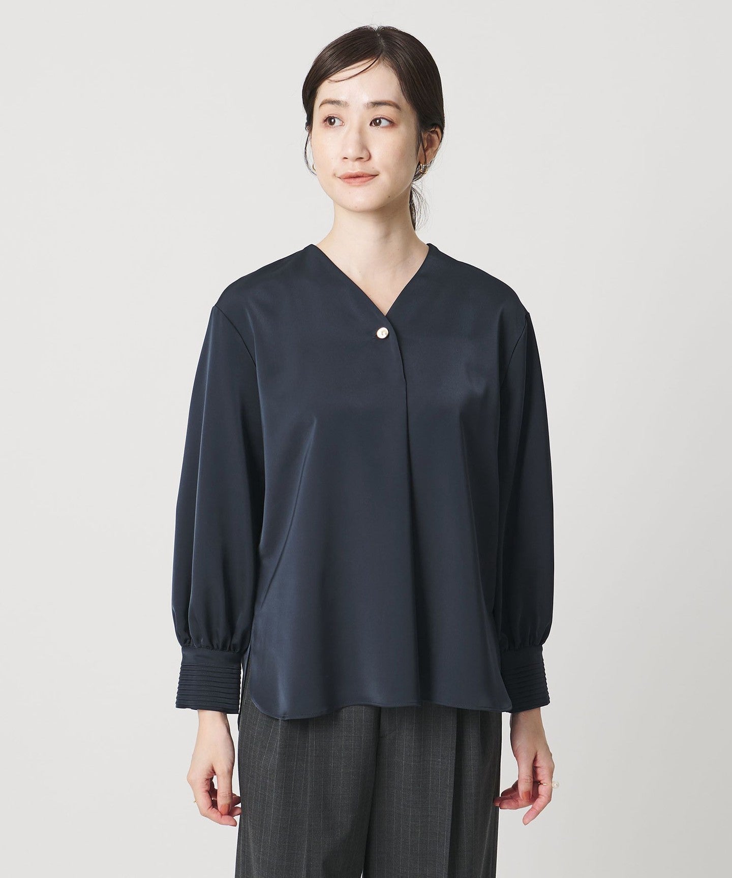 一枚着としてはもちろん、ジャケットのインナーブラウスとしても活躍できる汎用性の高い一着。
