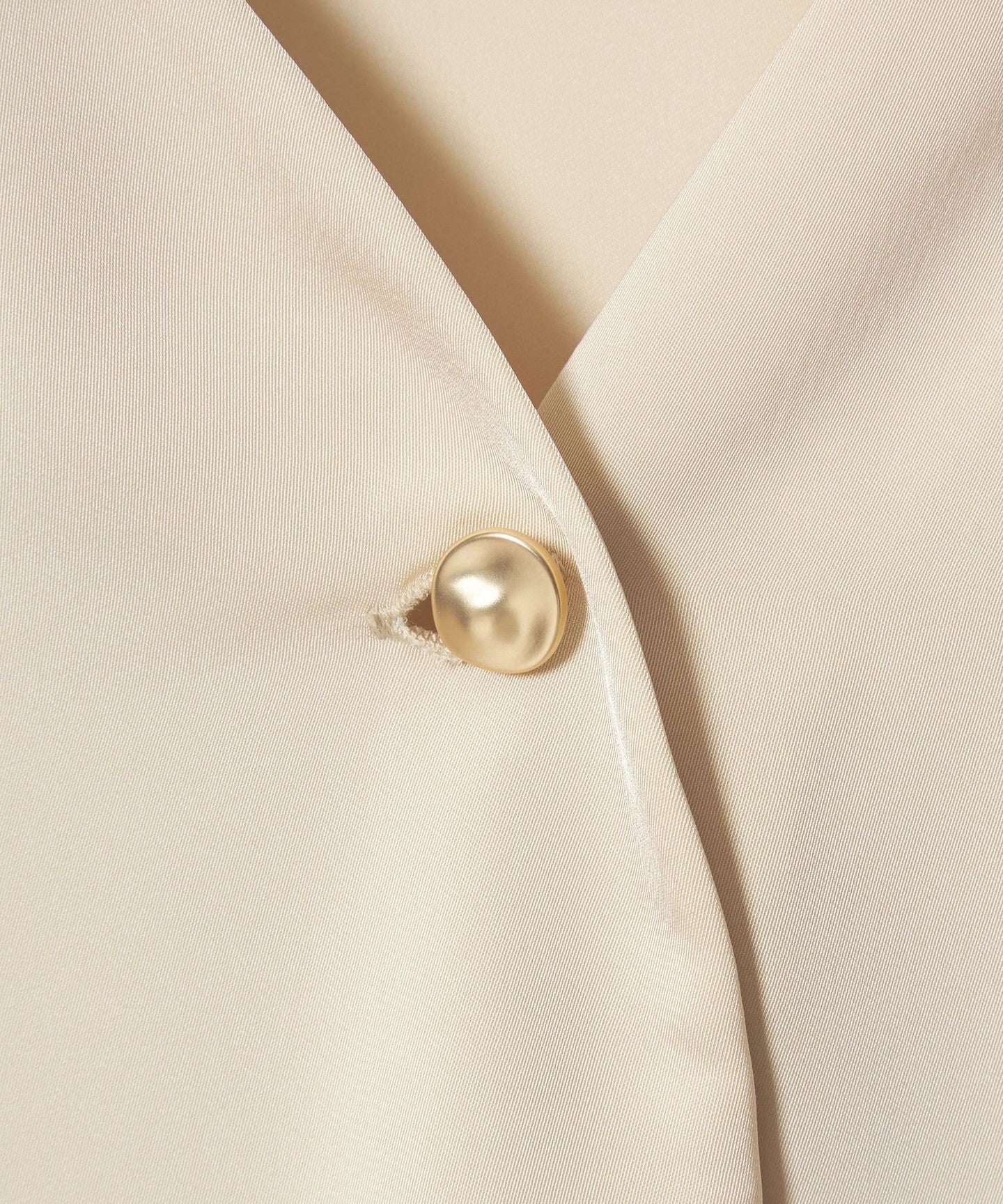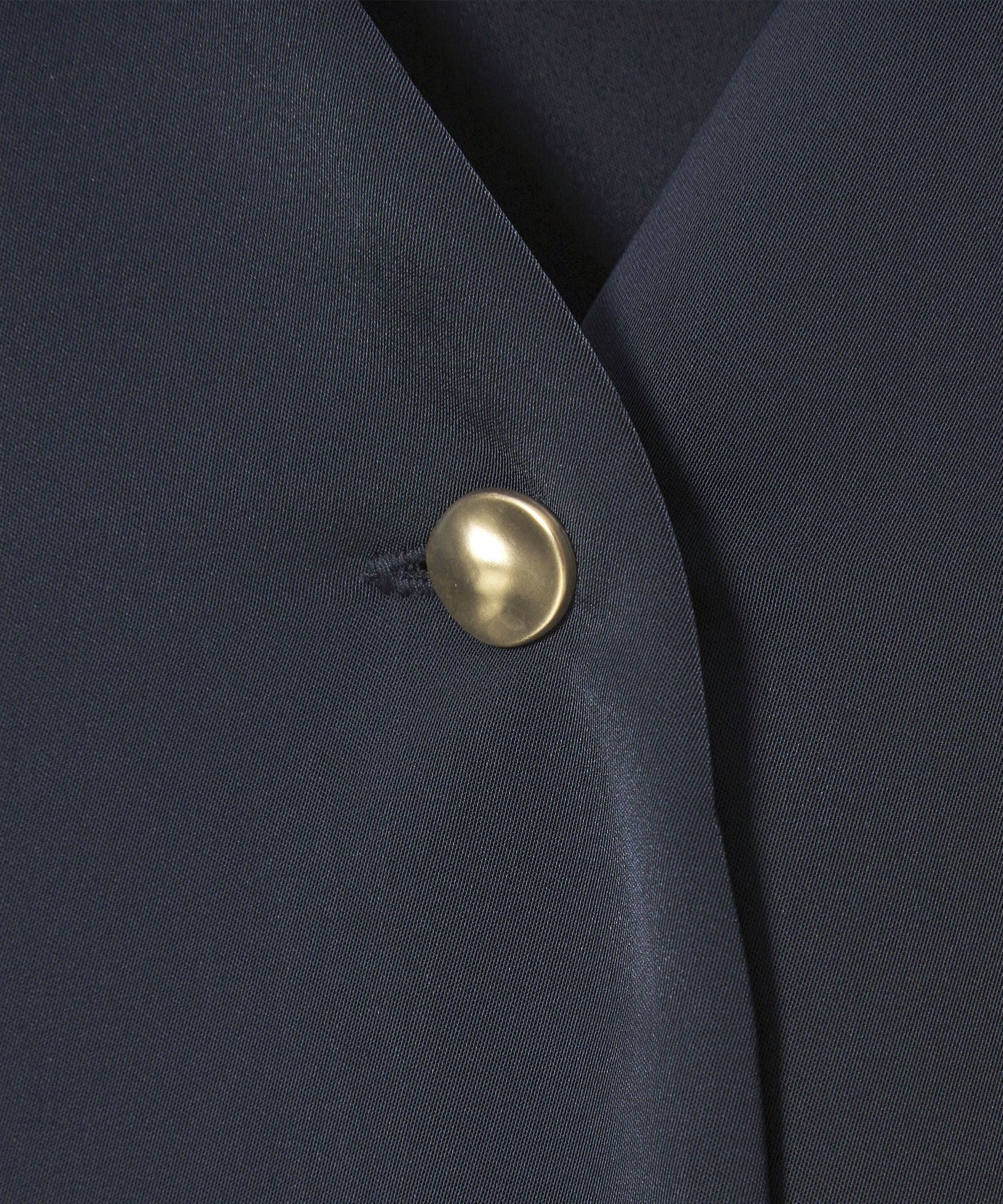 前中心と袖口にはゴールドカラーの変形ボタンをほどこしアクセントに。