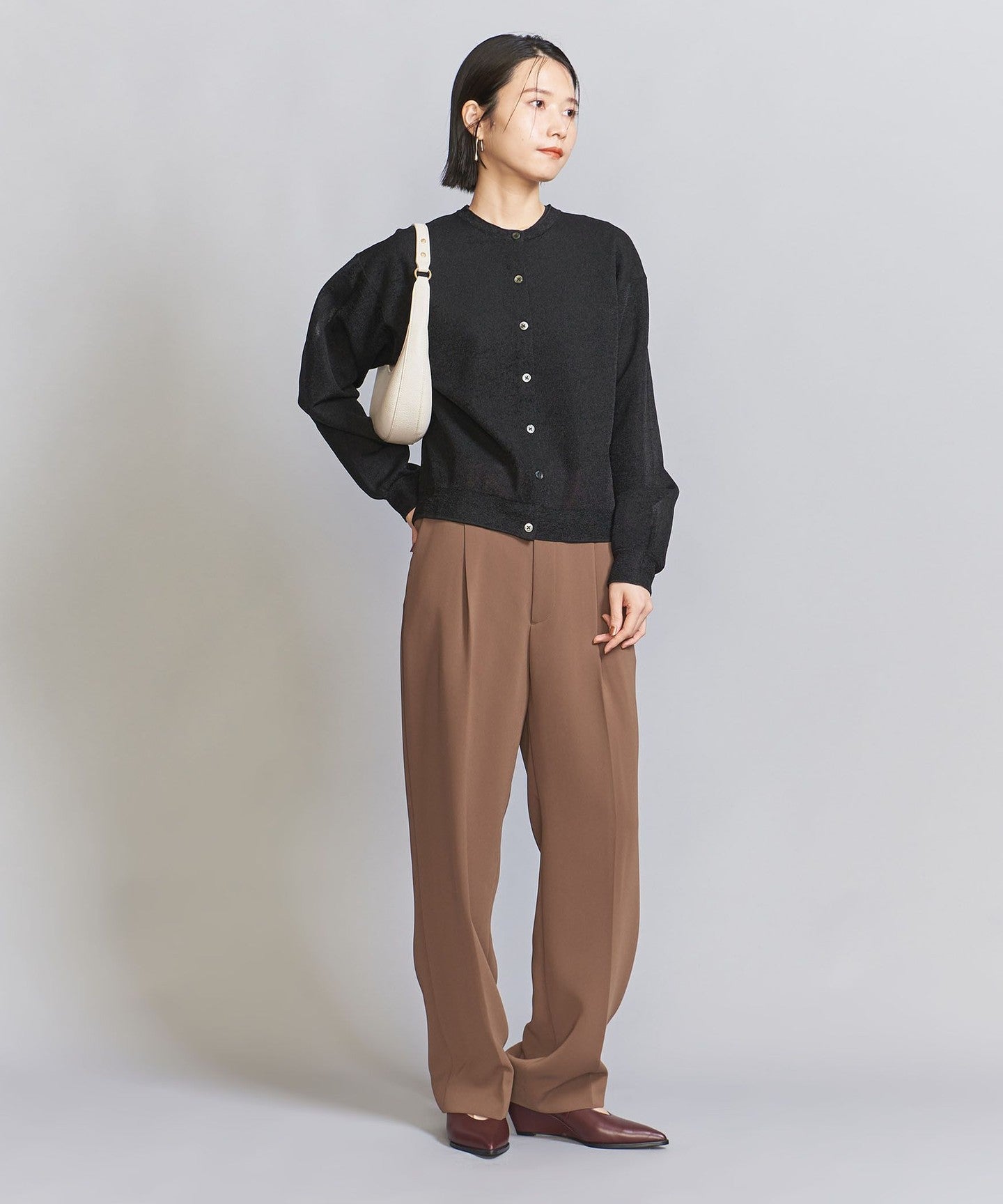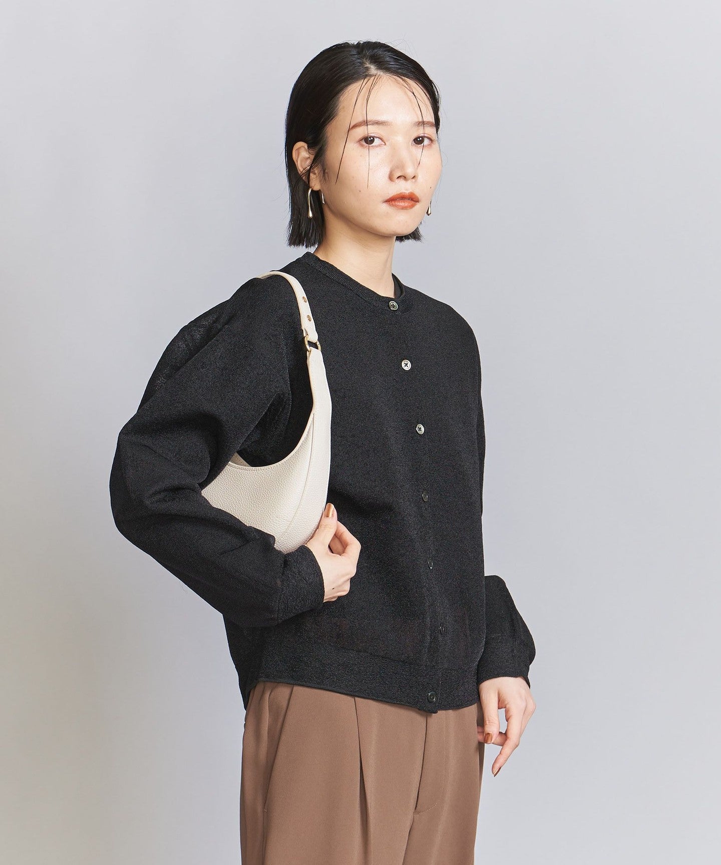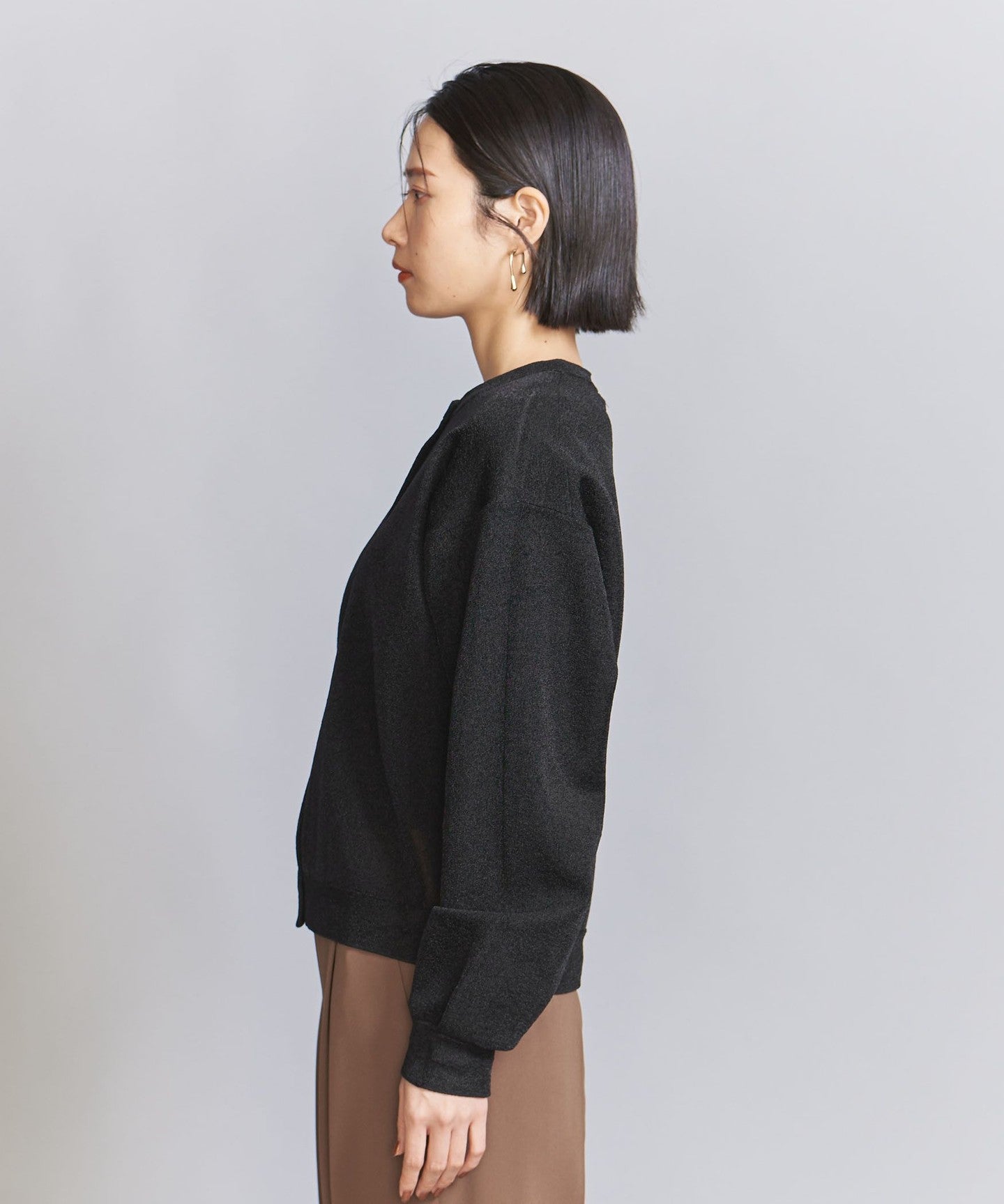 This knit cardigan has a firm texture that is difficult to achieve with knitwear.