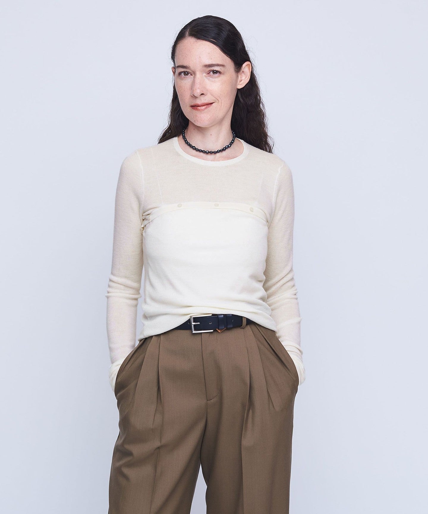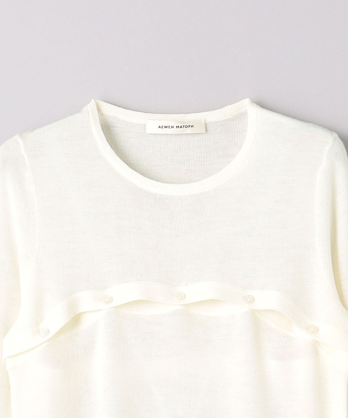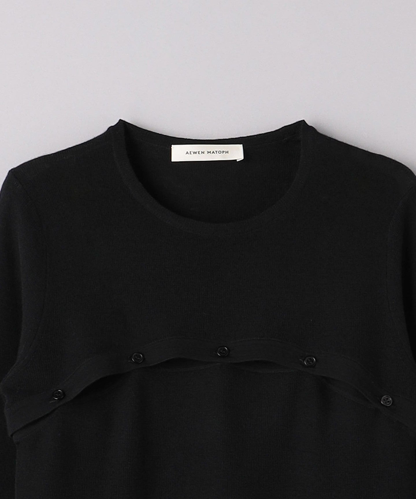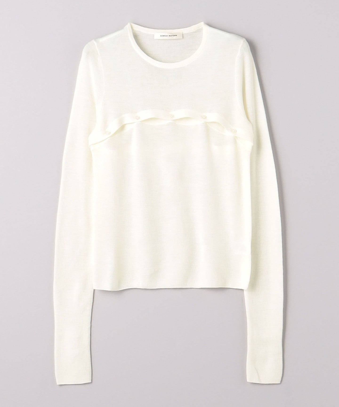 This knit top has a comfortable fit, so we recommend pairing it with wide pants or pants with a cocoon silhouette.