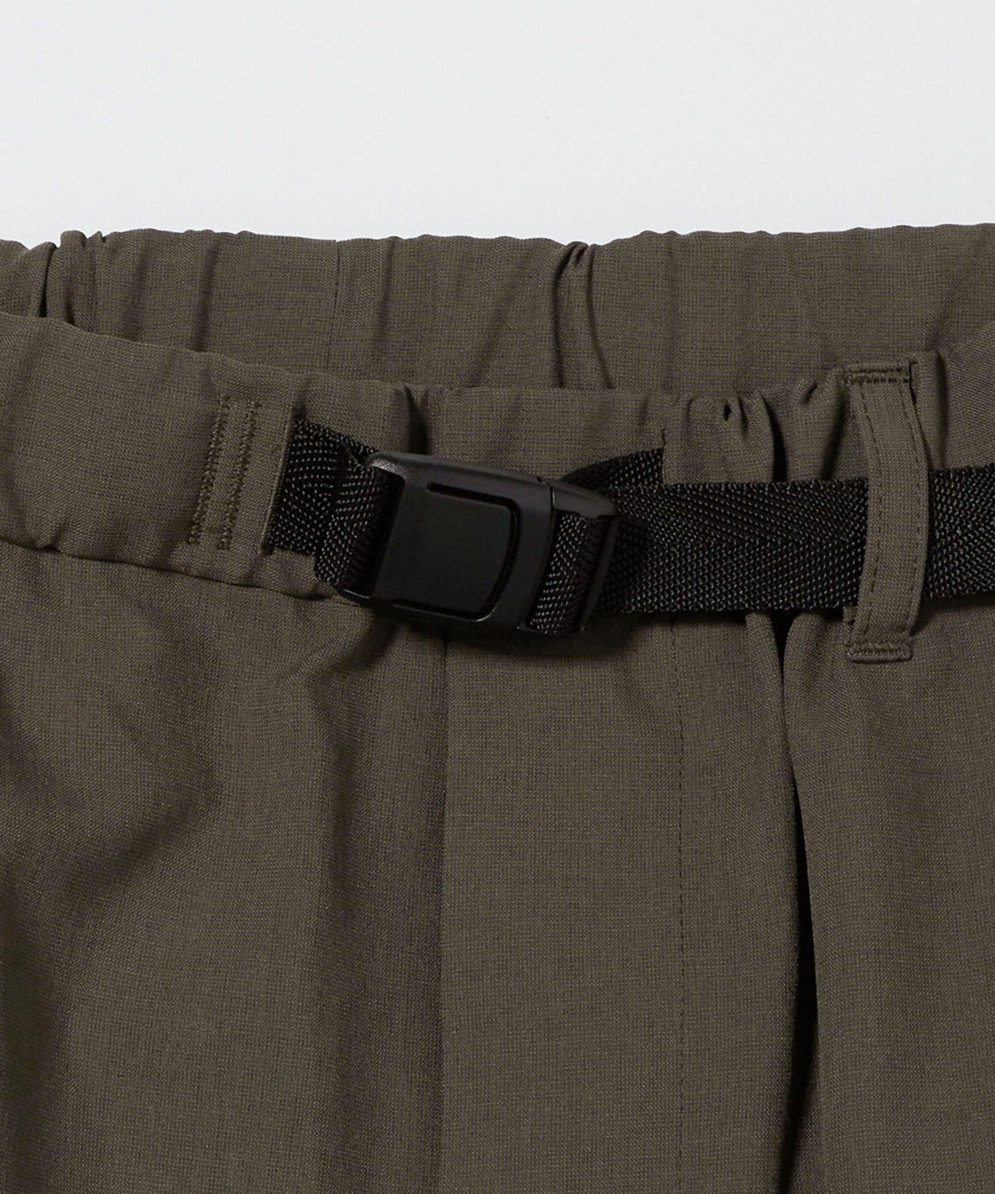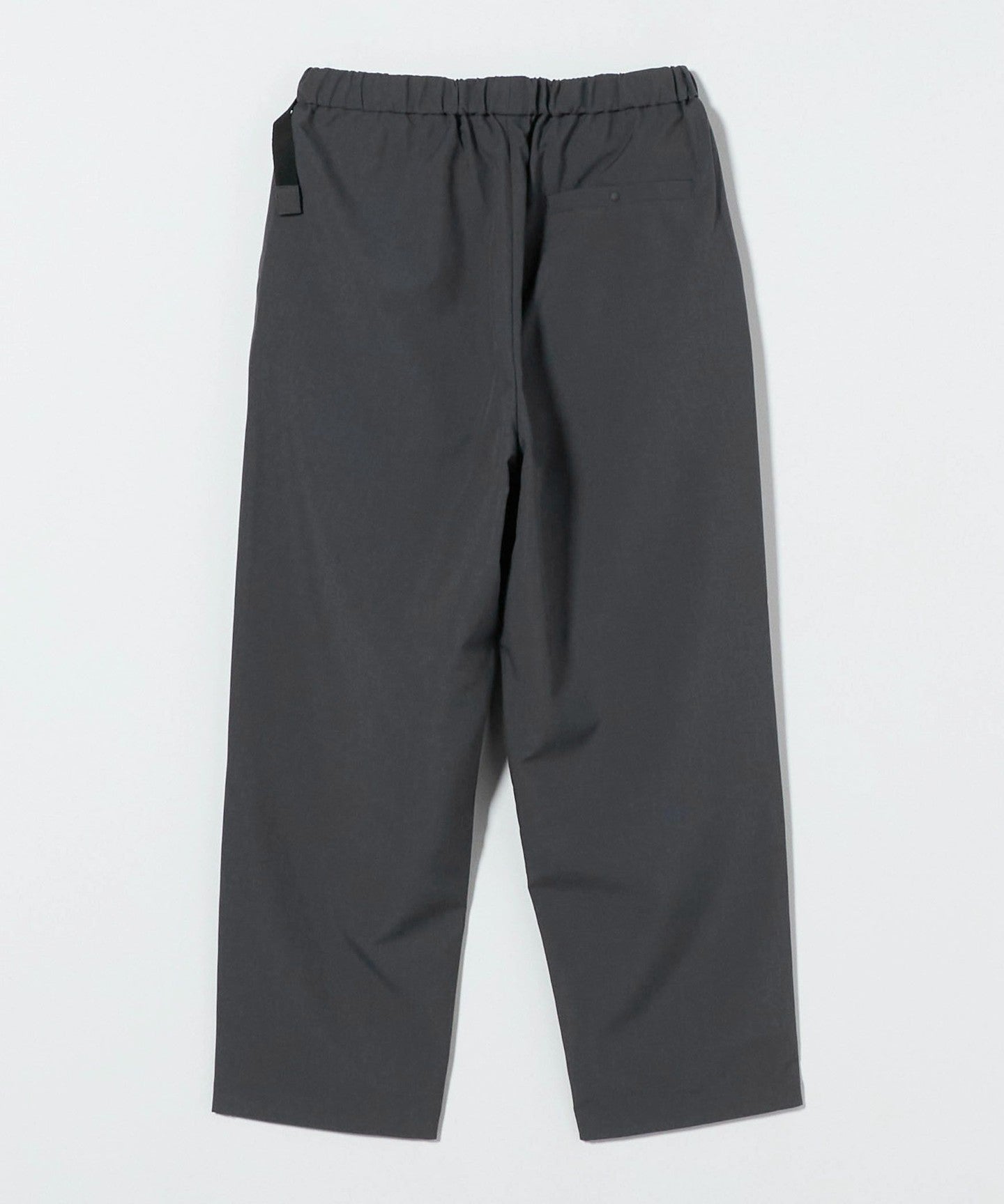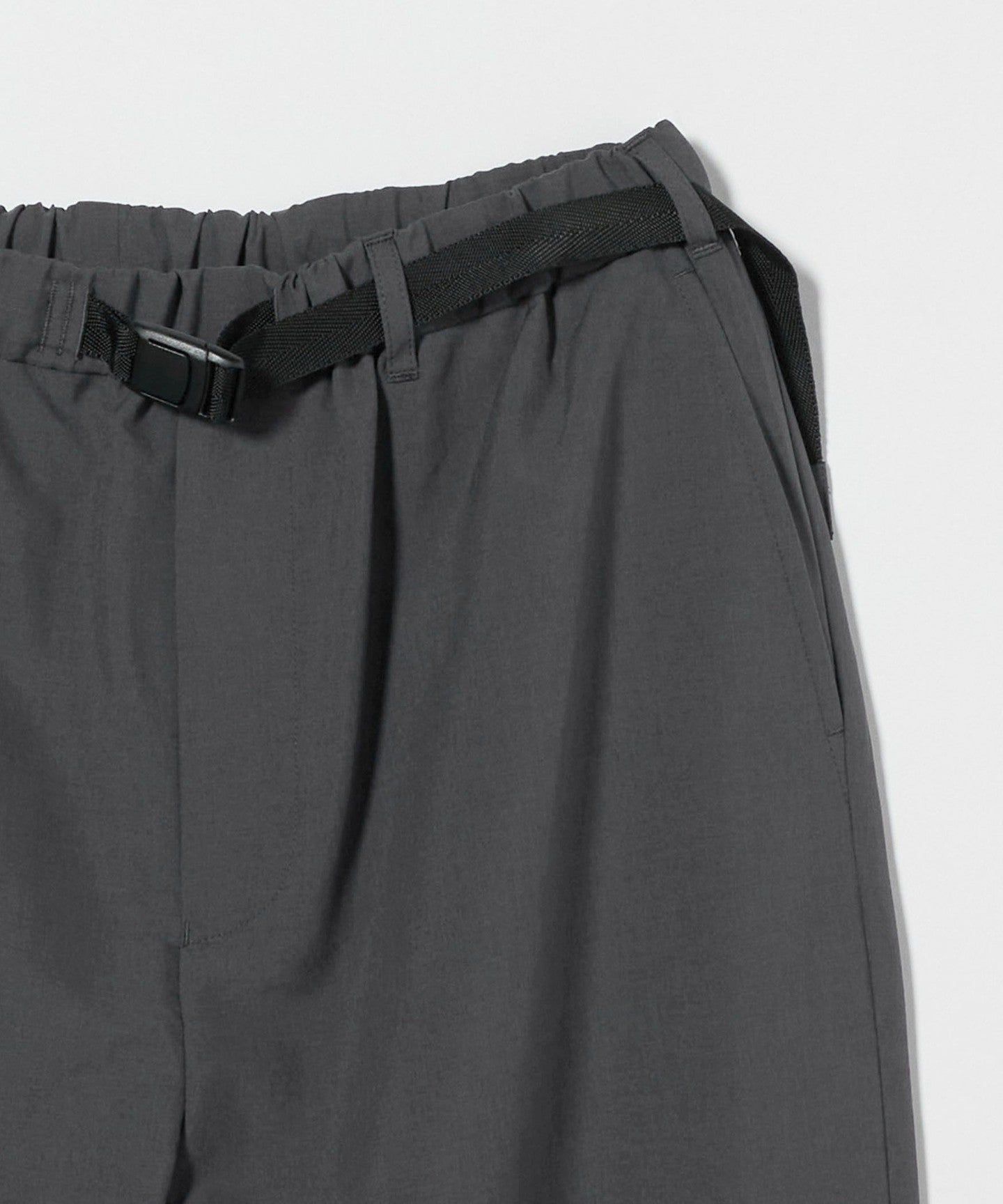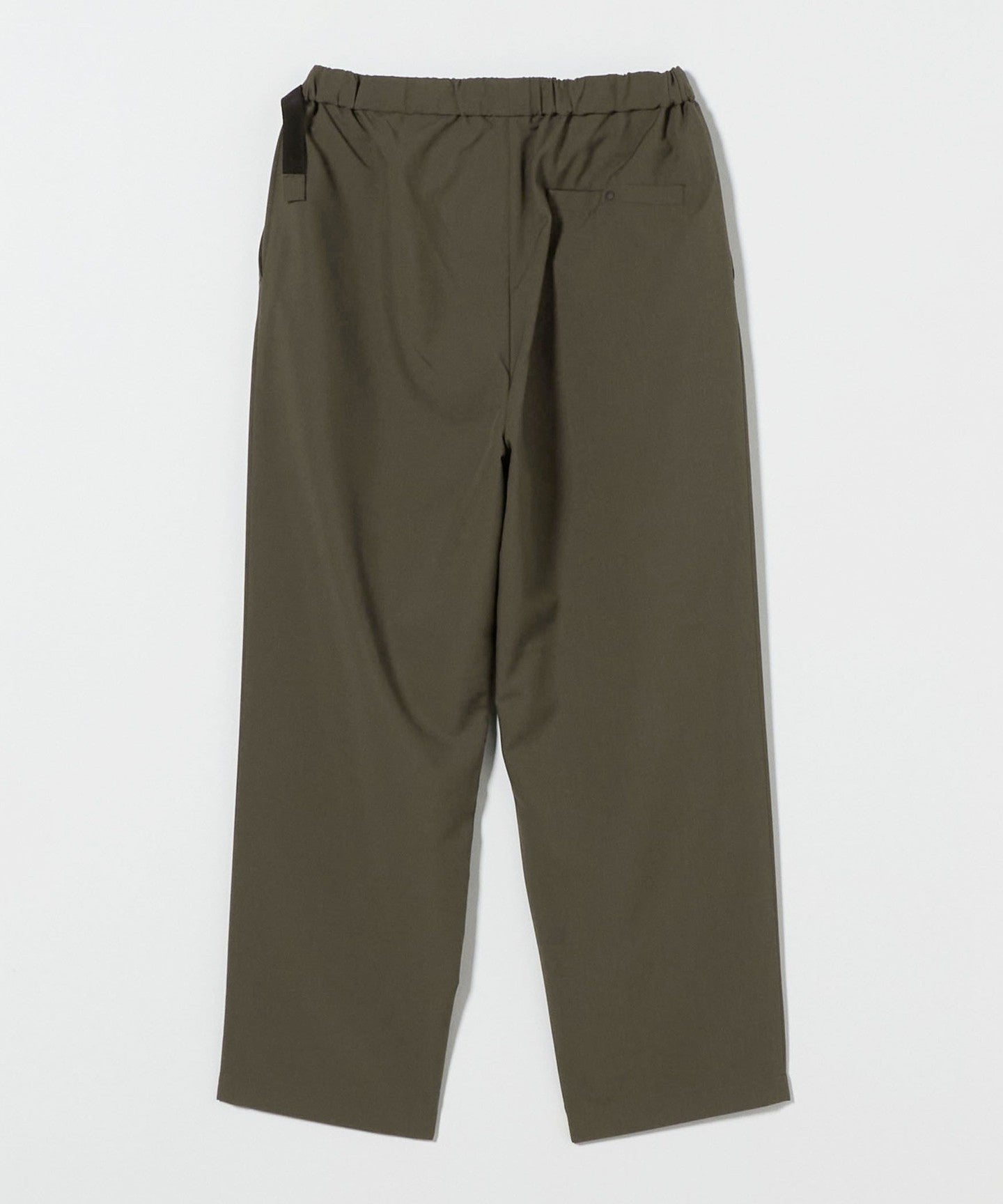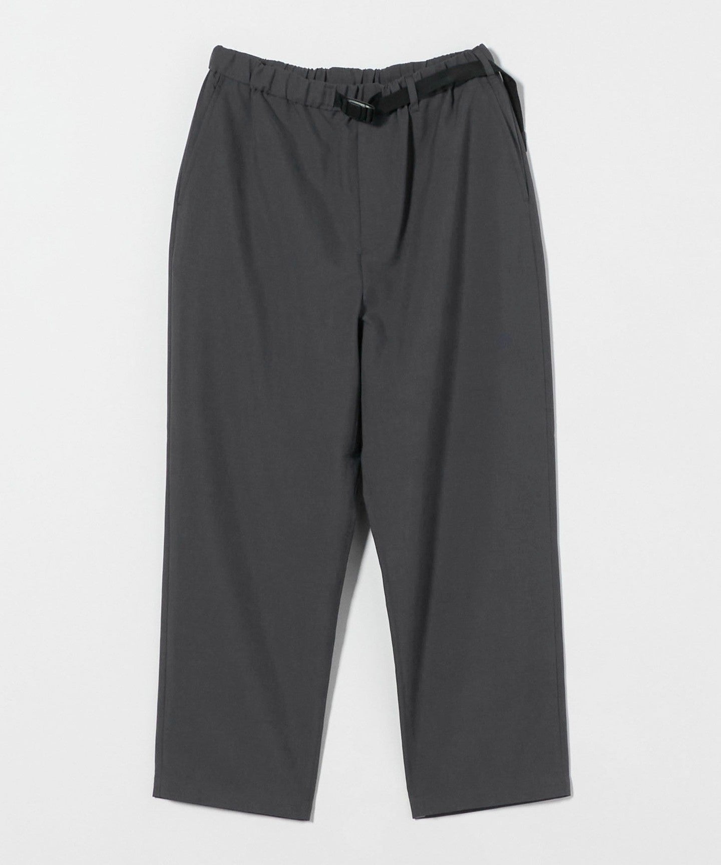 It has a slightly loose, wide tapered silhouette and the size can be adjusted using the quick belt at the waist.