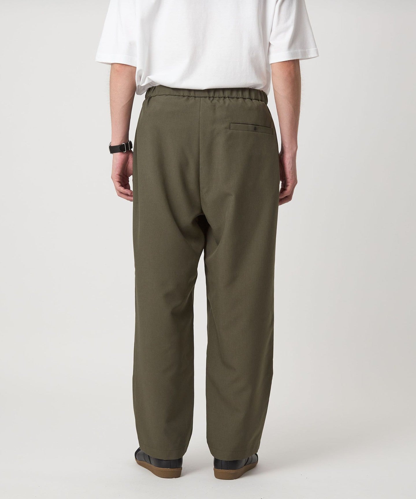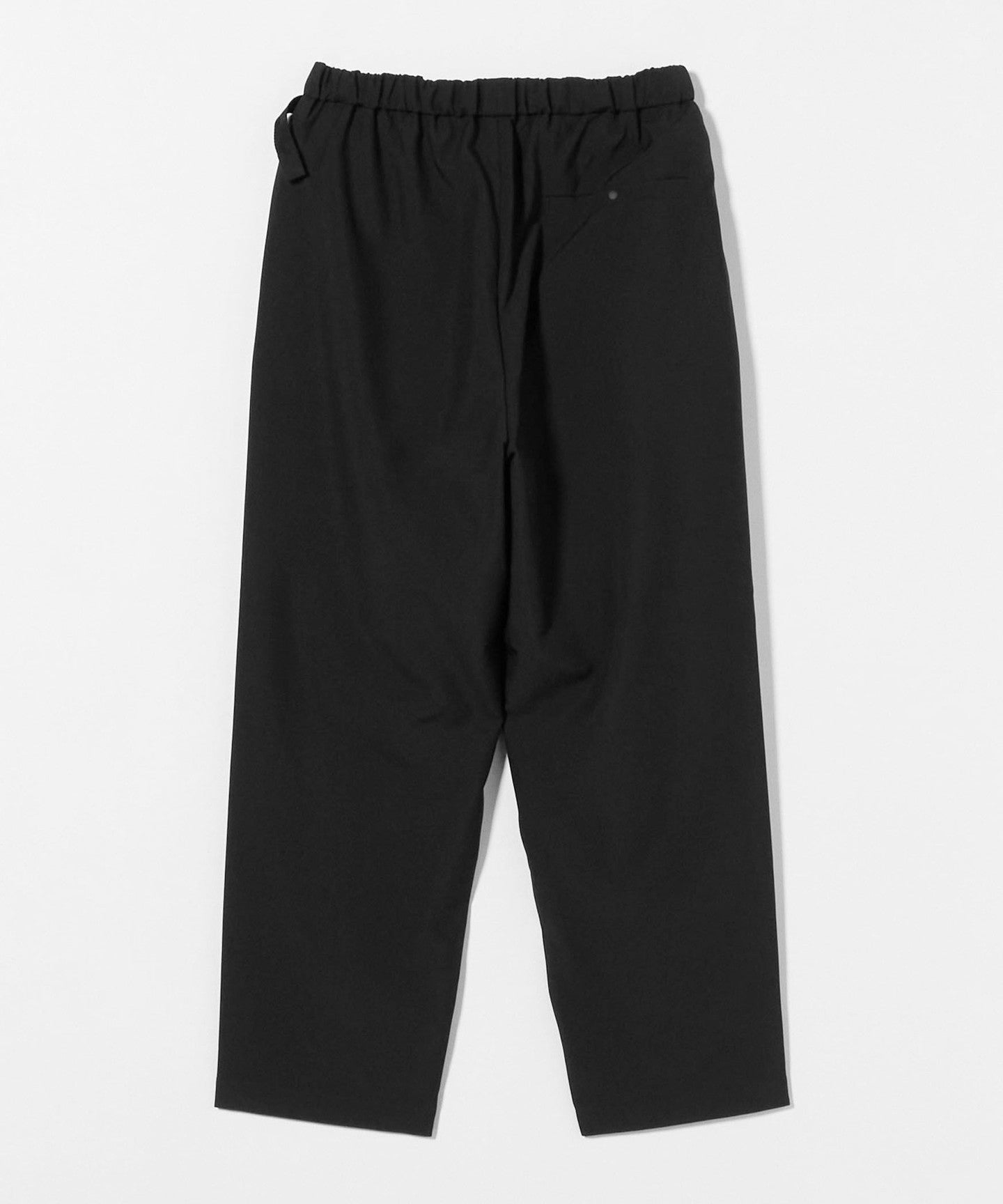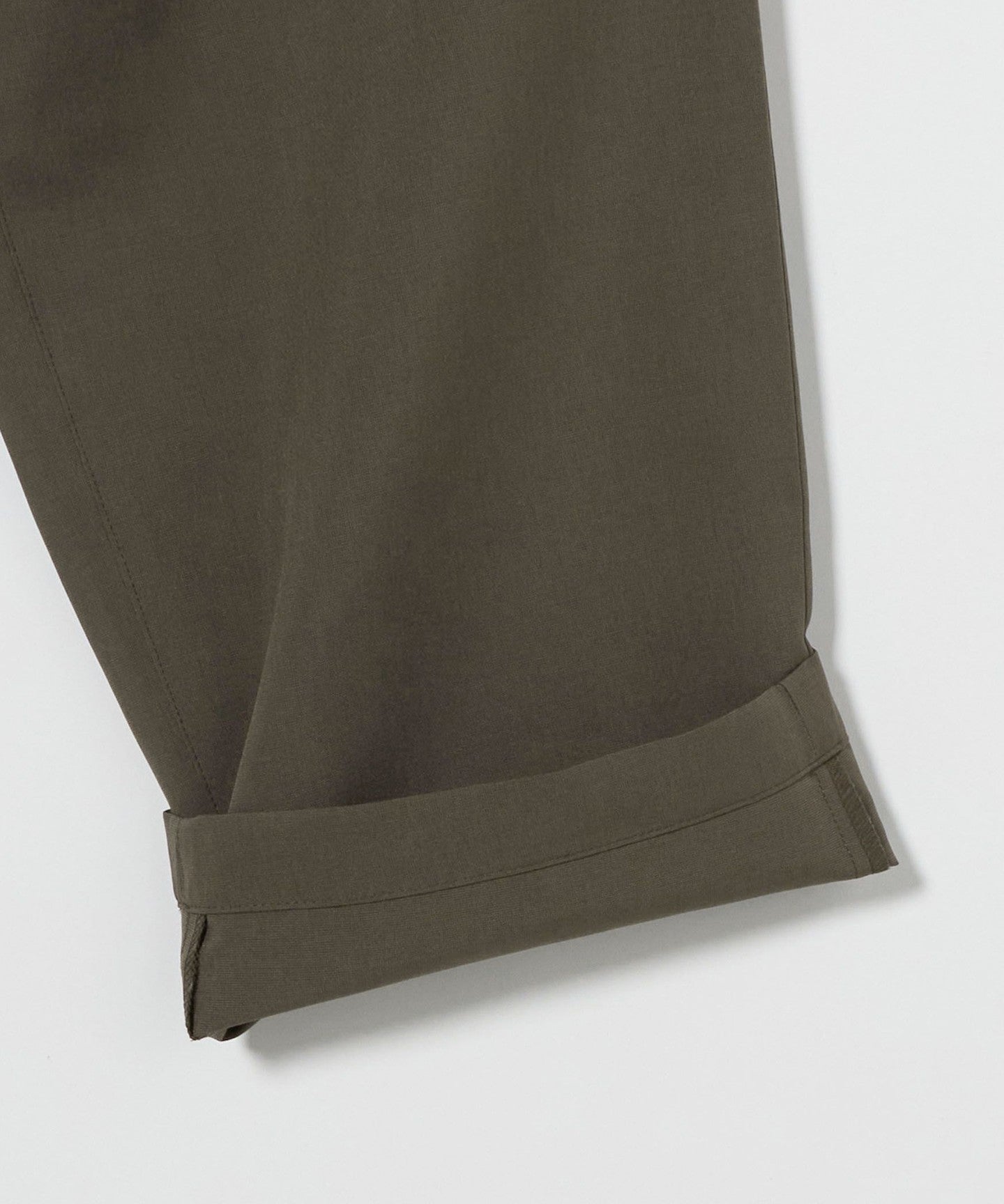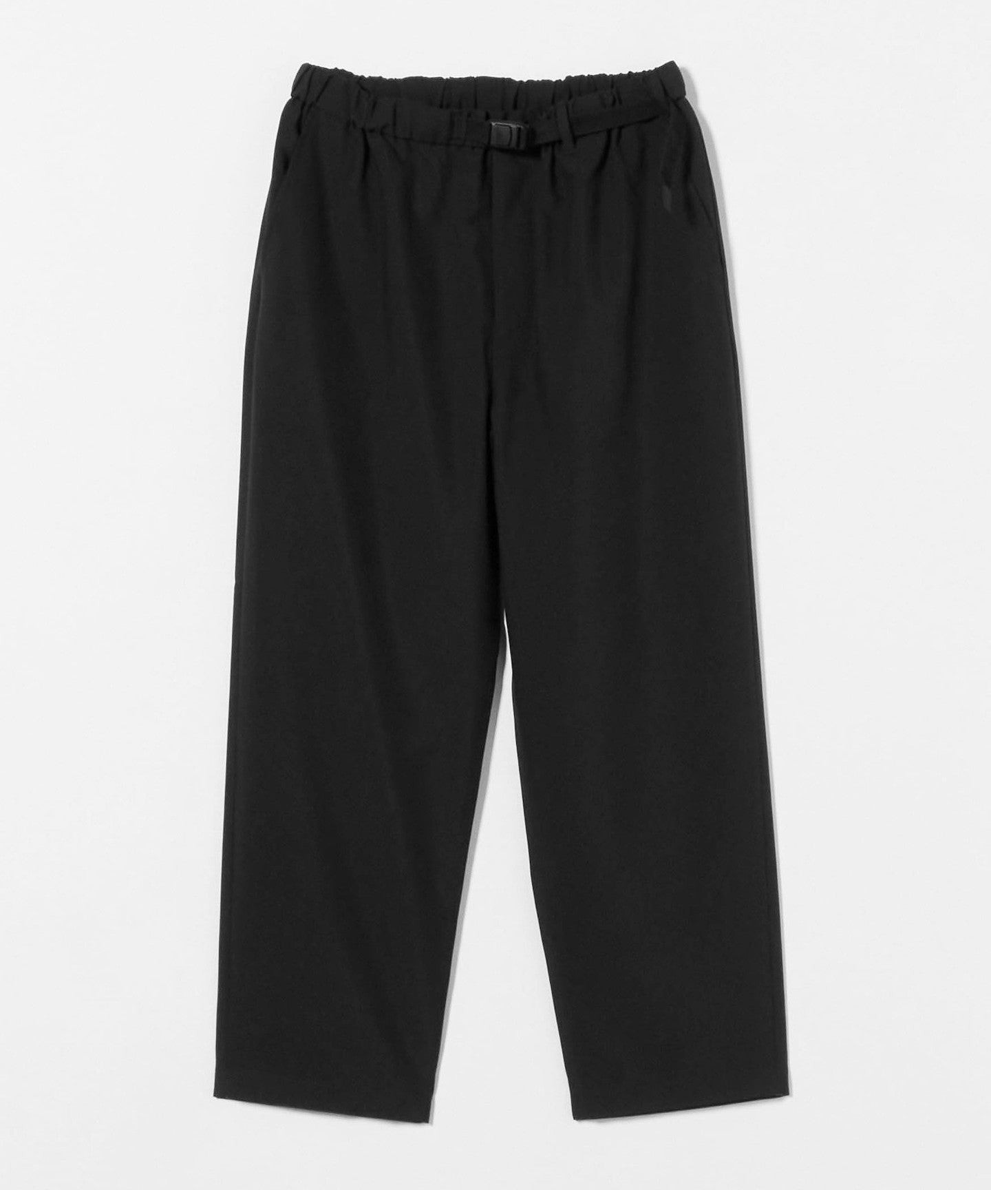 It has a slightly loose, wide tapered silhouette and the size can be adjusted using the quick belt at the waist.