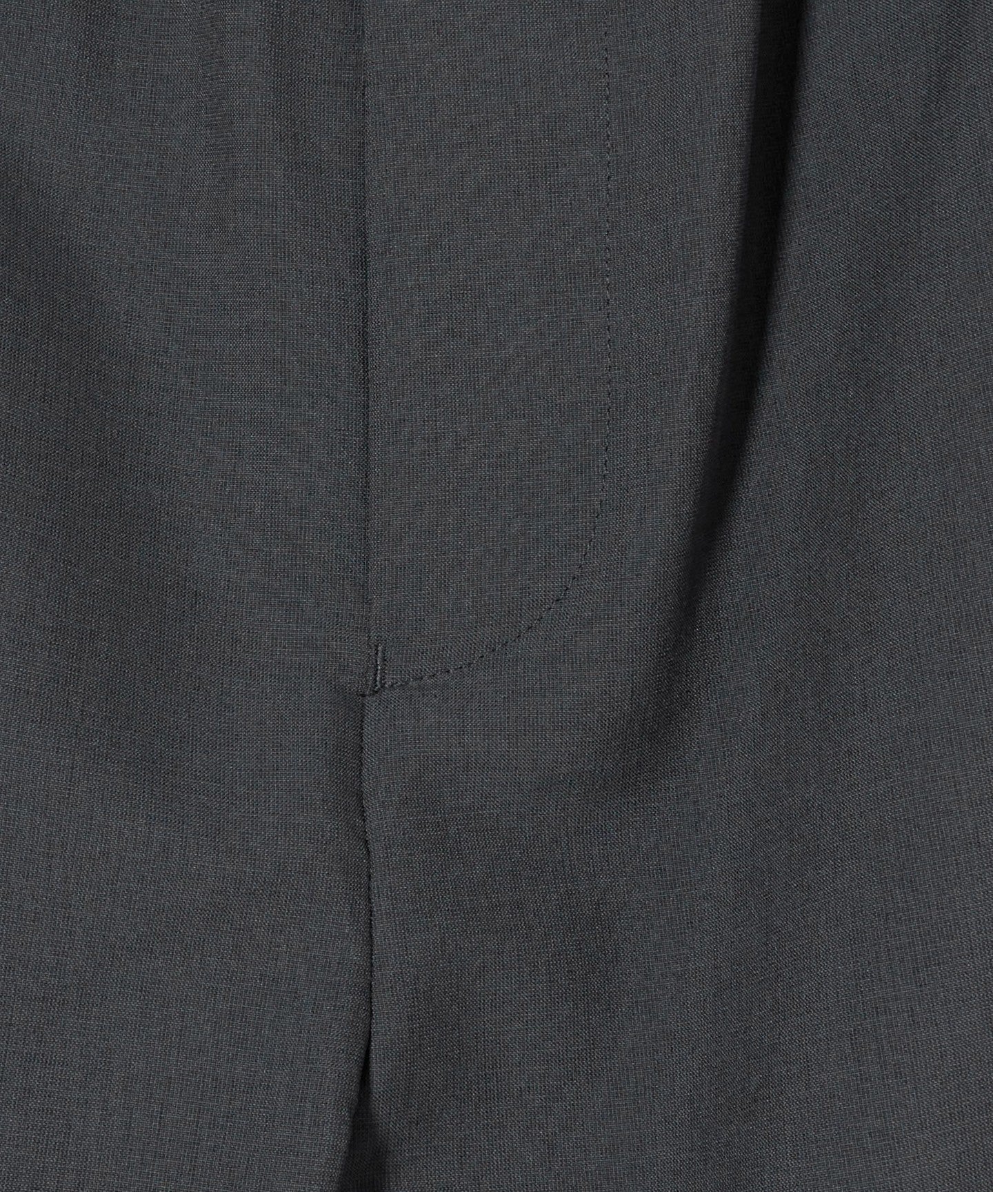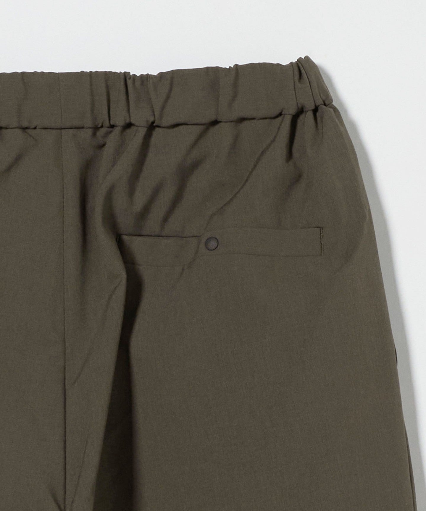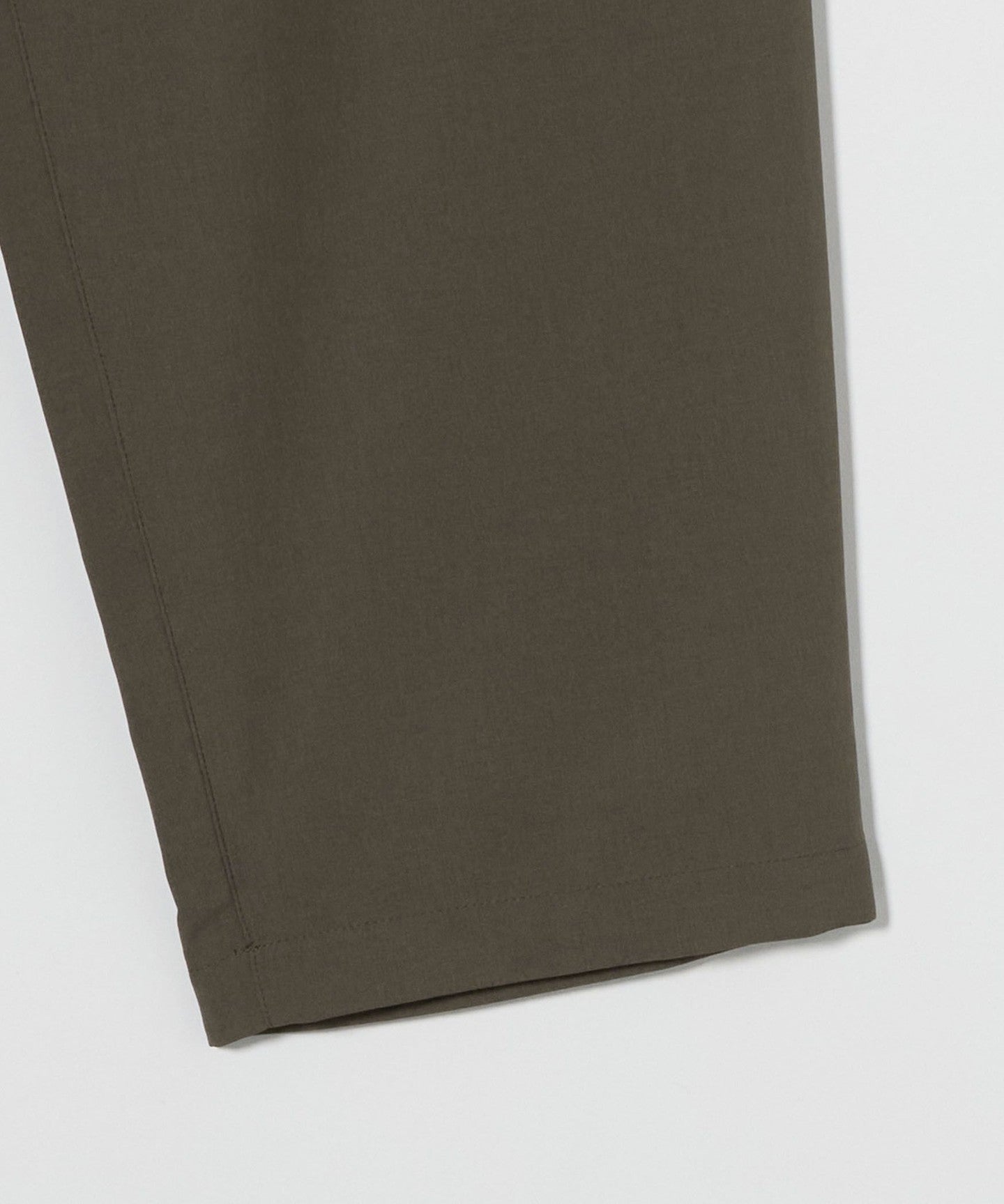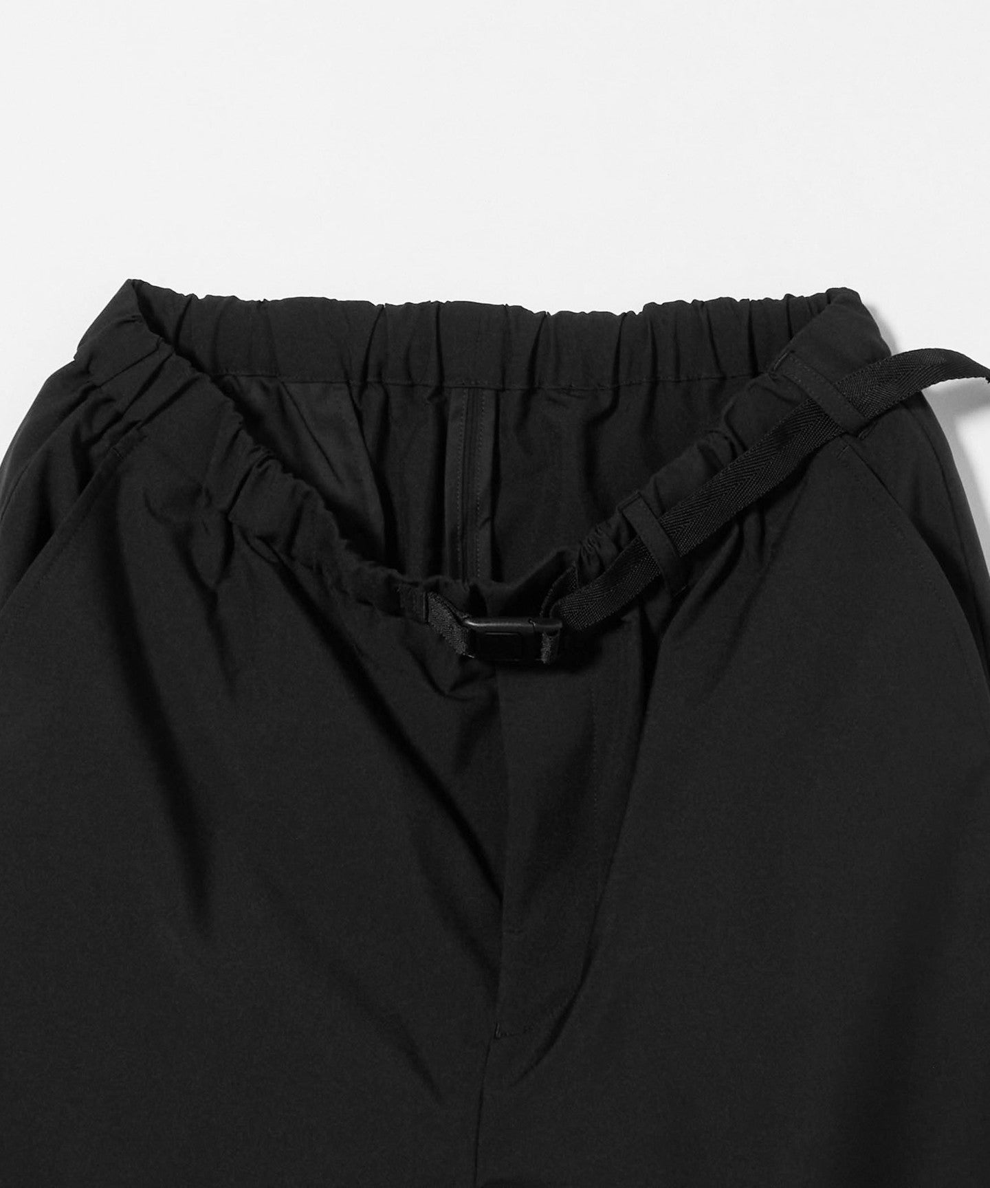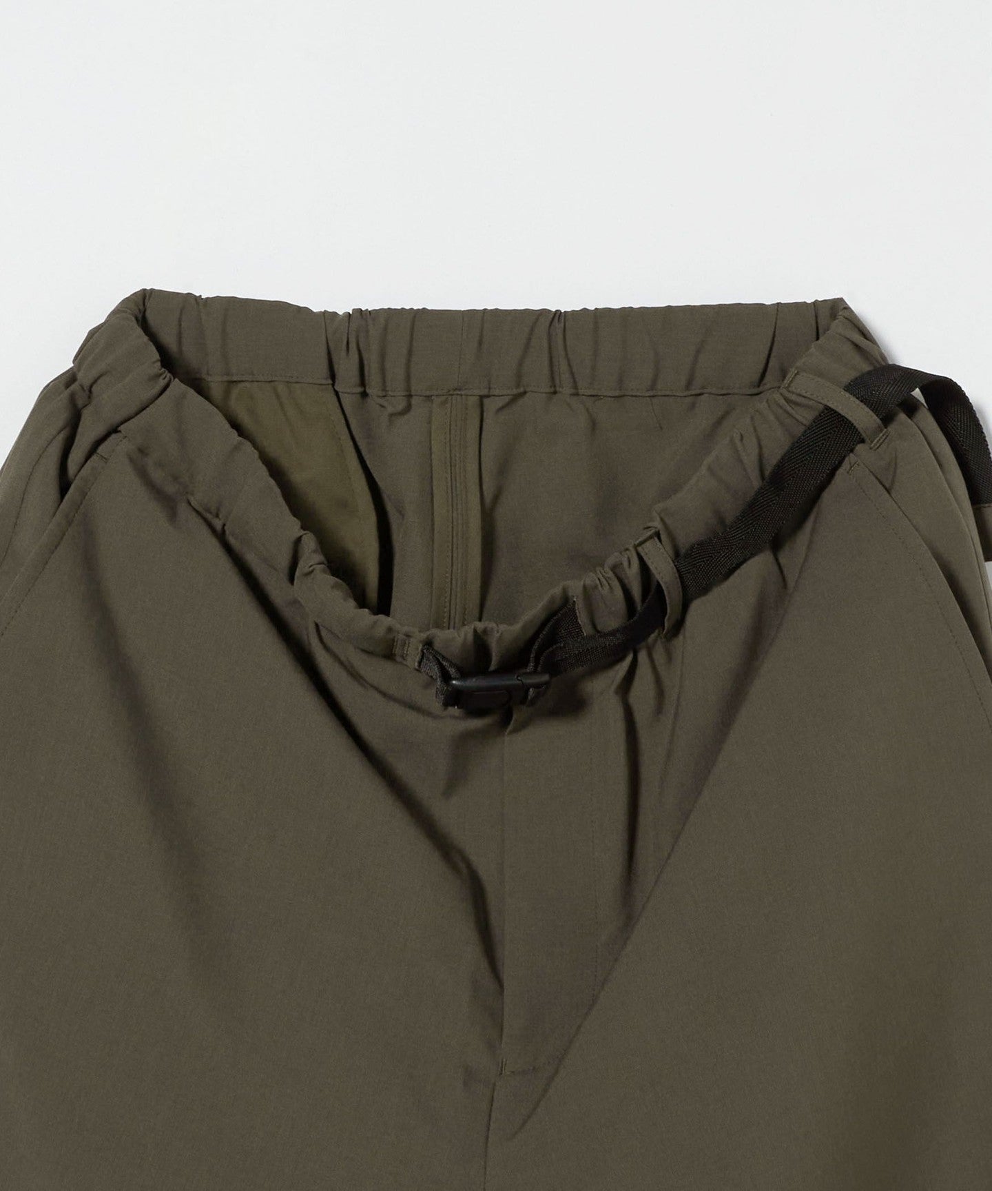 It has a slightly loose, wide tapered silhouette and the size can be adjusted using the quick belt at the waist.