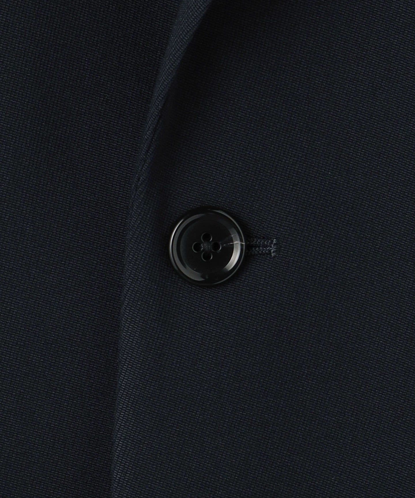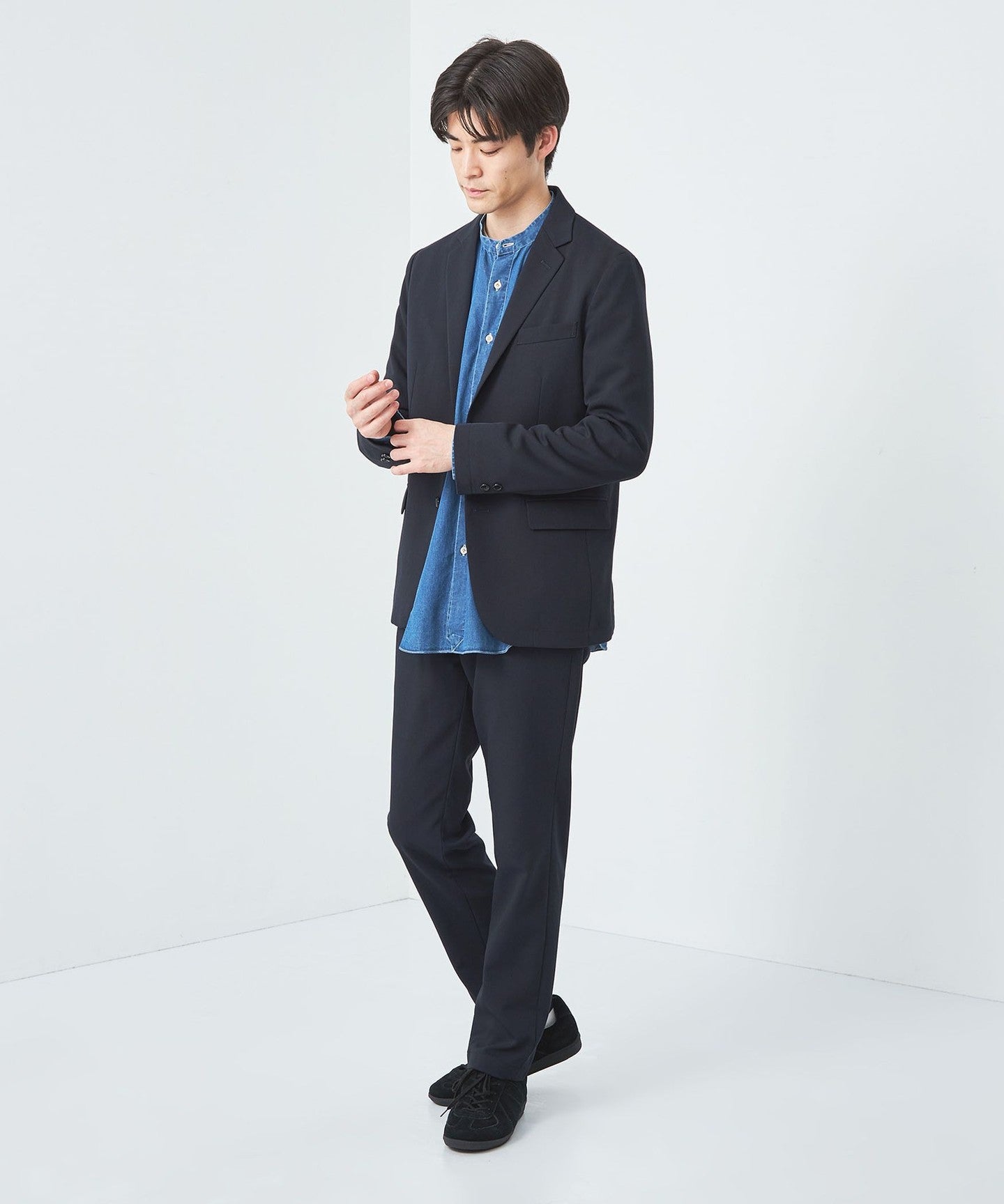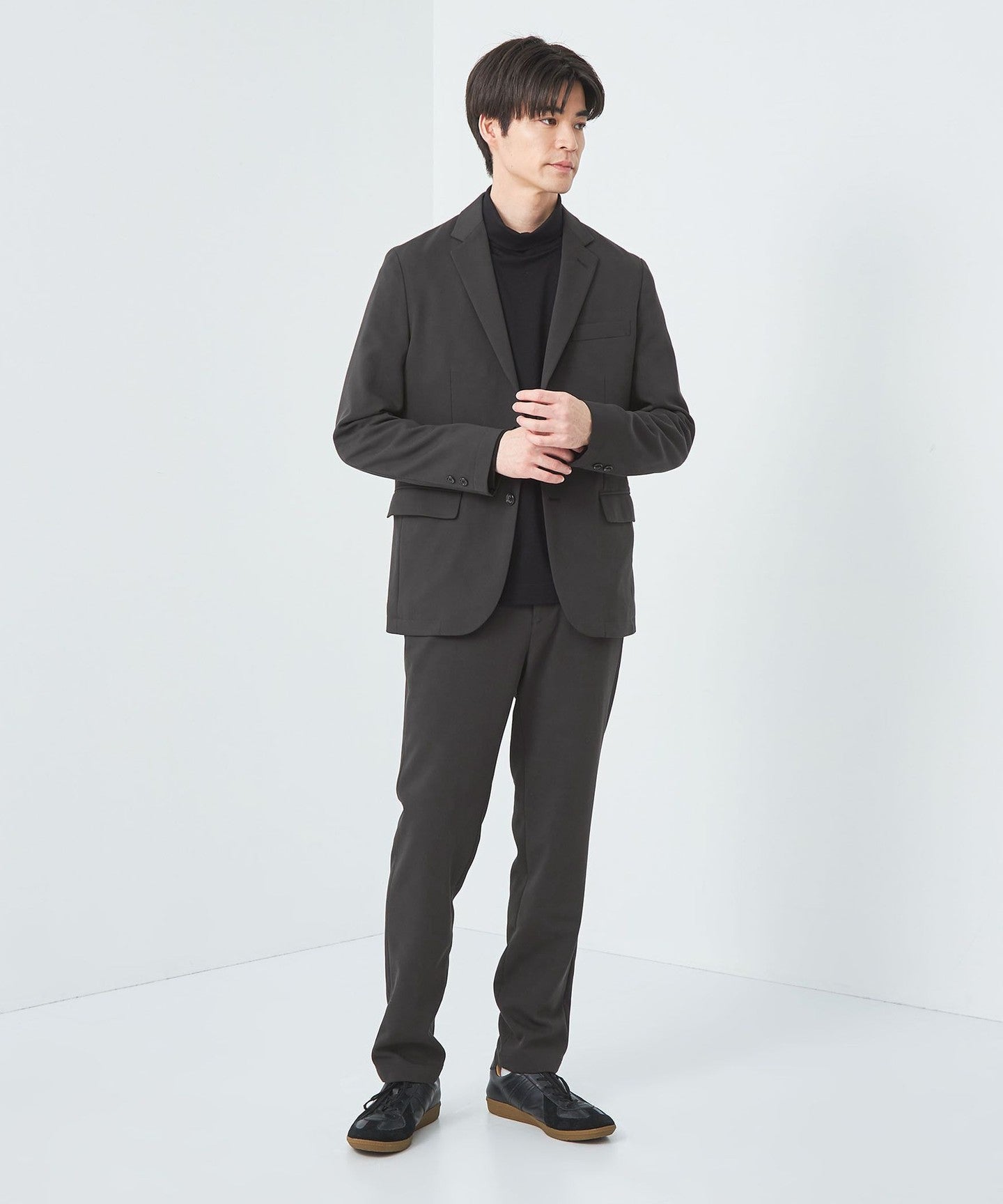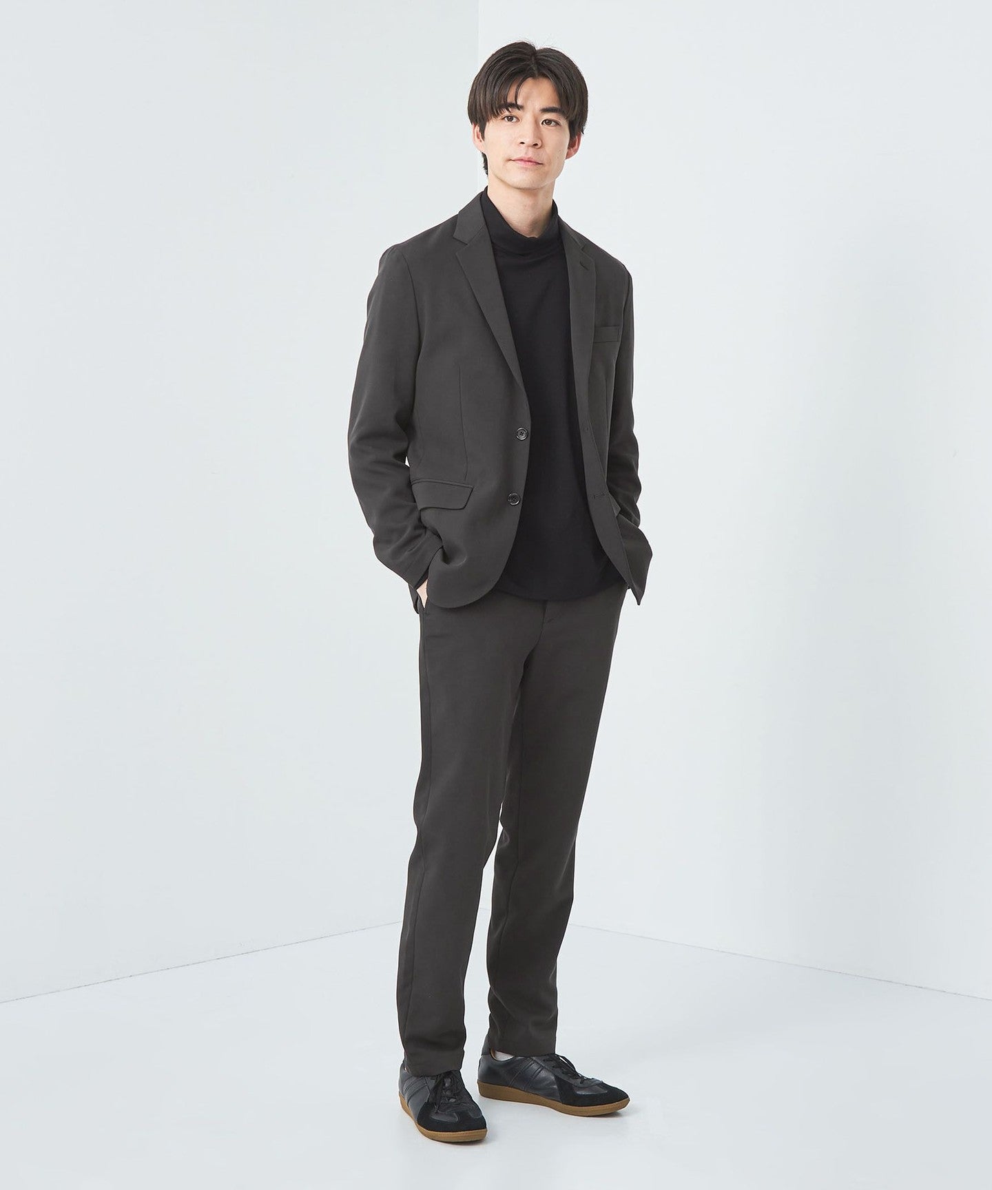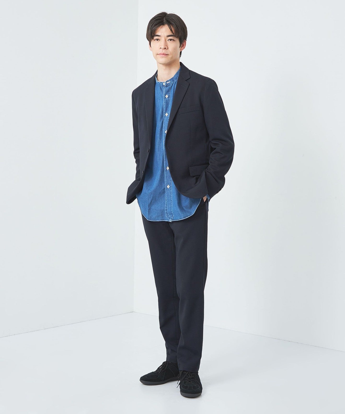 Although it has a standard design with notch lapels and flap pockets, it has a neat length and stitching on the sleeves and hem, giving it a somewhat casual impression.