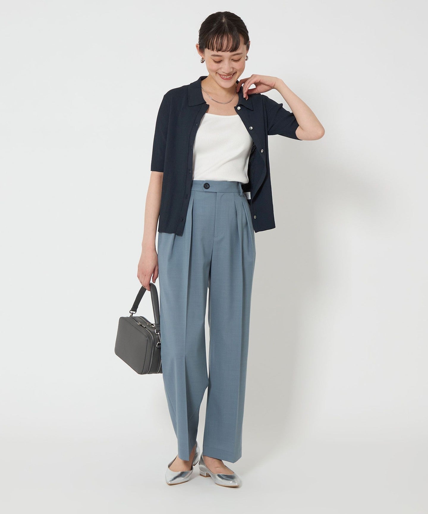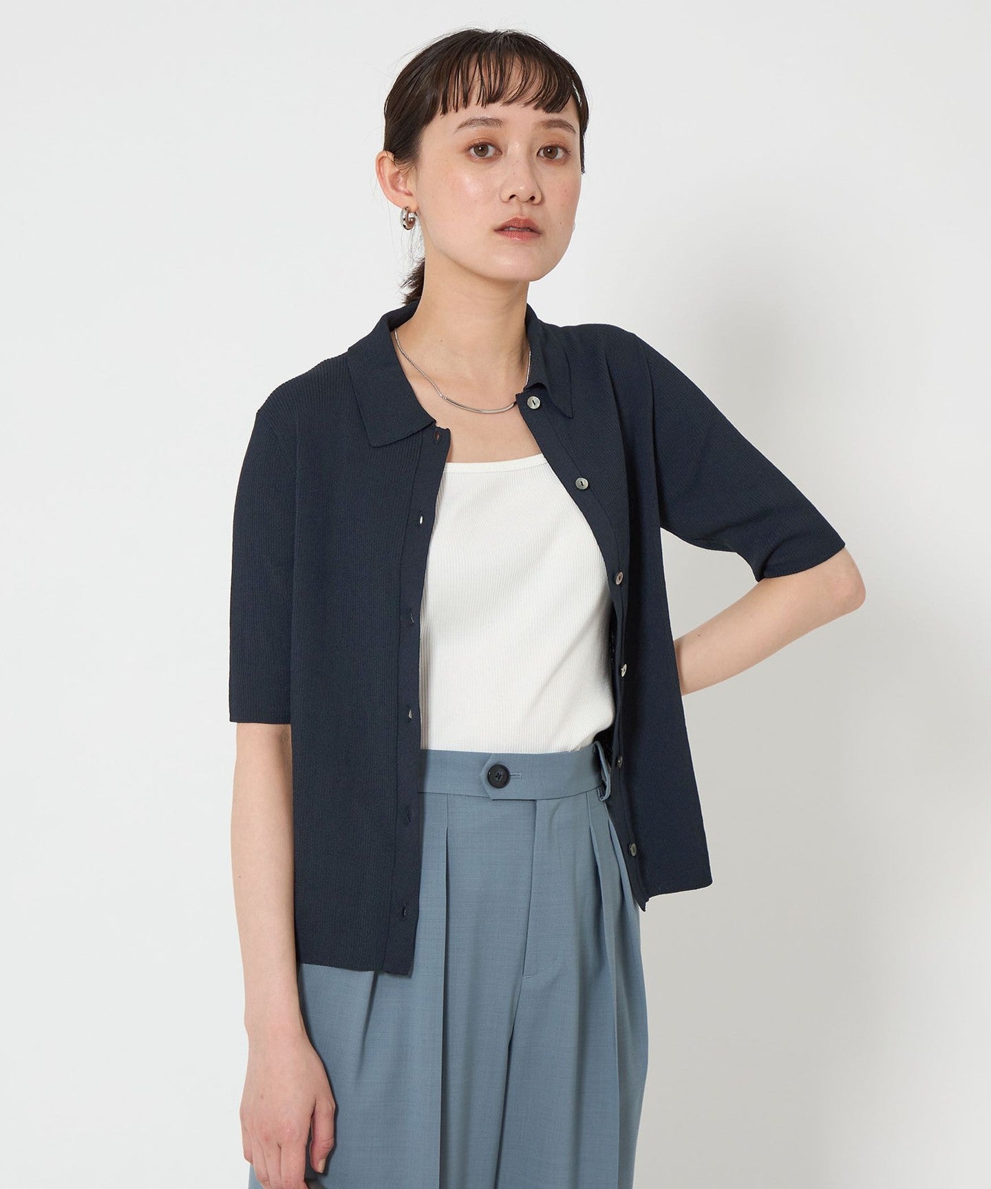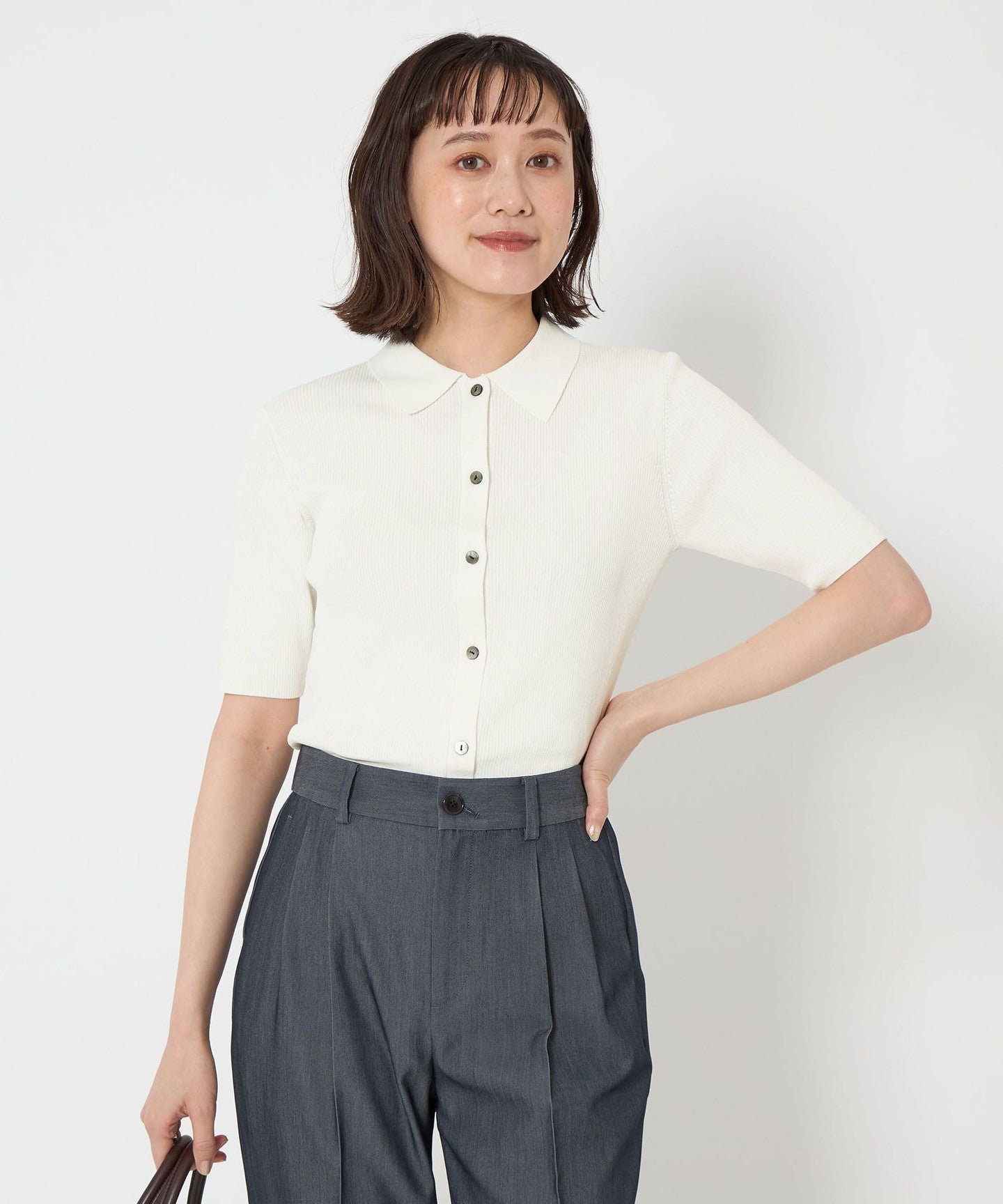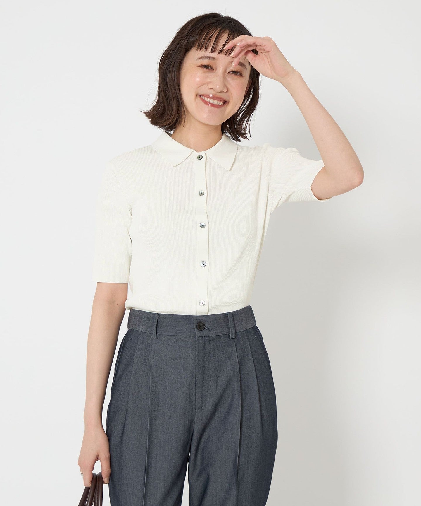 KOKAGE Collared Rib Short Sleeve Knit - Machine Washable UV Protection-