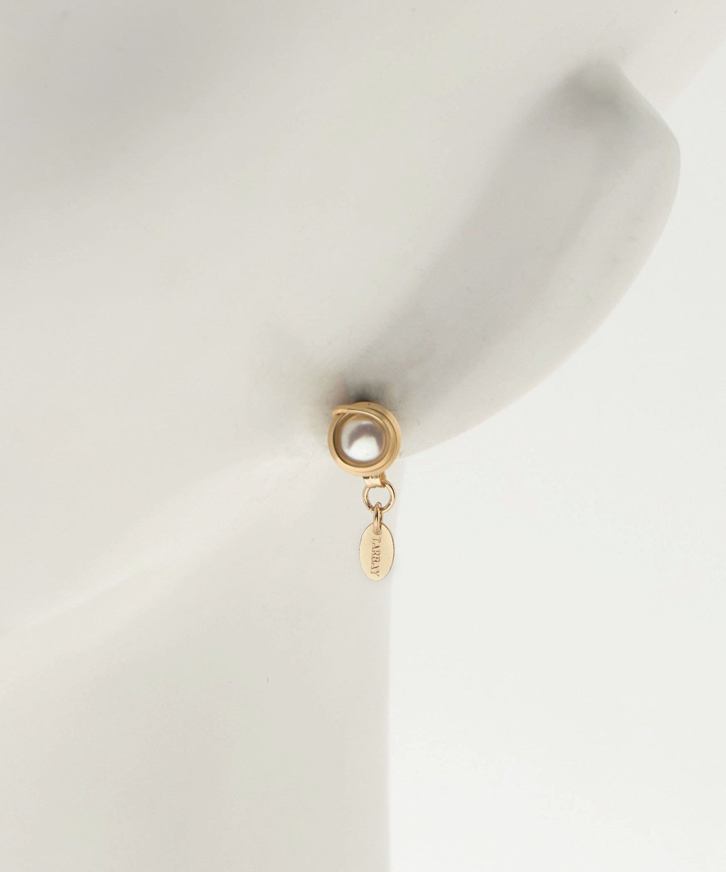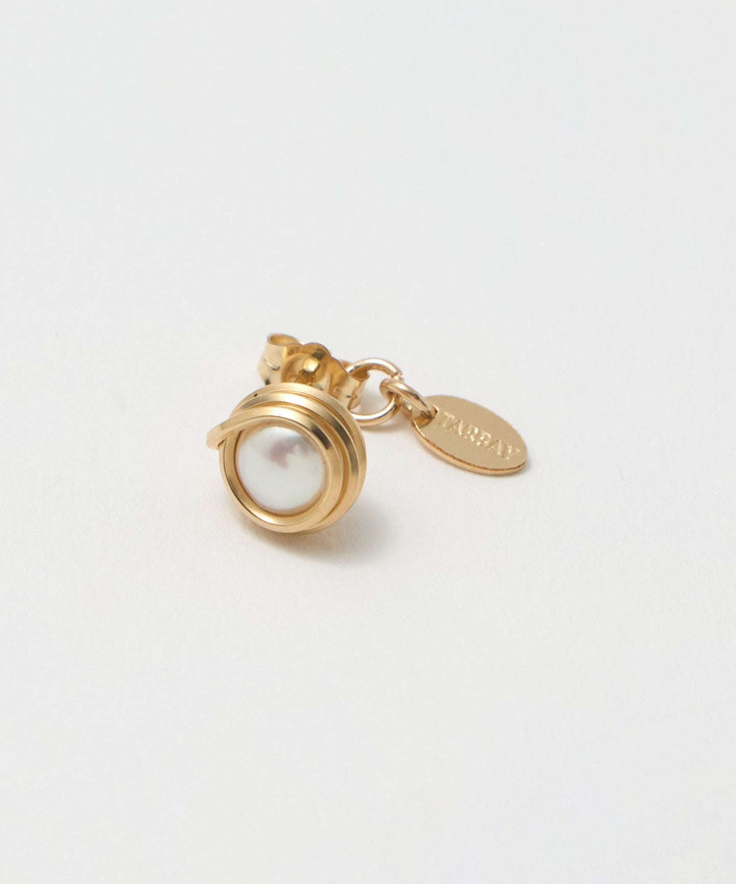 These earrings feature a single freshwater pearl with a gold-colored border.