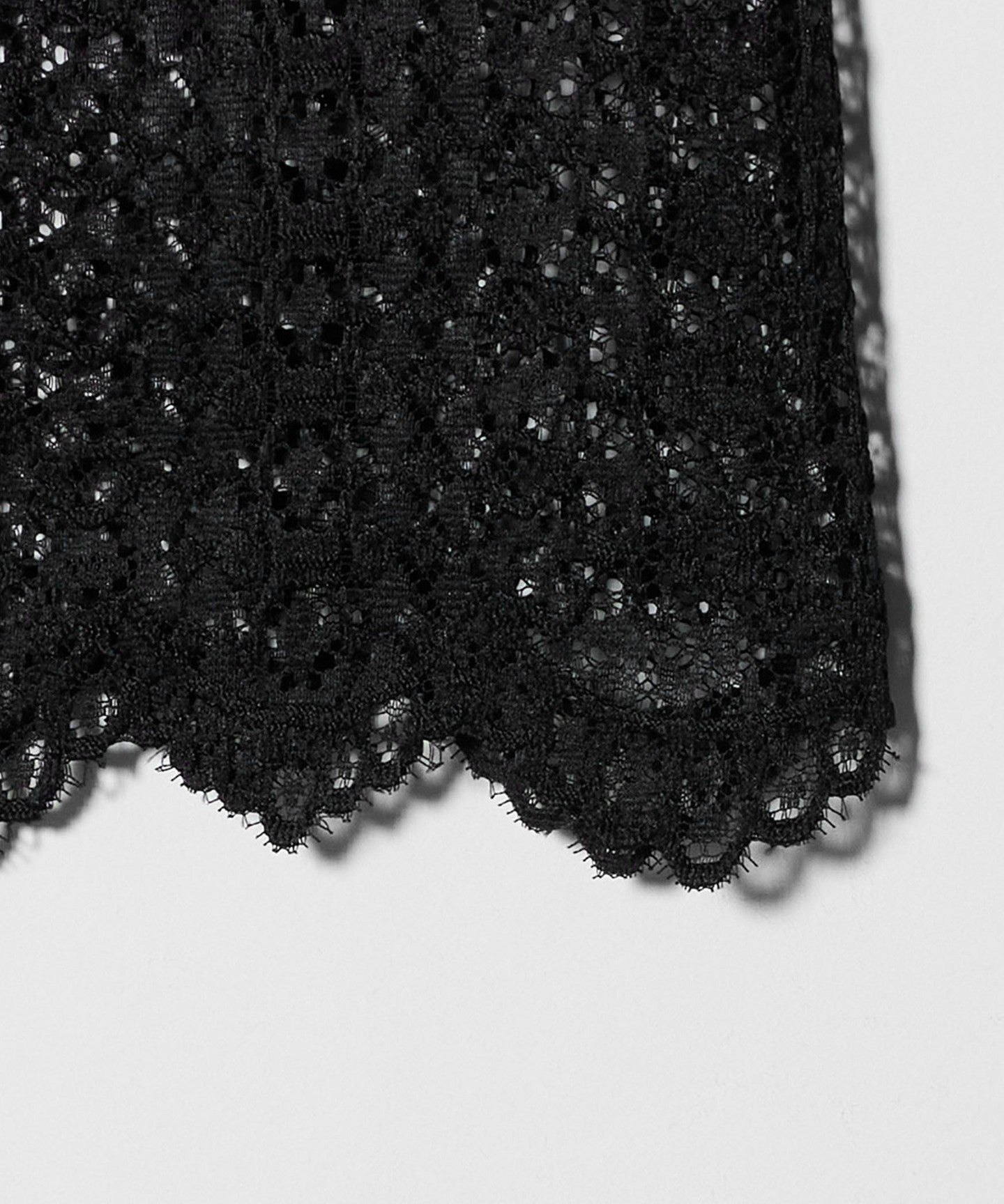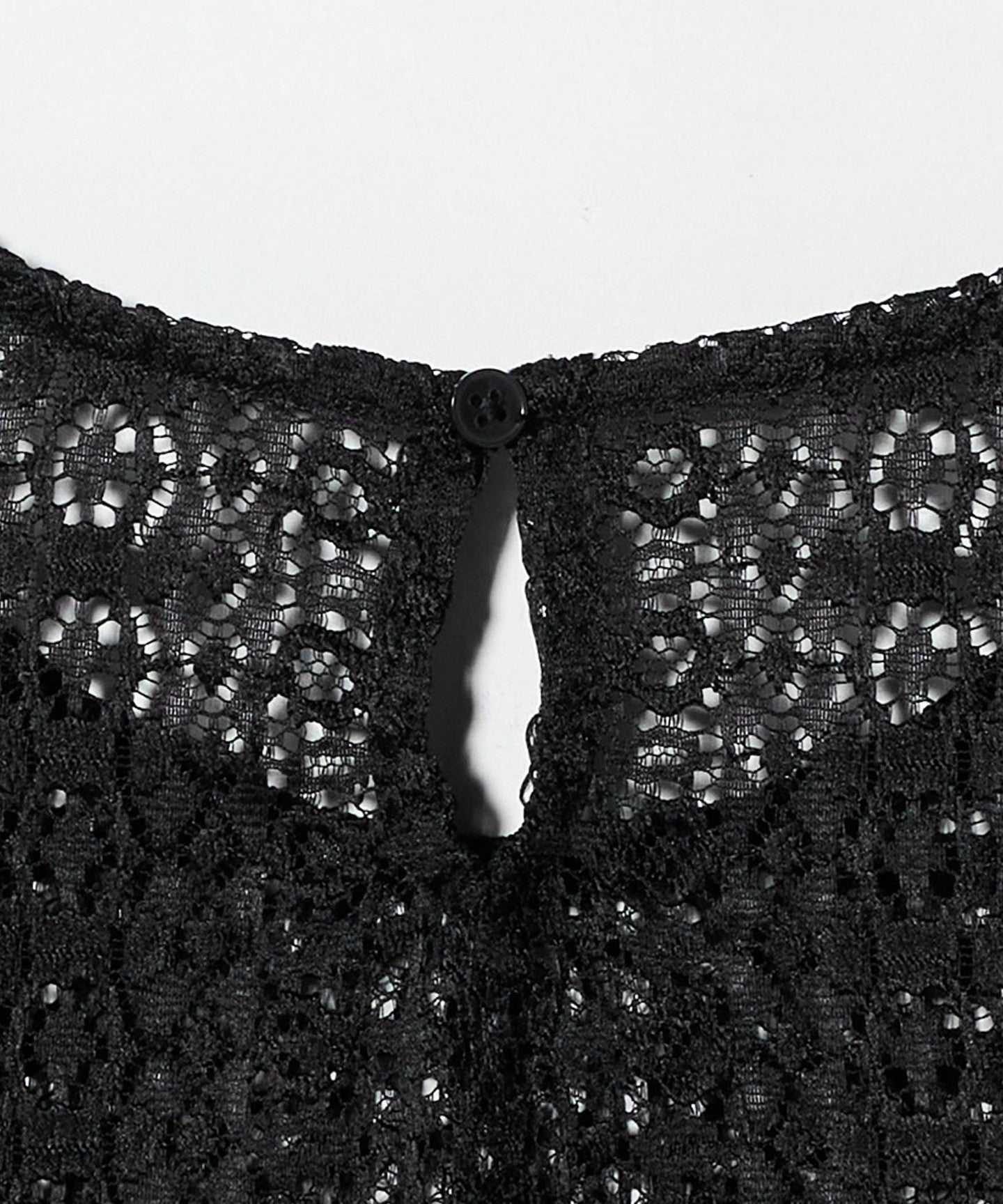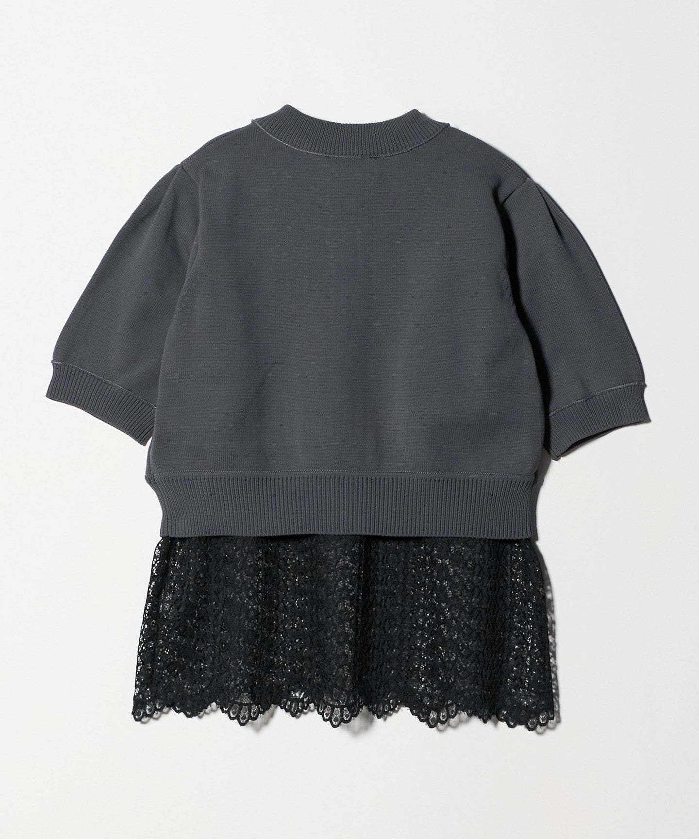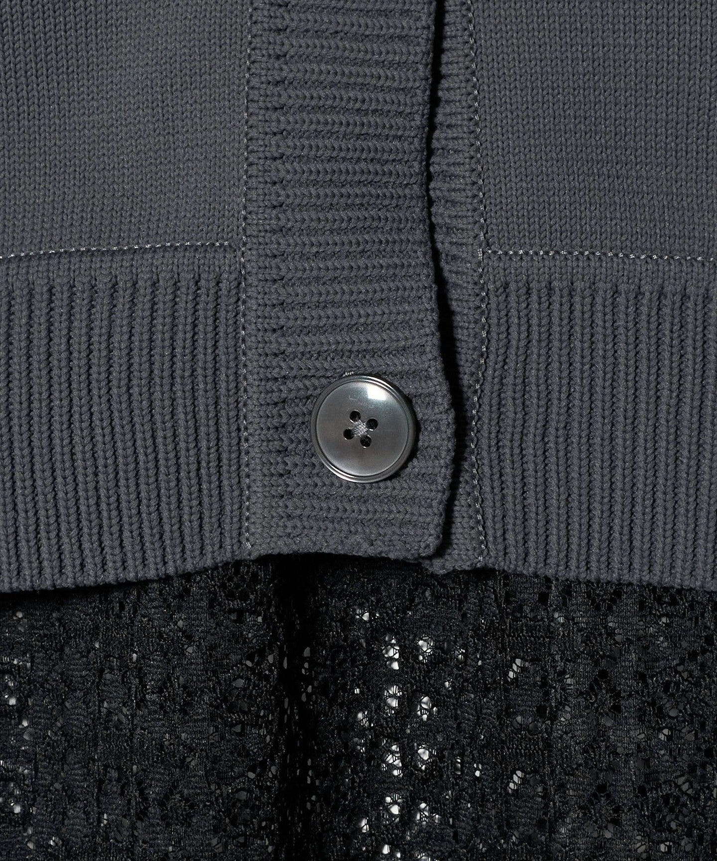 A layered set consisting of a short length, three-quarter sleeve cardigan with a lace inner layer.