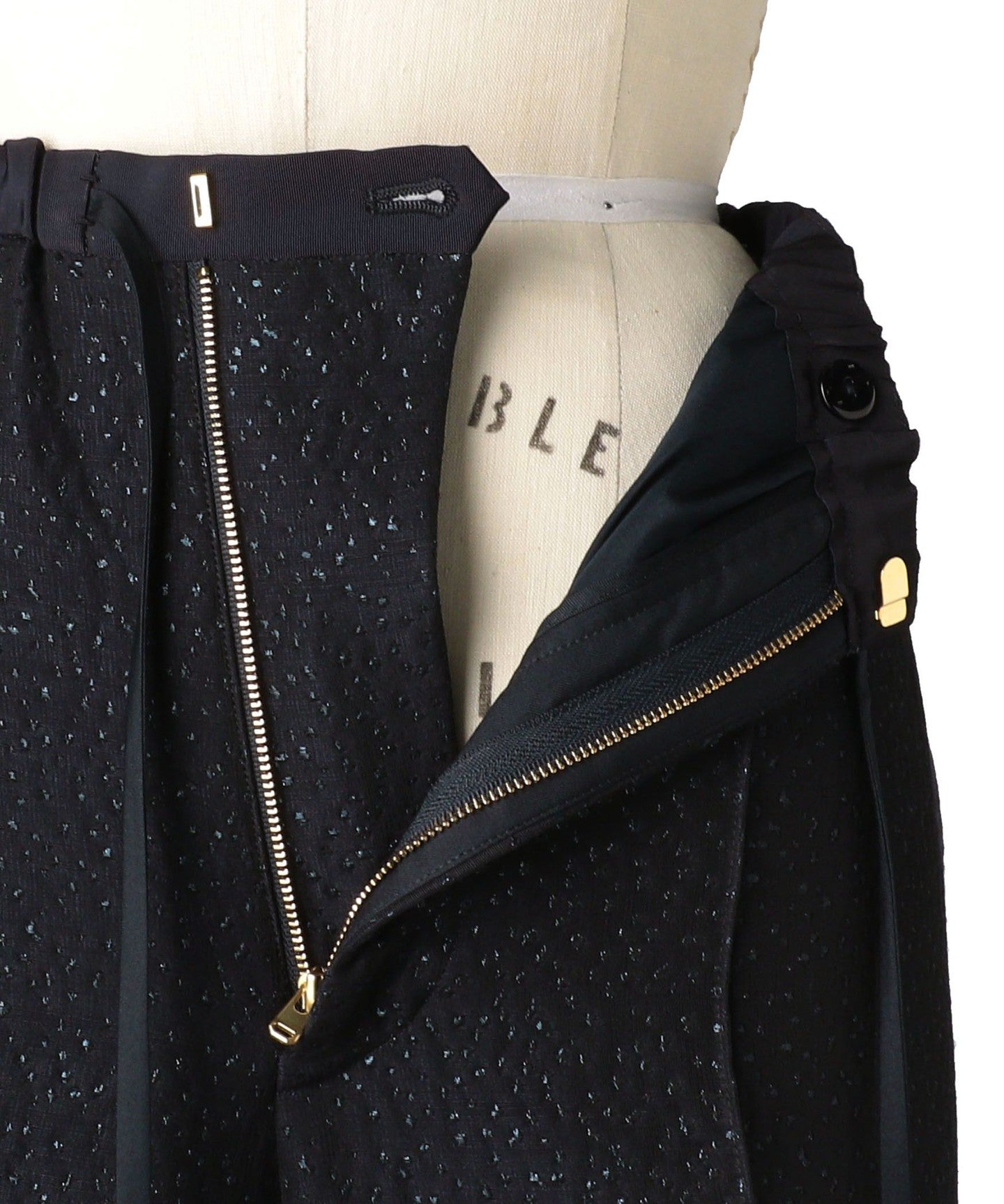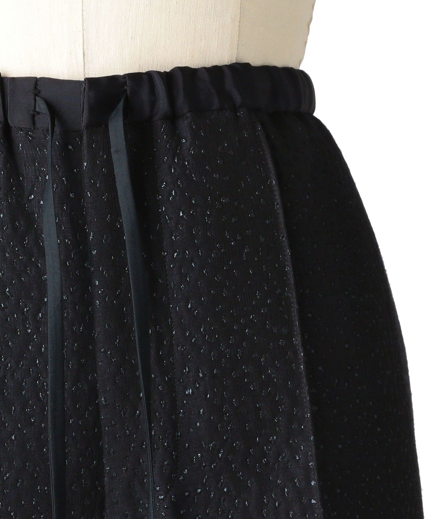 Made from a fluffy jacquard material with a dot pattern and glitter thread.