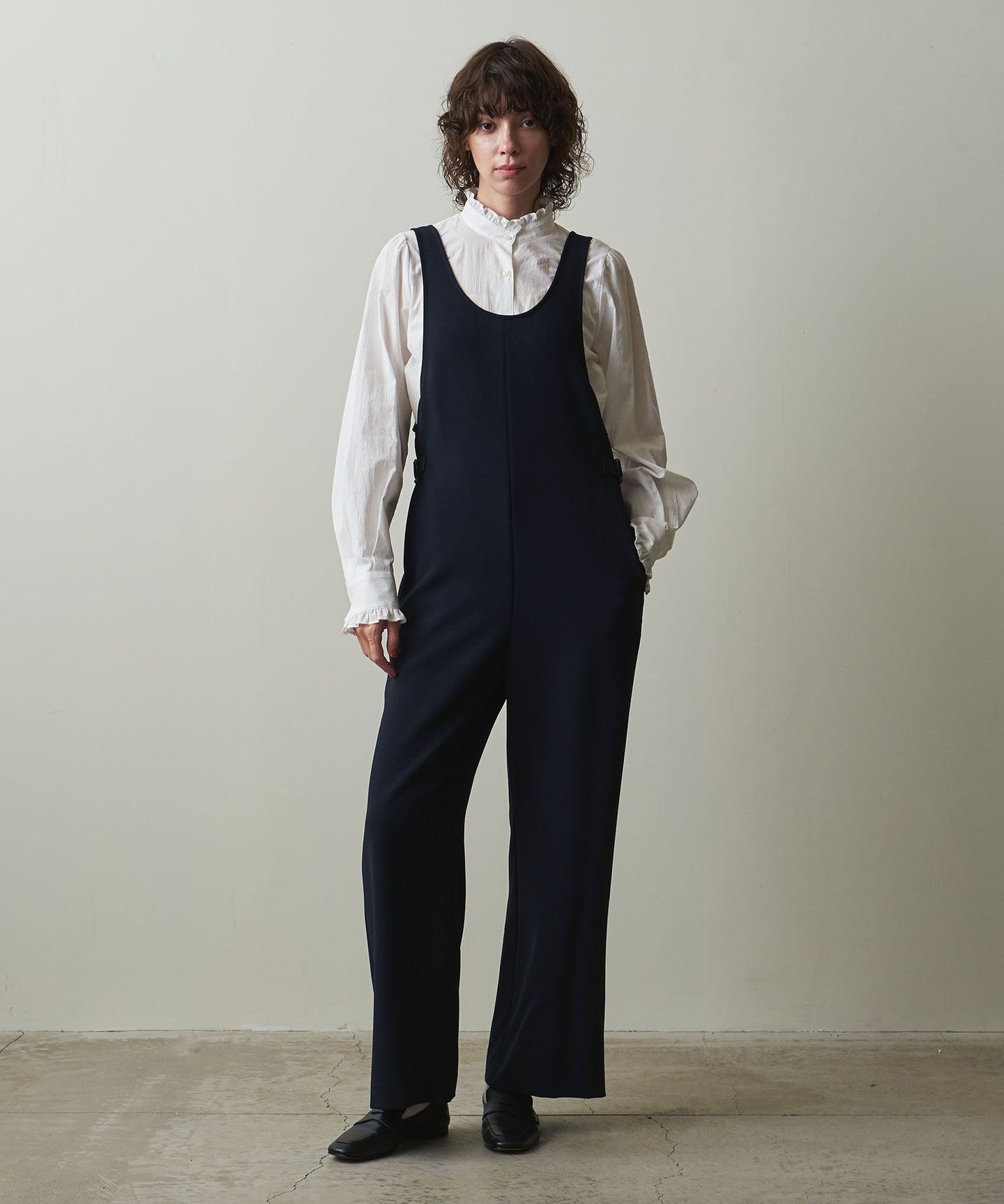 Overalls made from a neat fabric with just the right amount of stretch and drape.