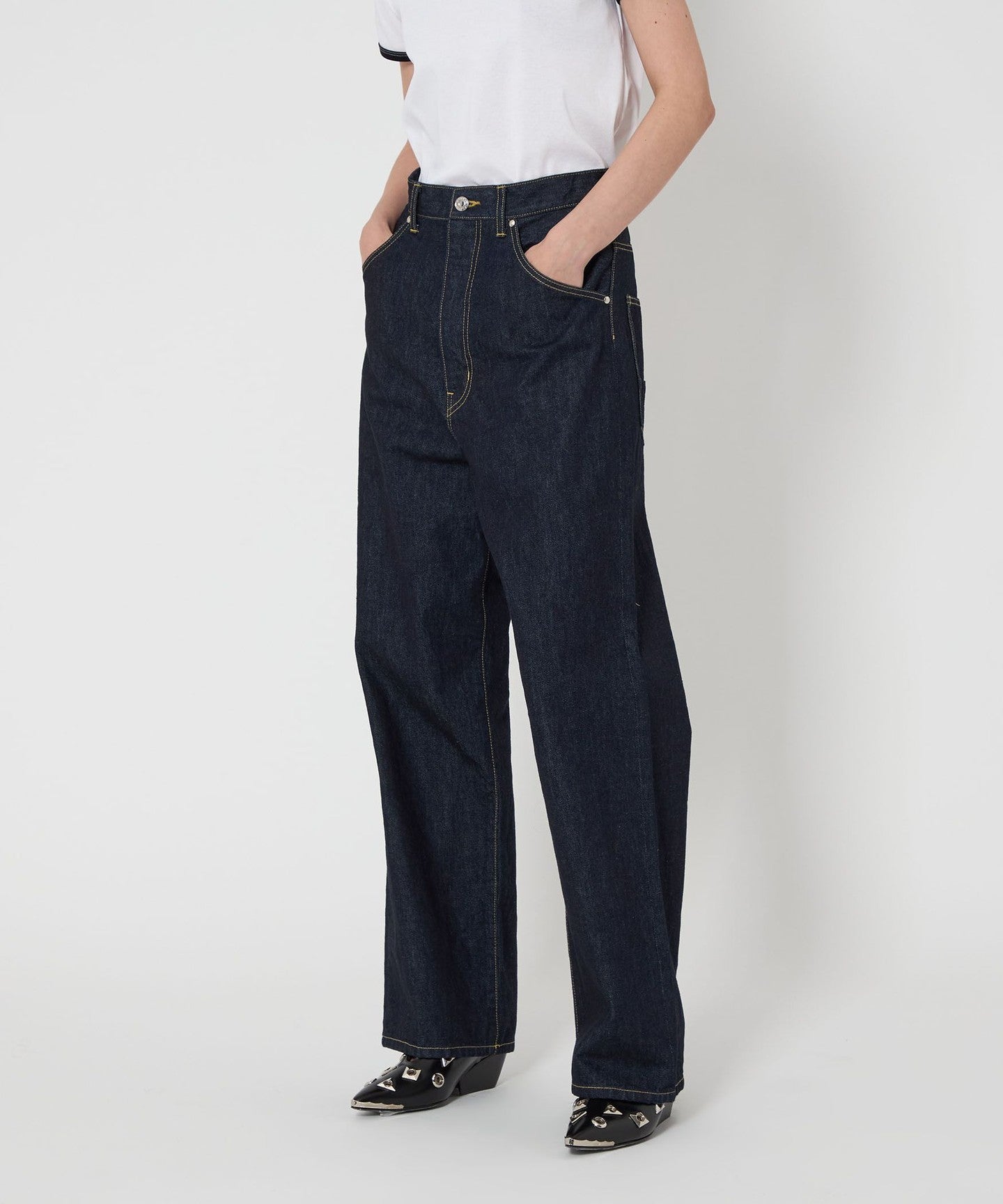 These one-wash denim pants have just the right amount of volume to easily be incorporated into a variety of outfits.