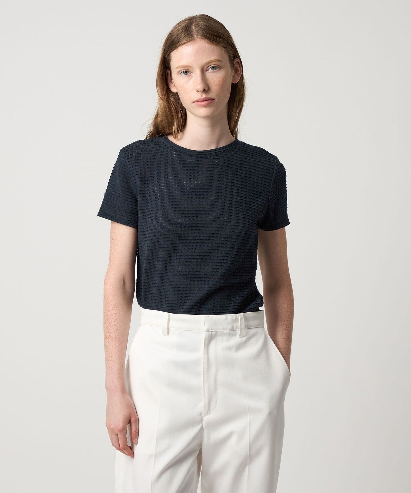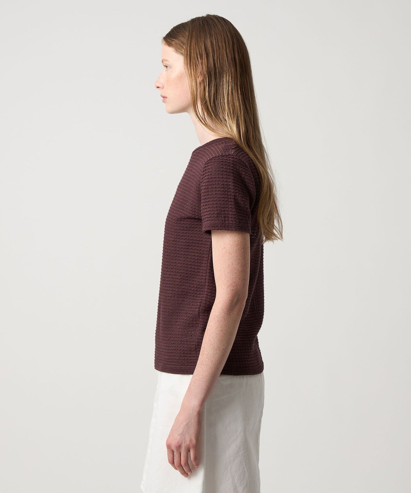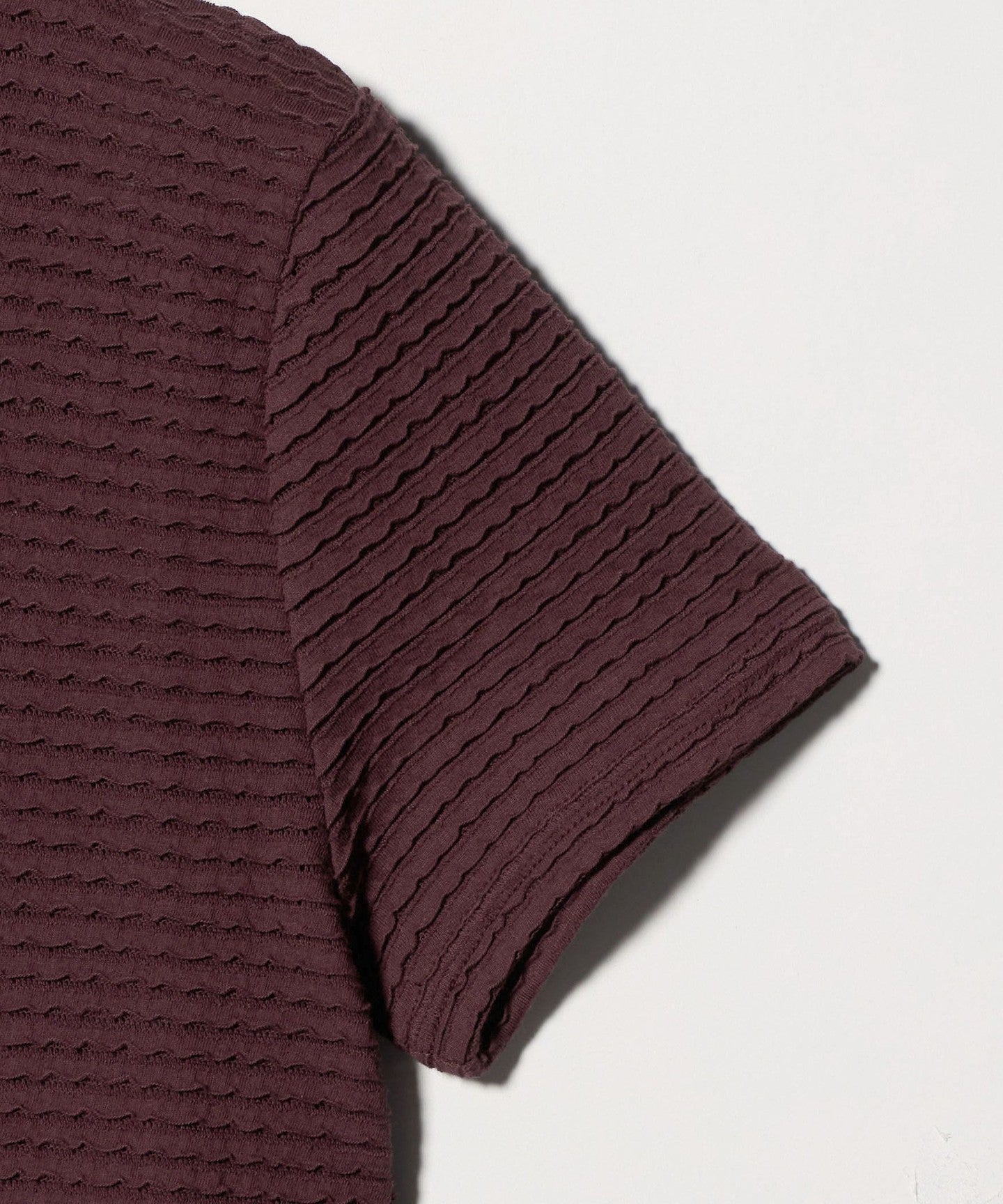 A T-shirt made from jersey material with a three-dimensional look that resembles a series of fine ruffles.