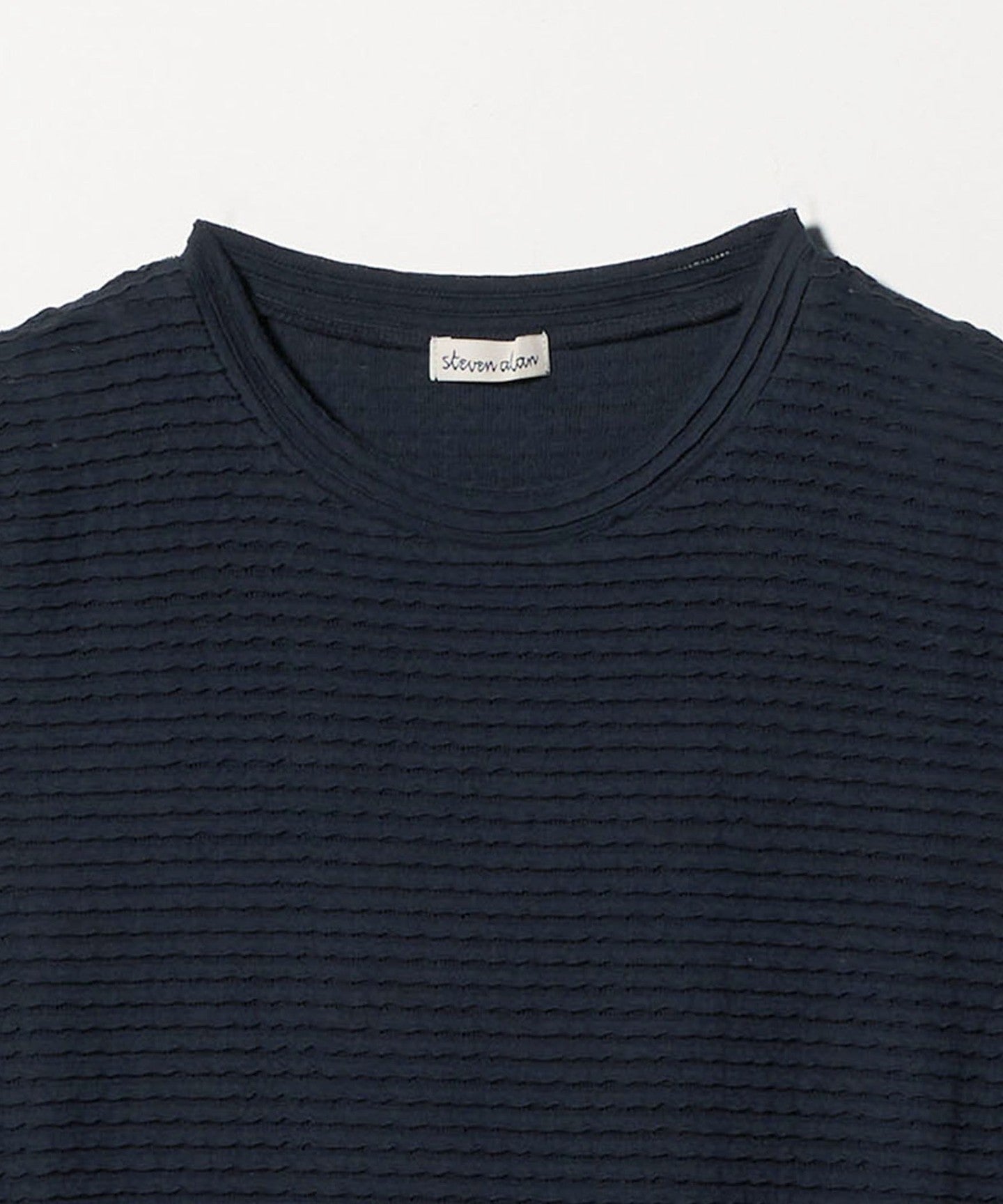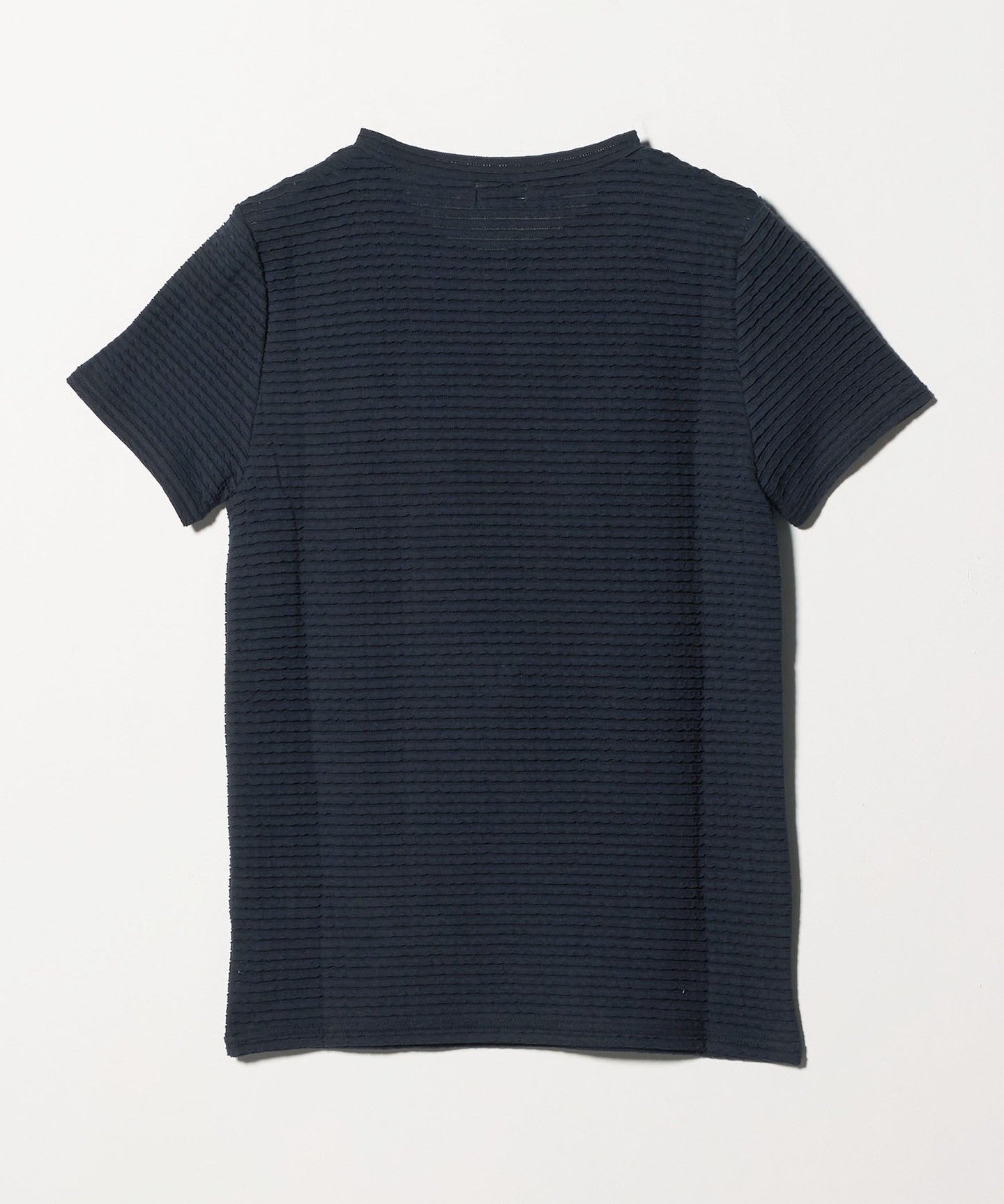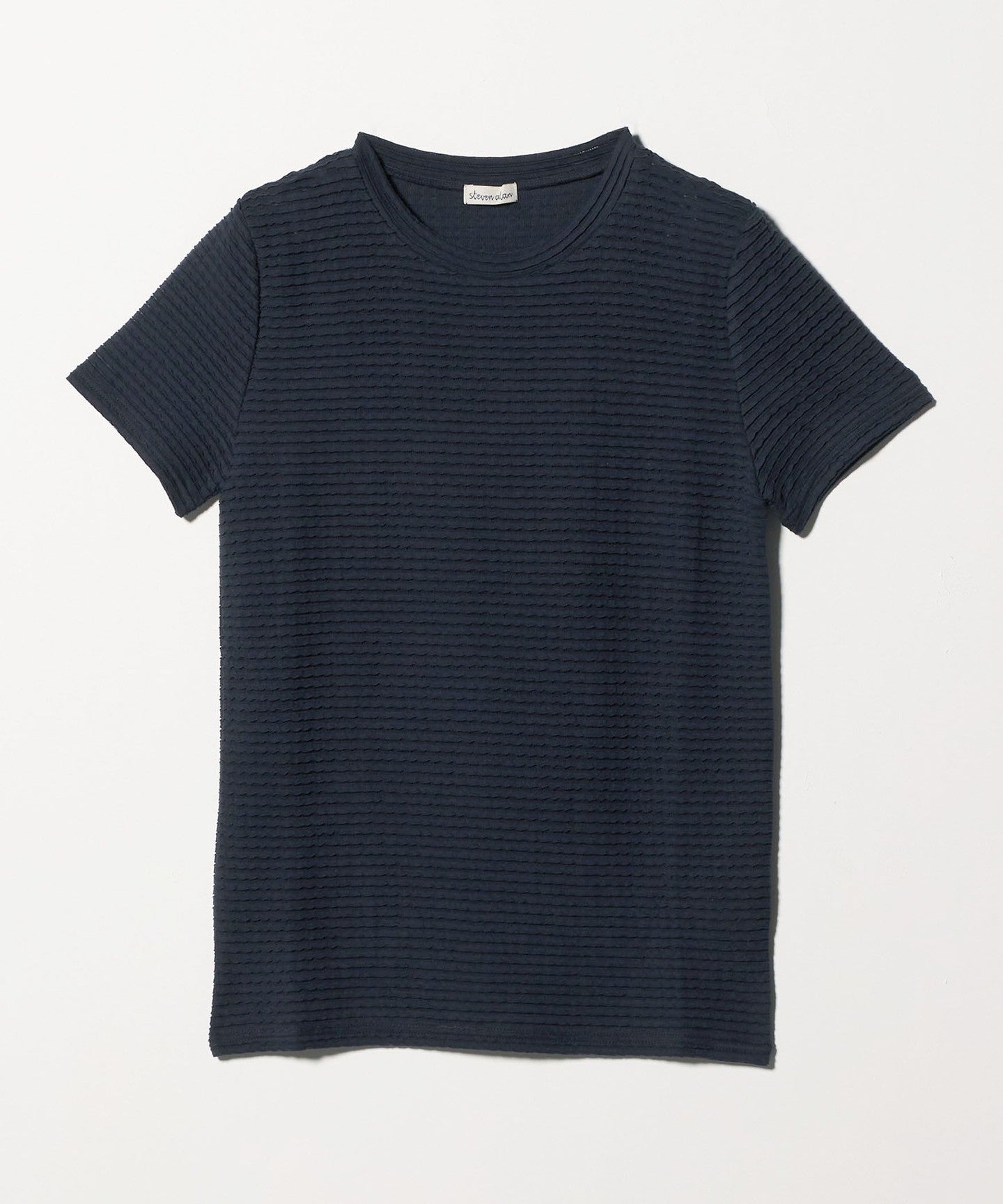 A T-shirt made from jersey material with a three-dimensional look that resembles a series of fine ruffles.