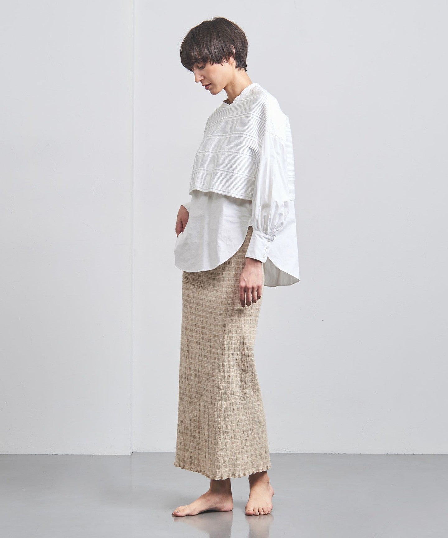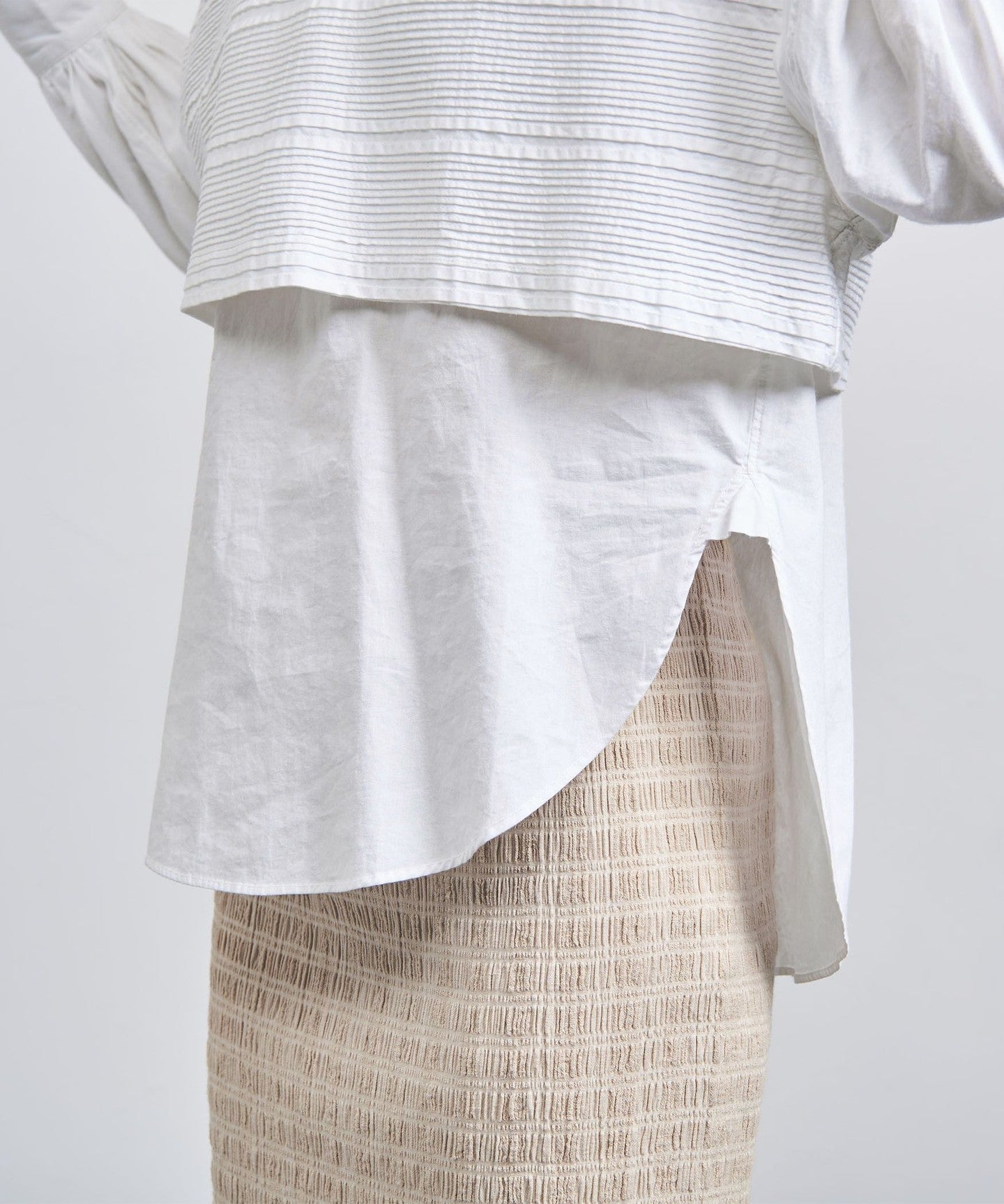 PINDouble tuck part FABRIC By doing so, a three-dimensional effect was created. SHIRT .