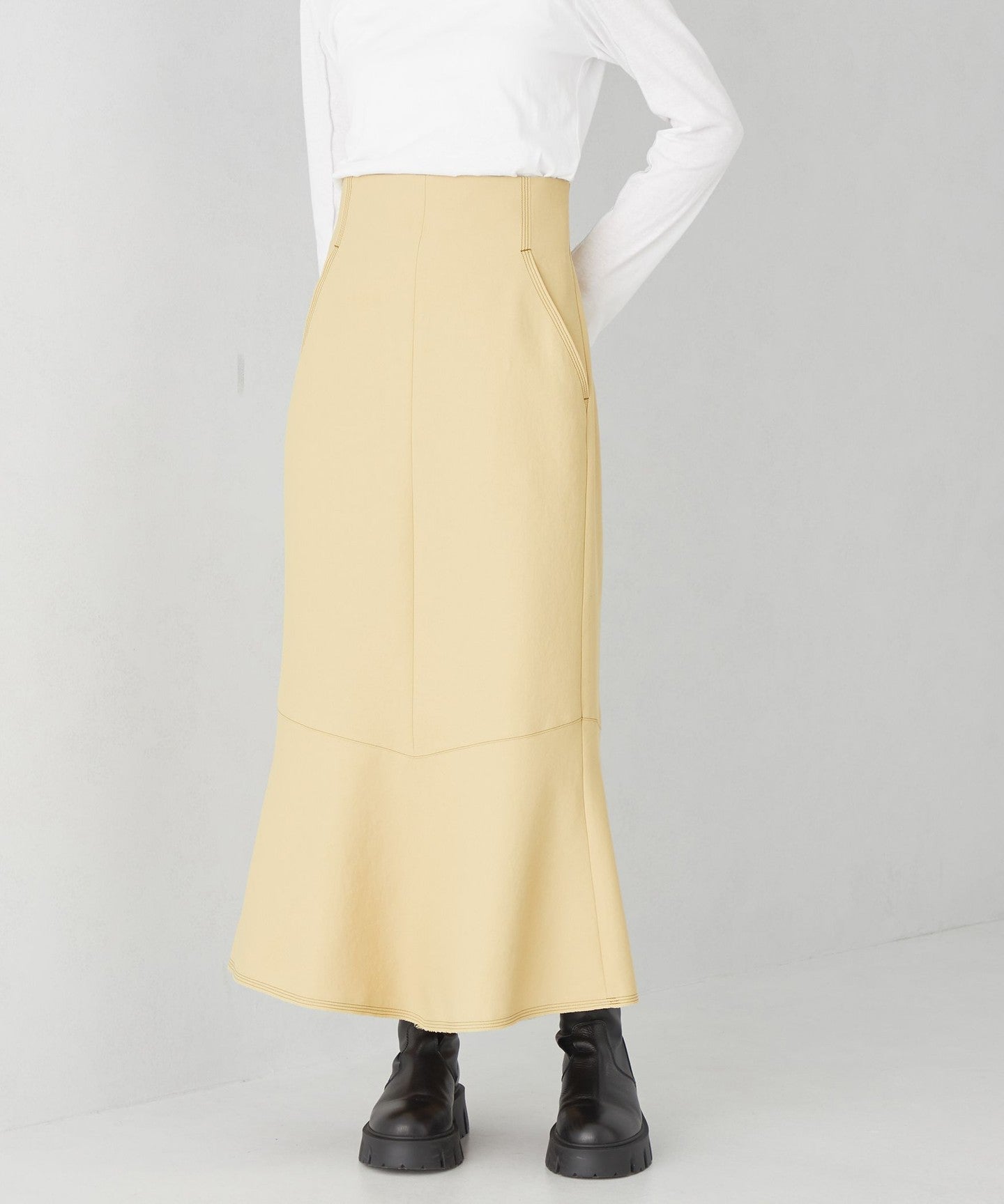 This I-line skirt is comfortable to wear without being too tight. It has a slight flare below the seam for a nuanced look.