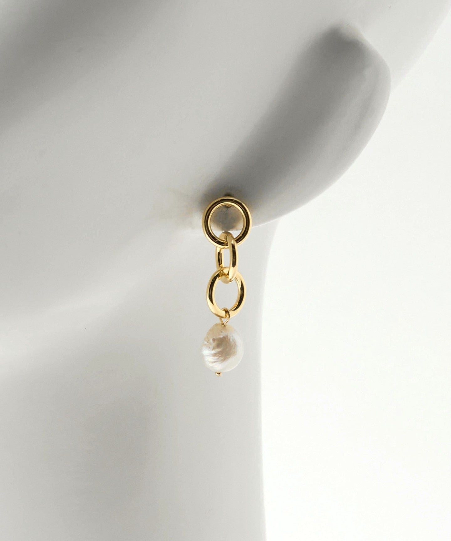 GOLD:BODY: Freshwater Pearl, Brass, EARING POST: Titanium