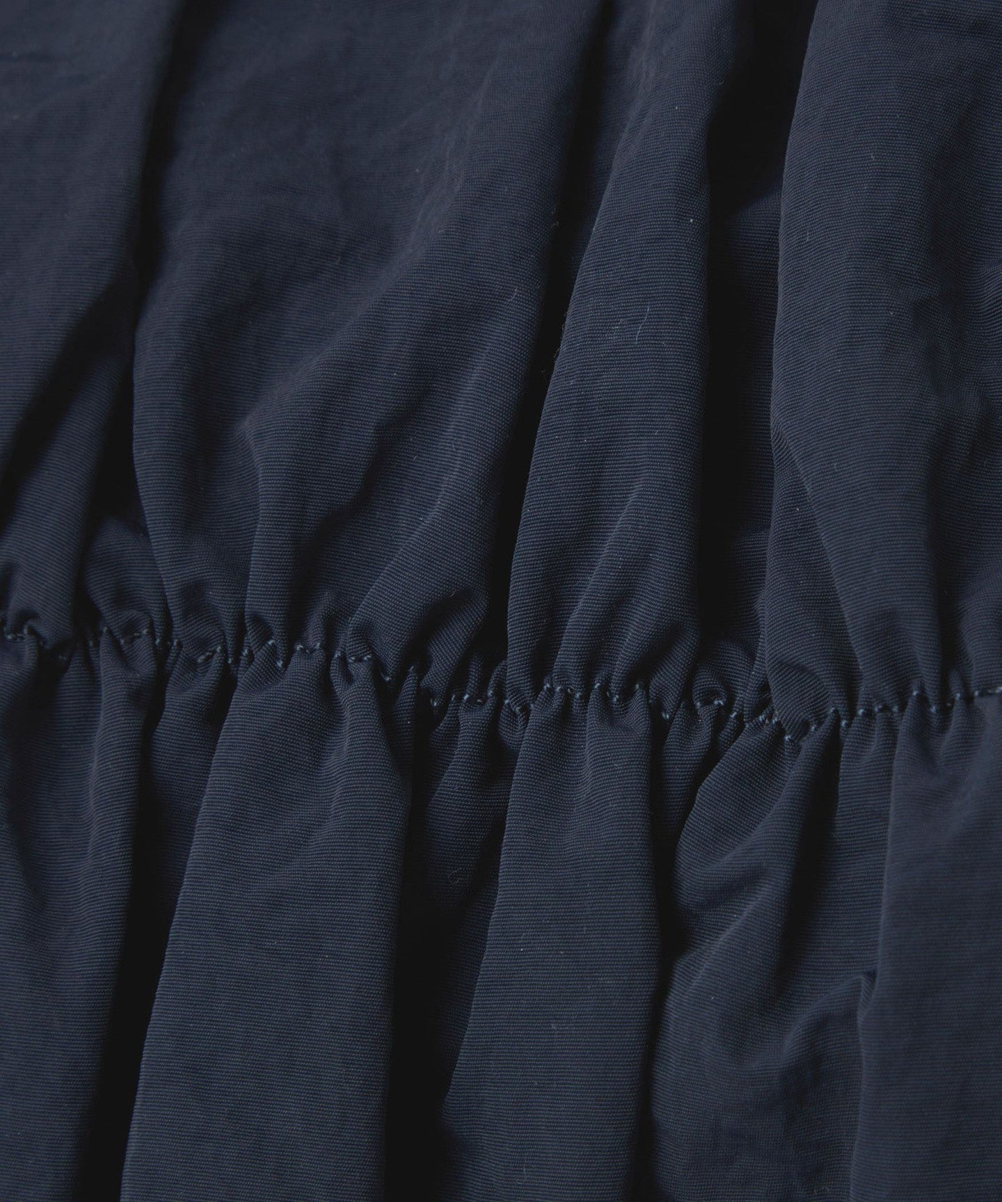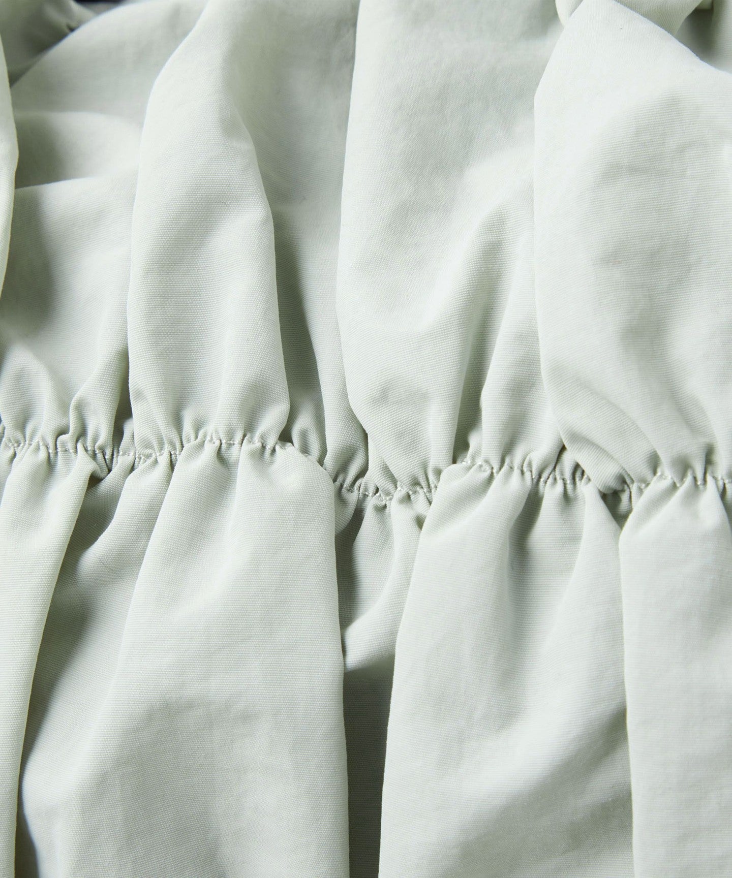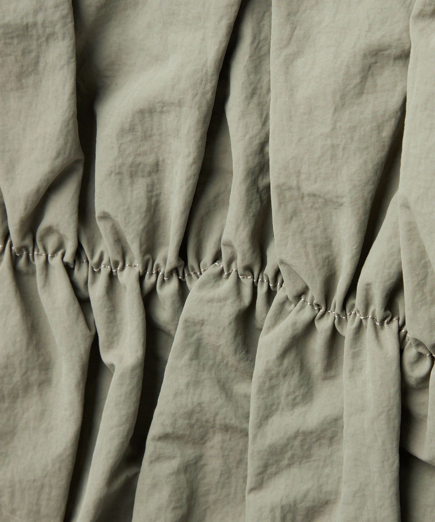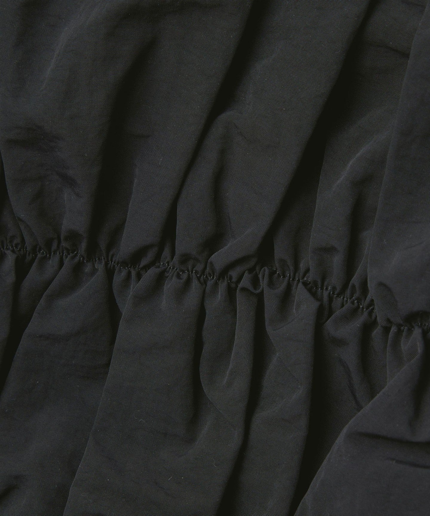 The striking three-tier shirring design is also recommended as an accent for simple styling.