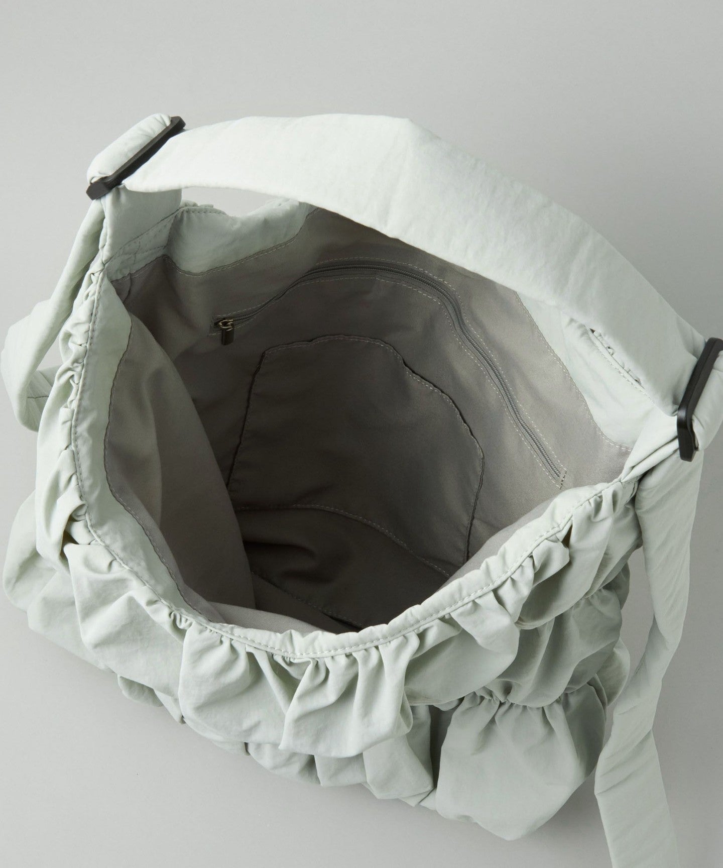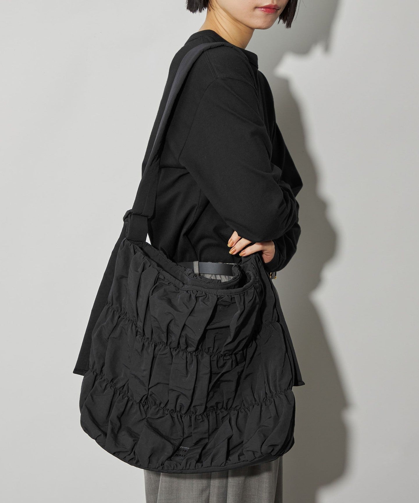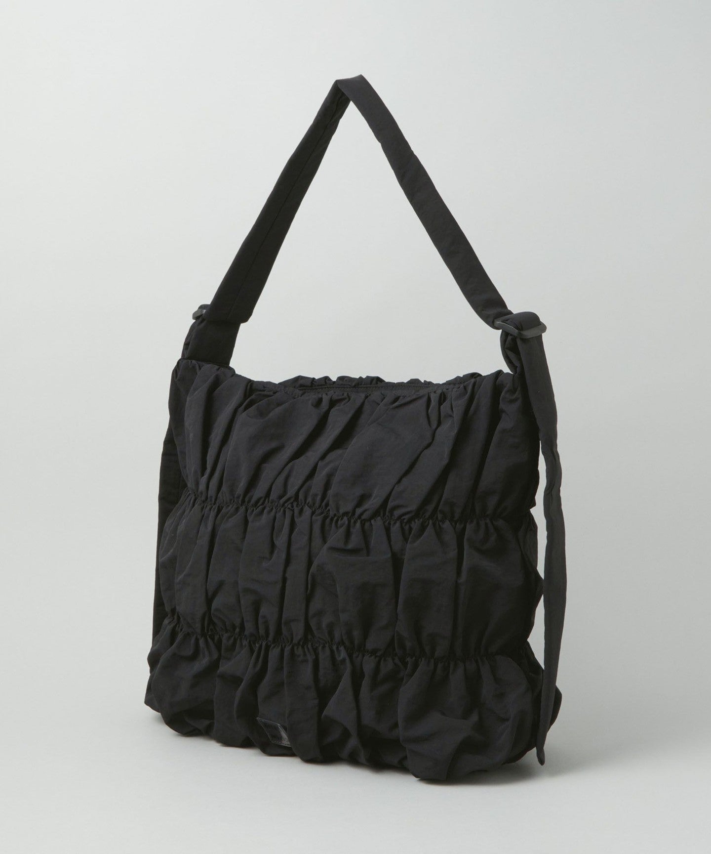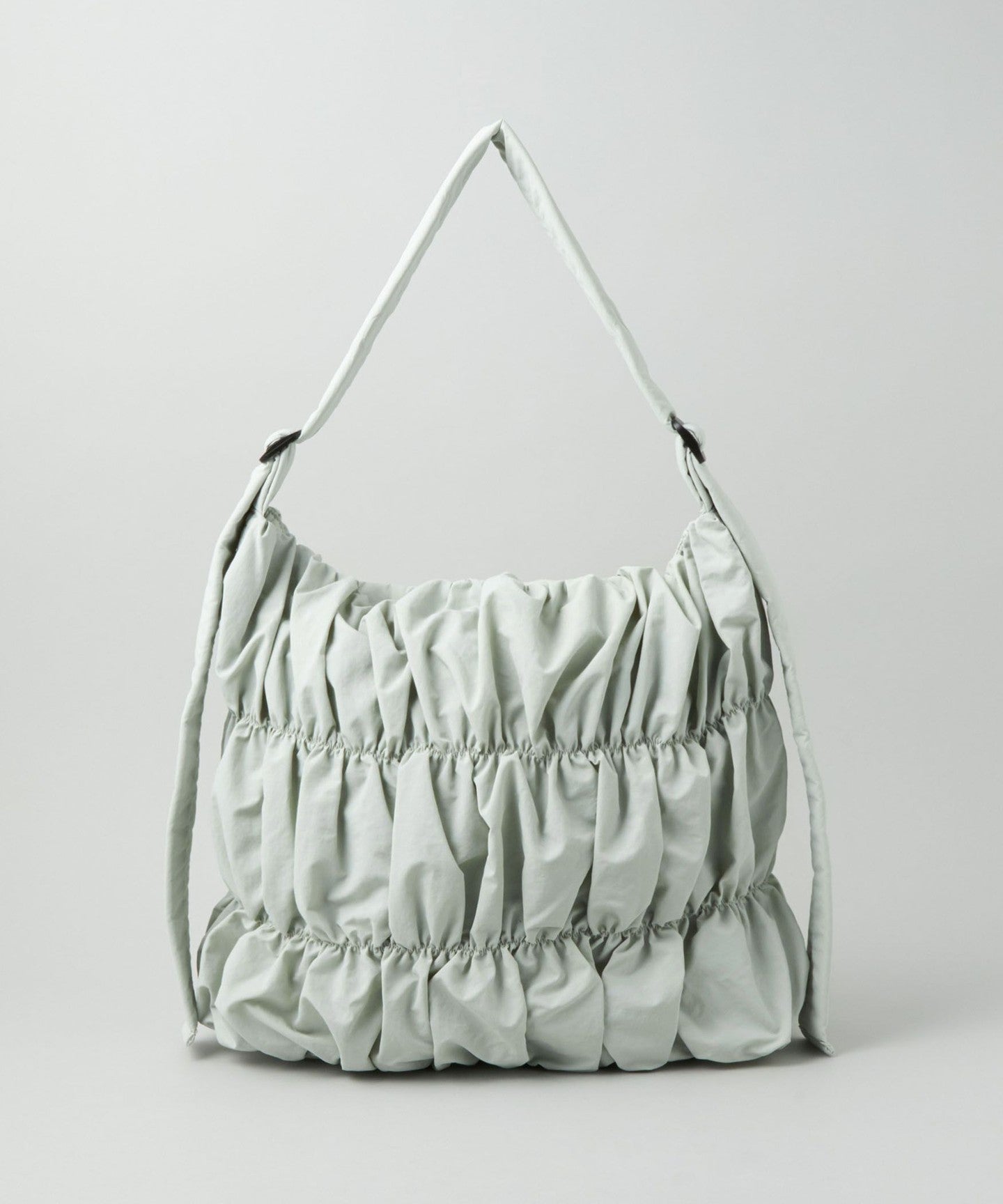 The striking three-tier shirring design is also recommended as an accent for simple styling.