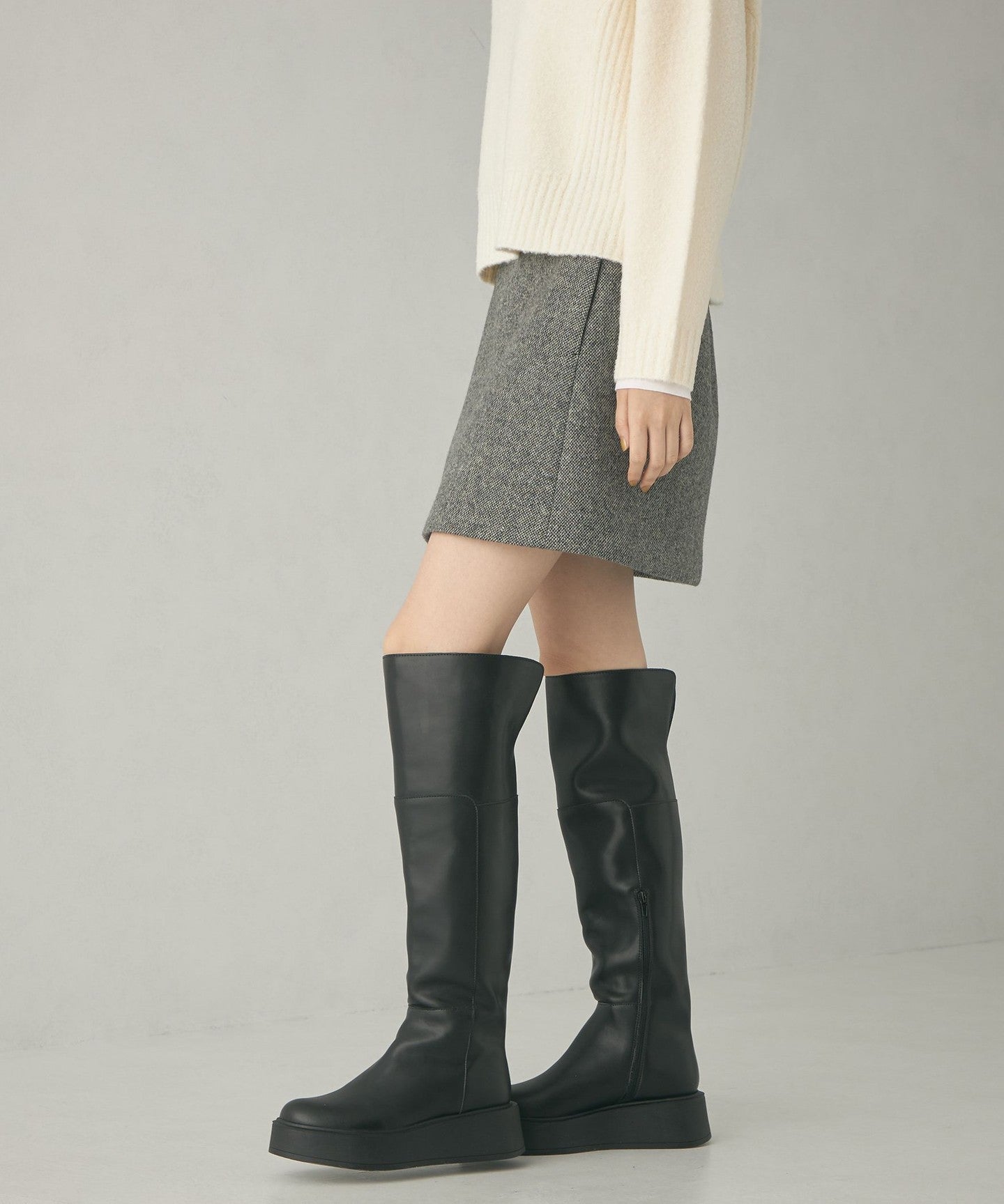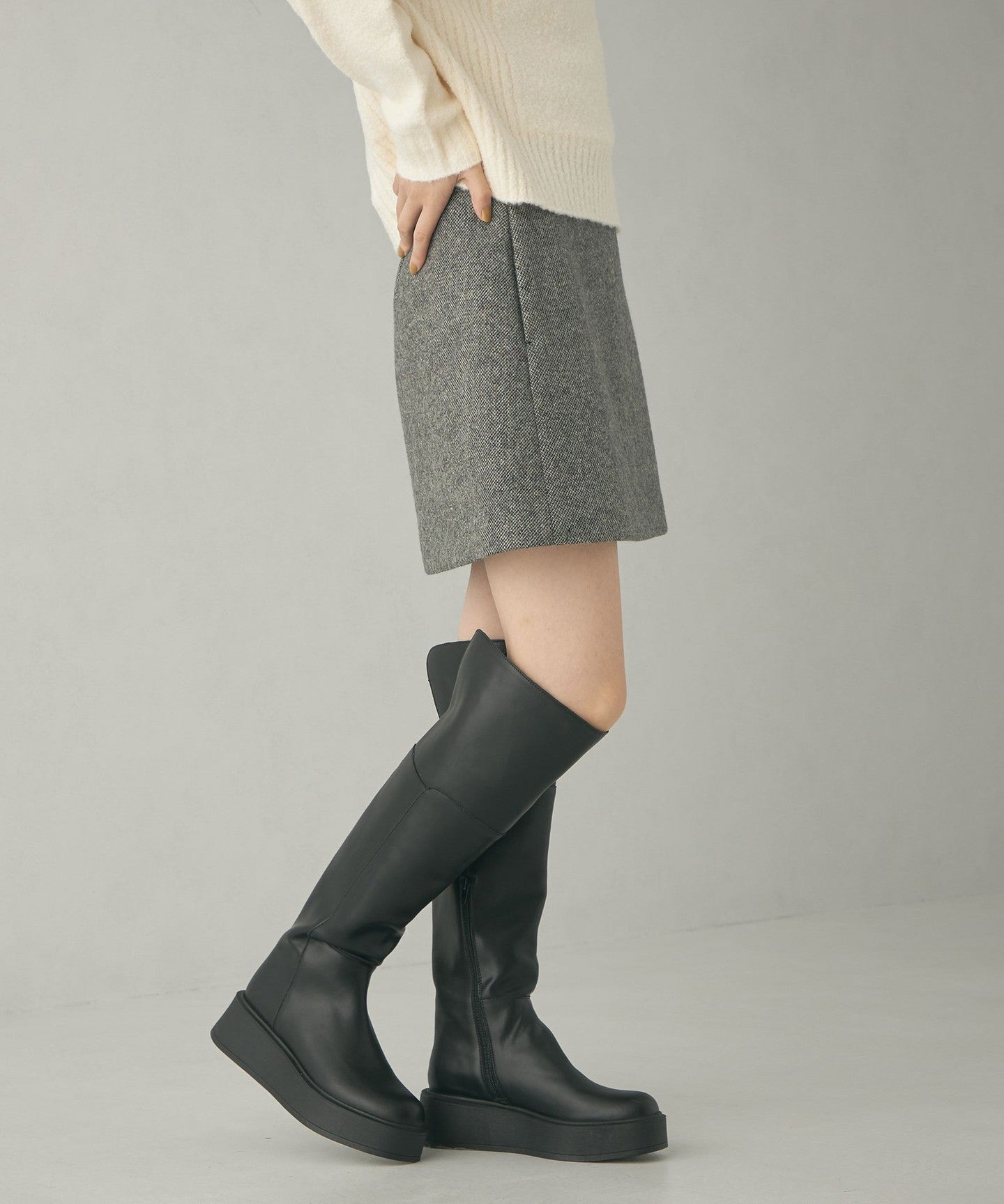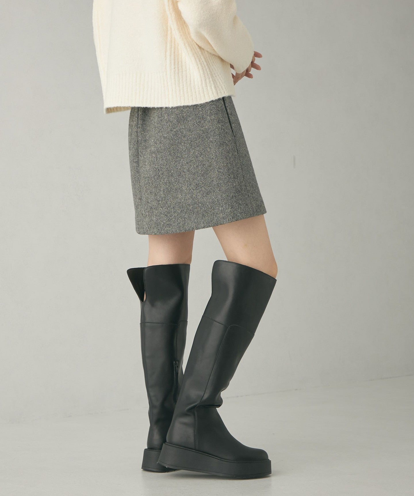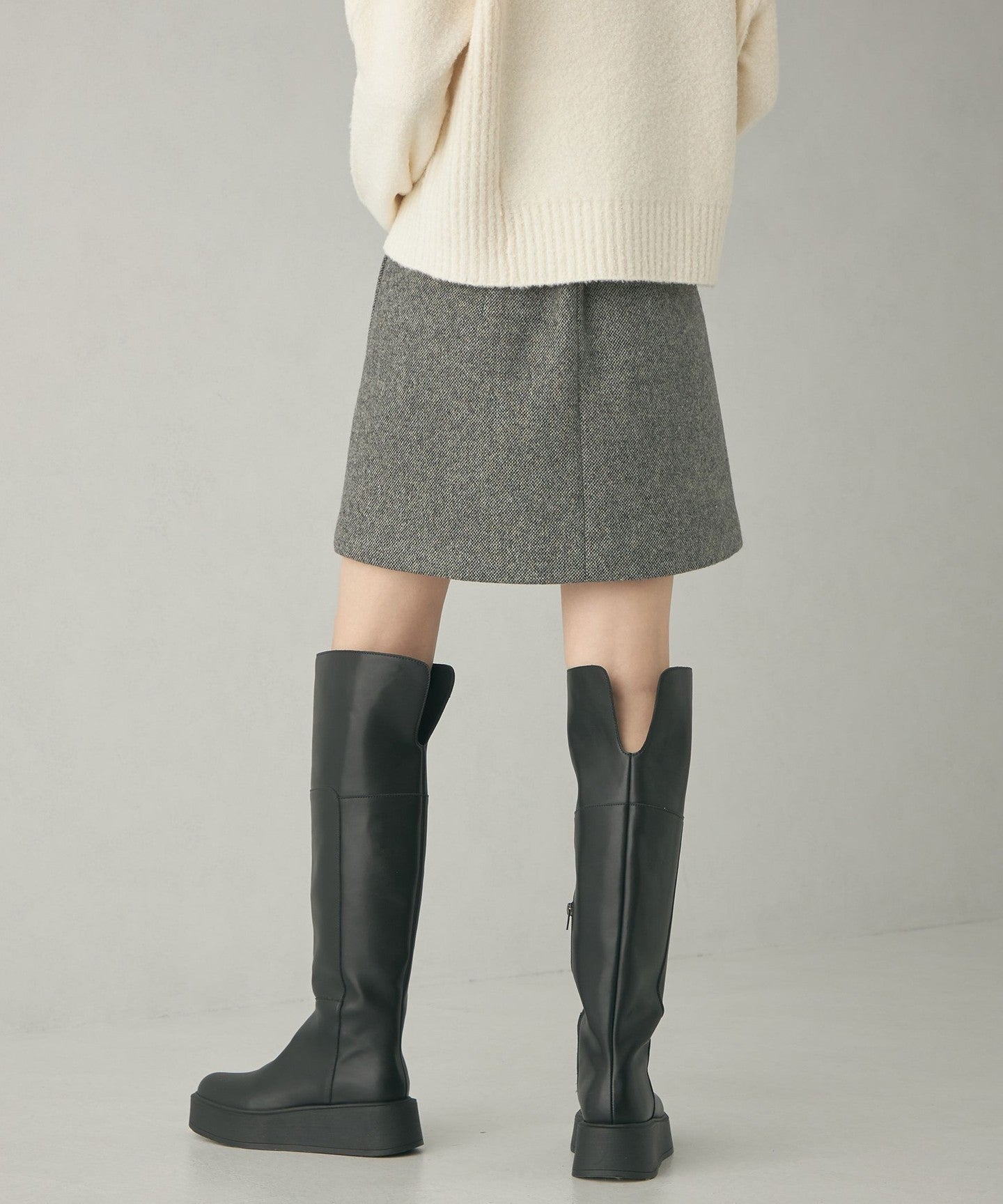 A mini skirt made of attractive tweed bonded material