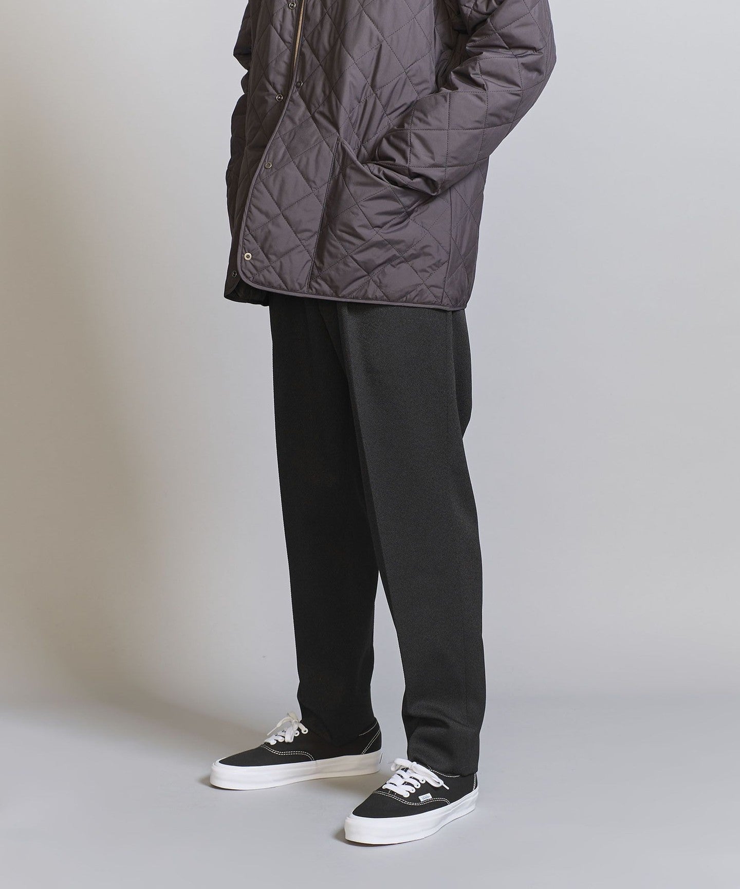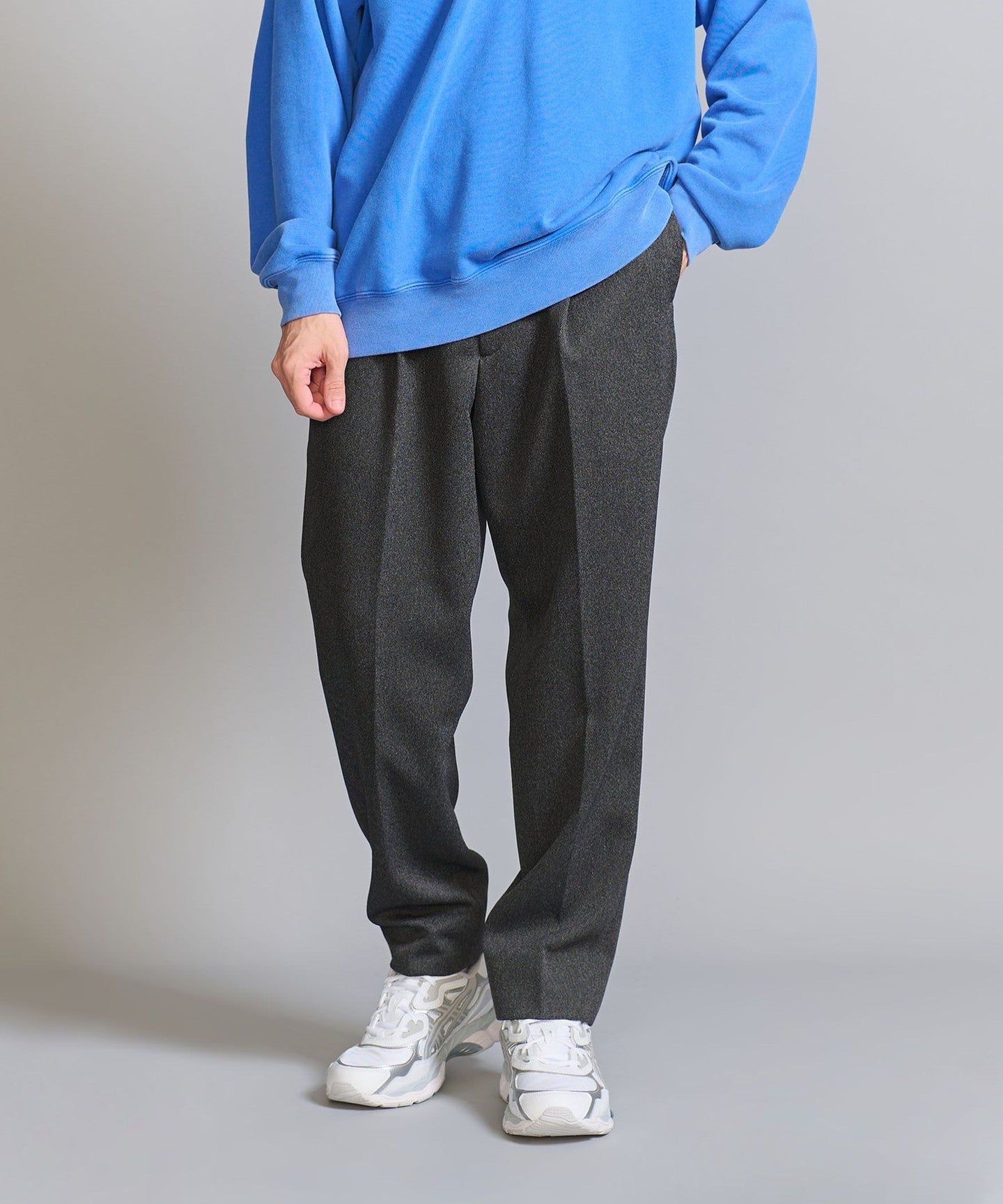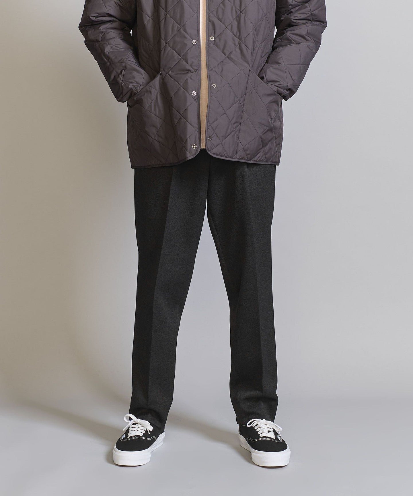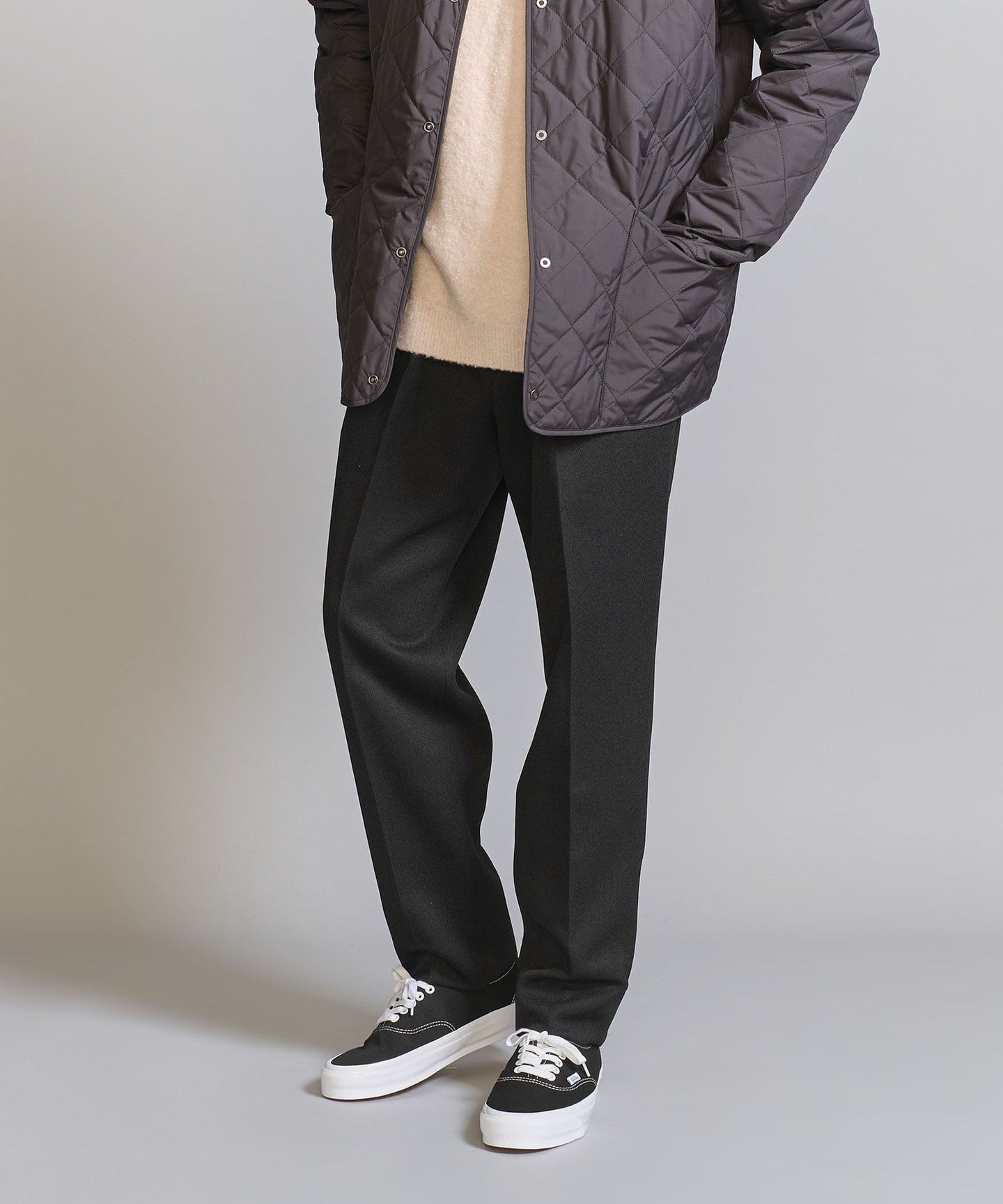 We recommend pairing it with a compact-fit cut-and-sew top, knitwear, or shirt for an elegant and neat look.