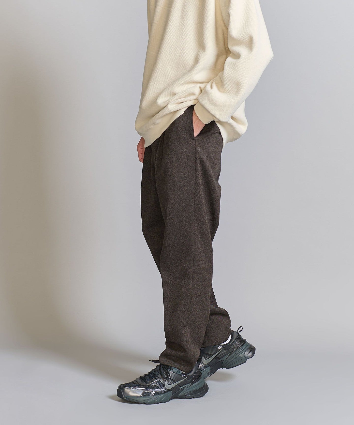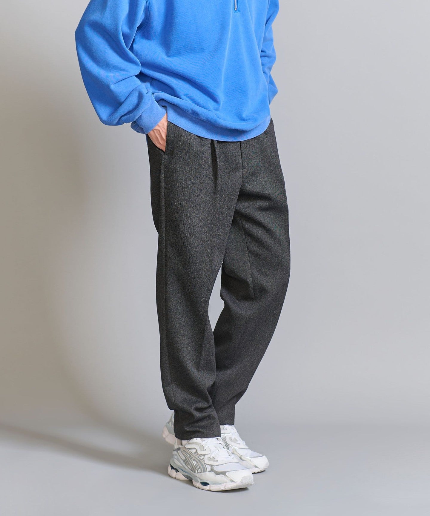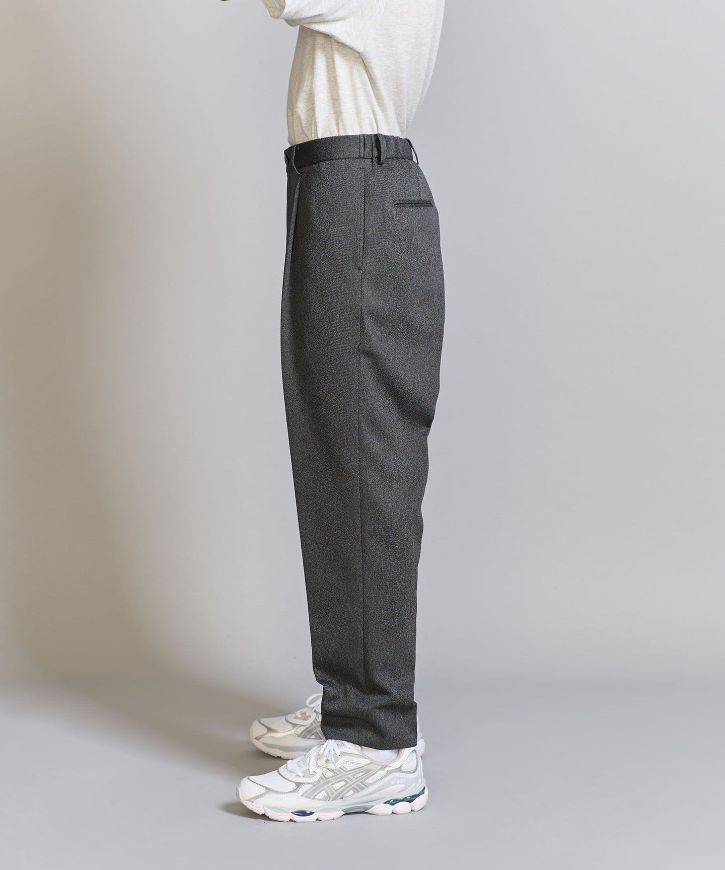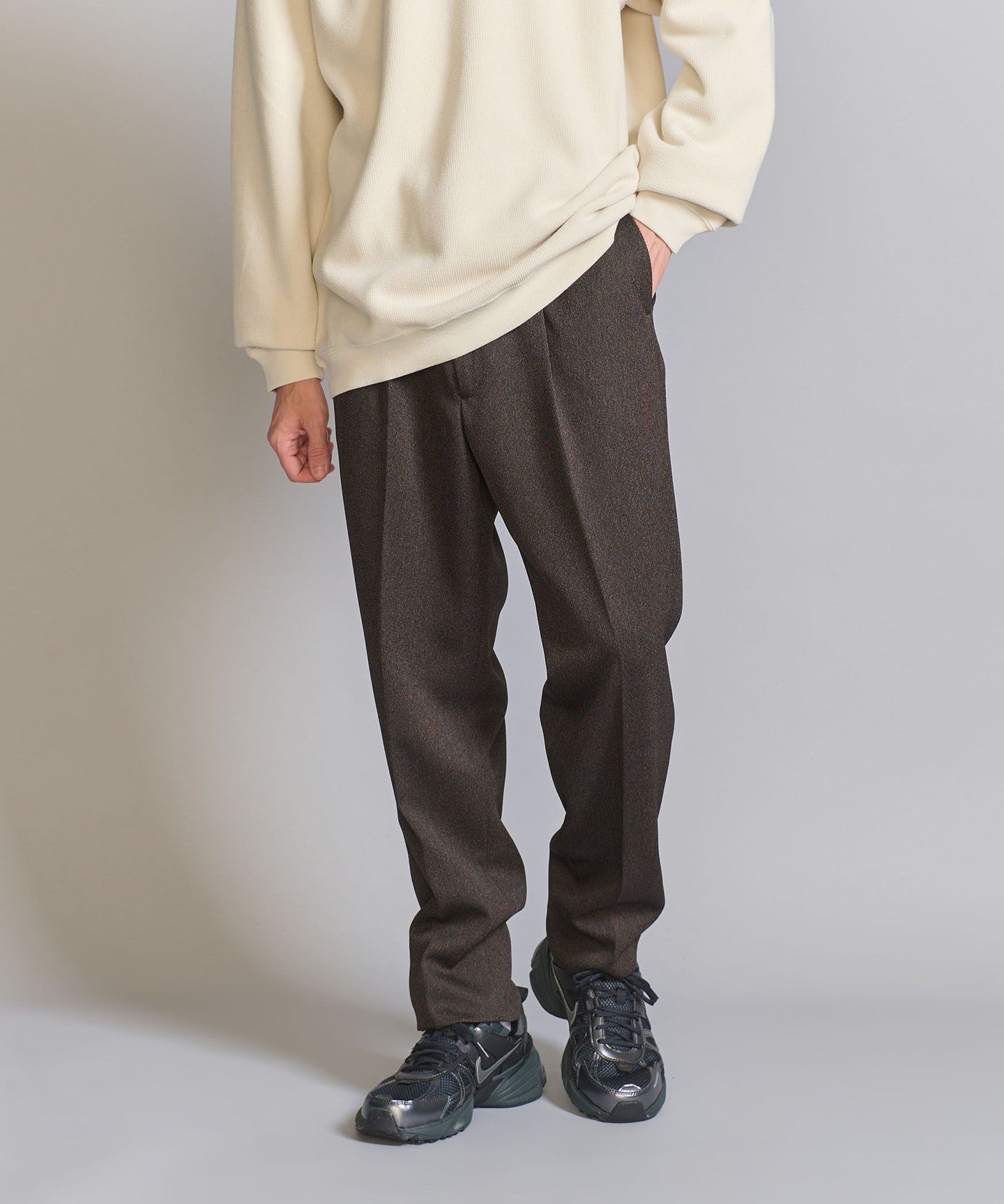 We recommend pairing it with a compact-fit cut-and-sew top, knitwear, or shirt for an elegant and neat look.