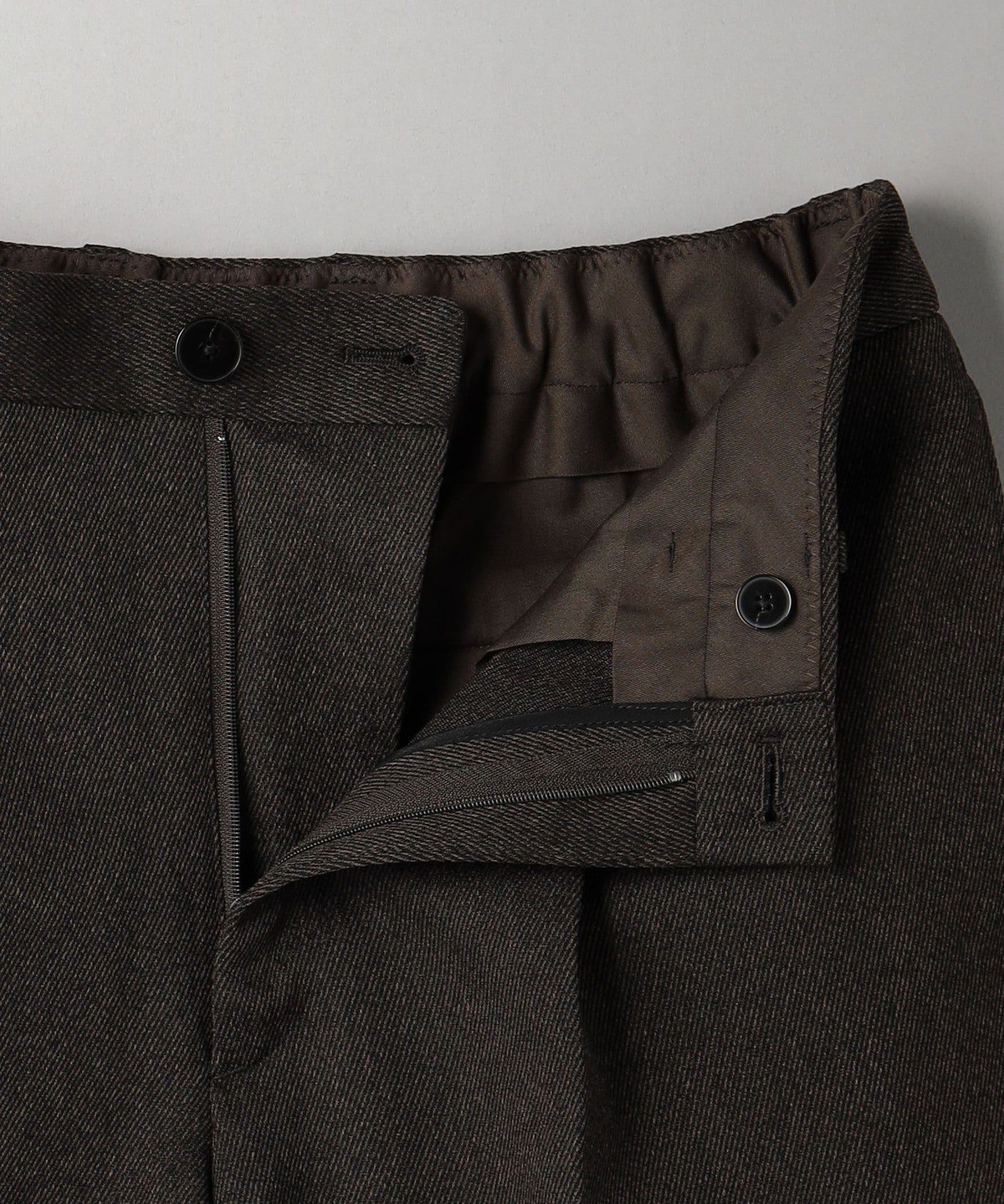 Made from tricotine twill fabric with a nuanced melange look and a slightly uneven texture.