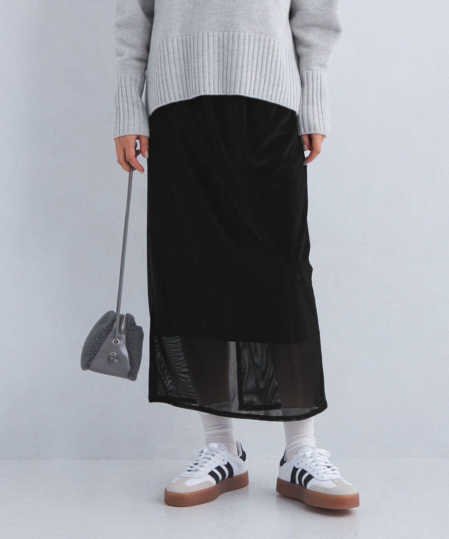 Mesh velour tight skirt