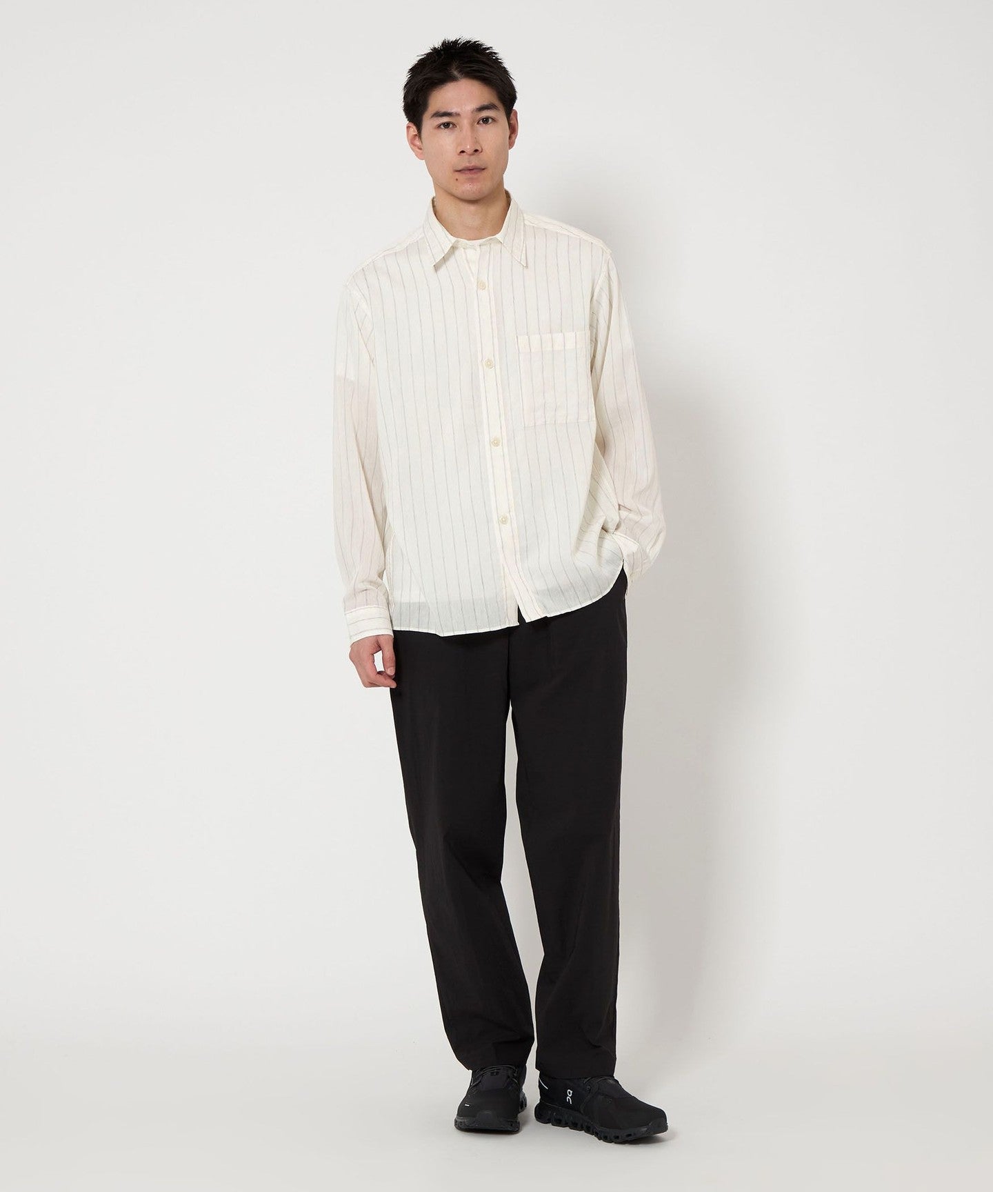 It goes well with bottoms that have a loose silhouette.