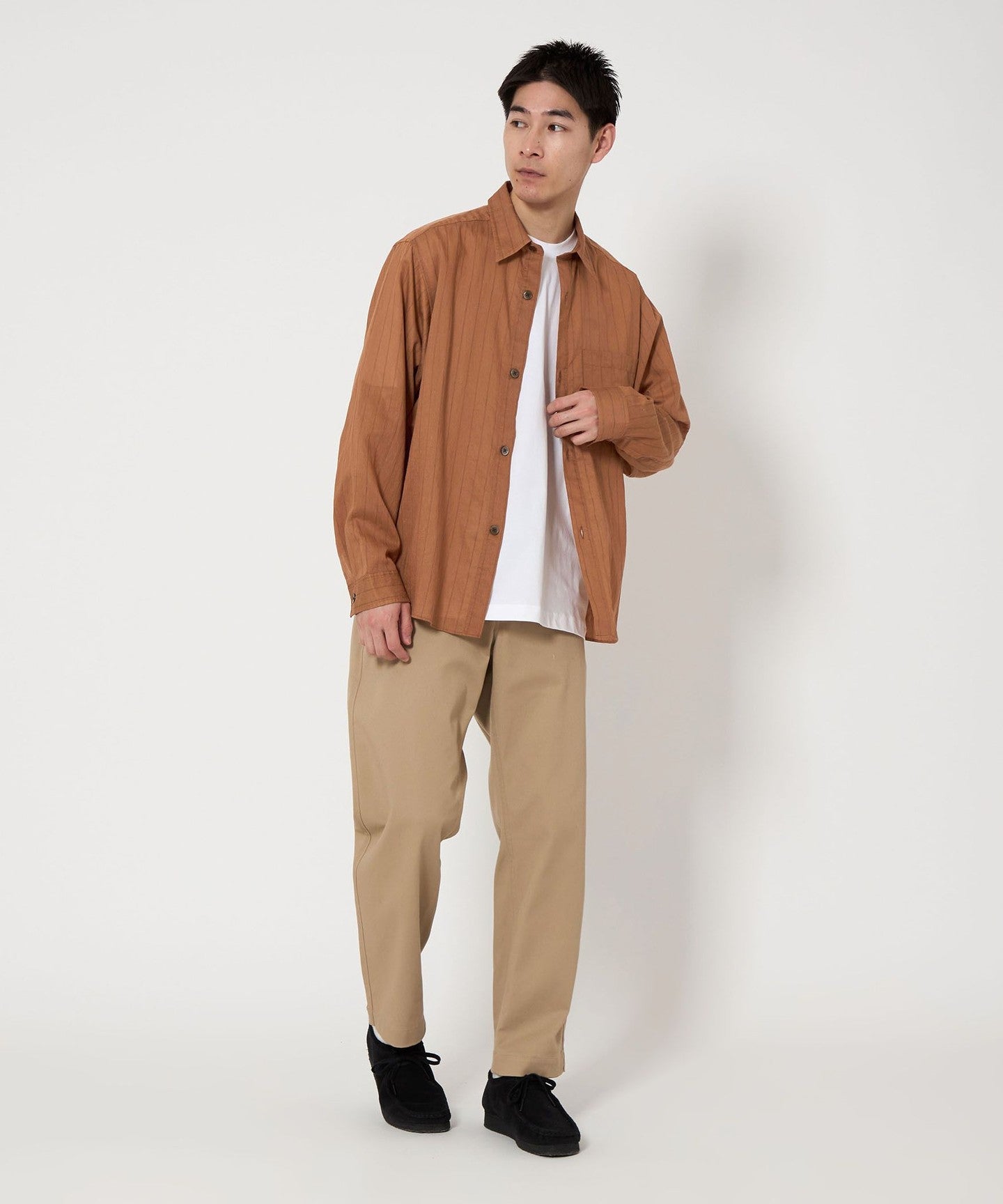 This is a regular collar shirt with a loose box silhouette.