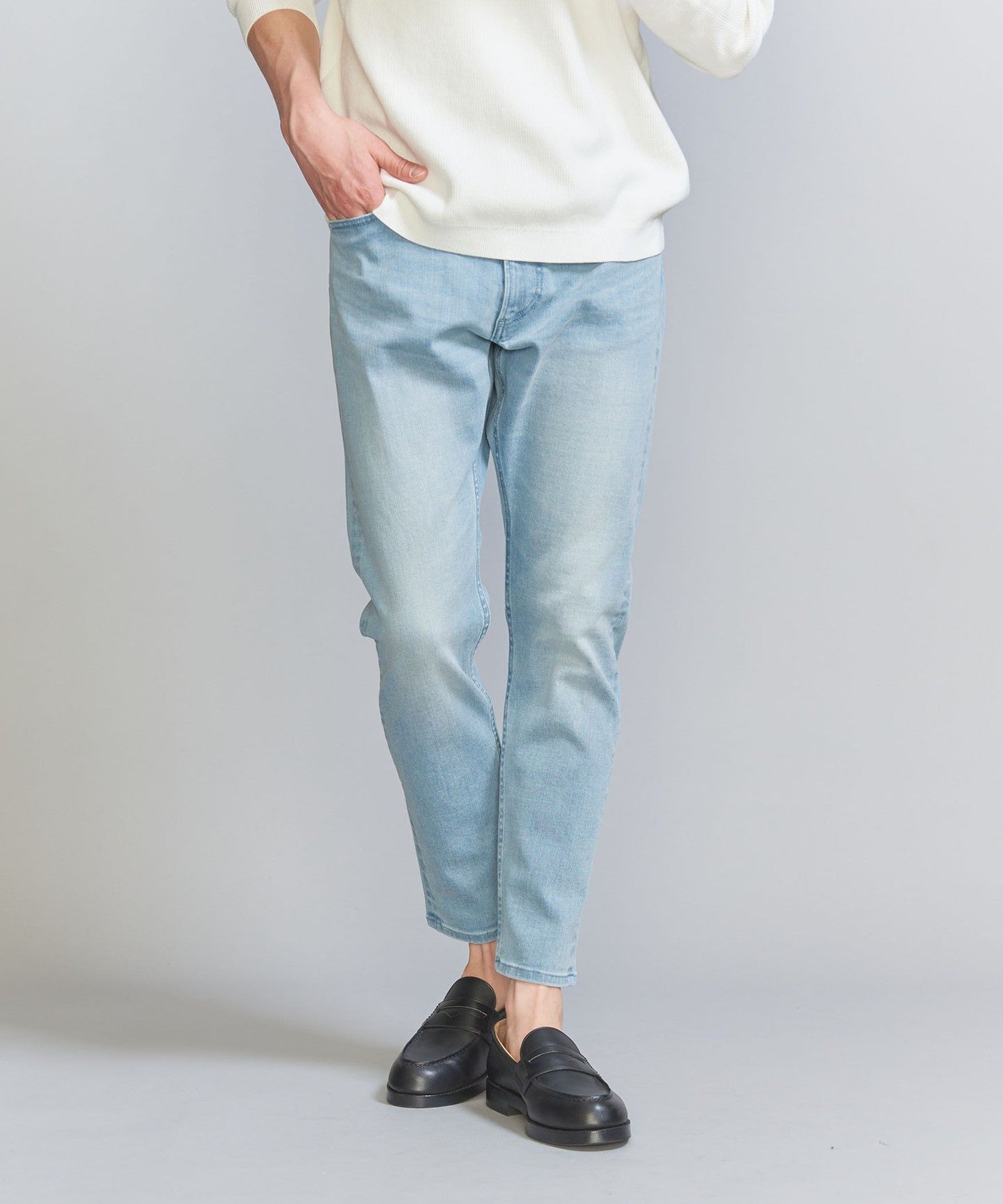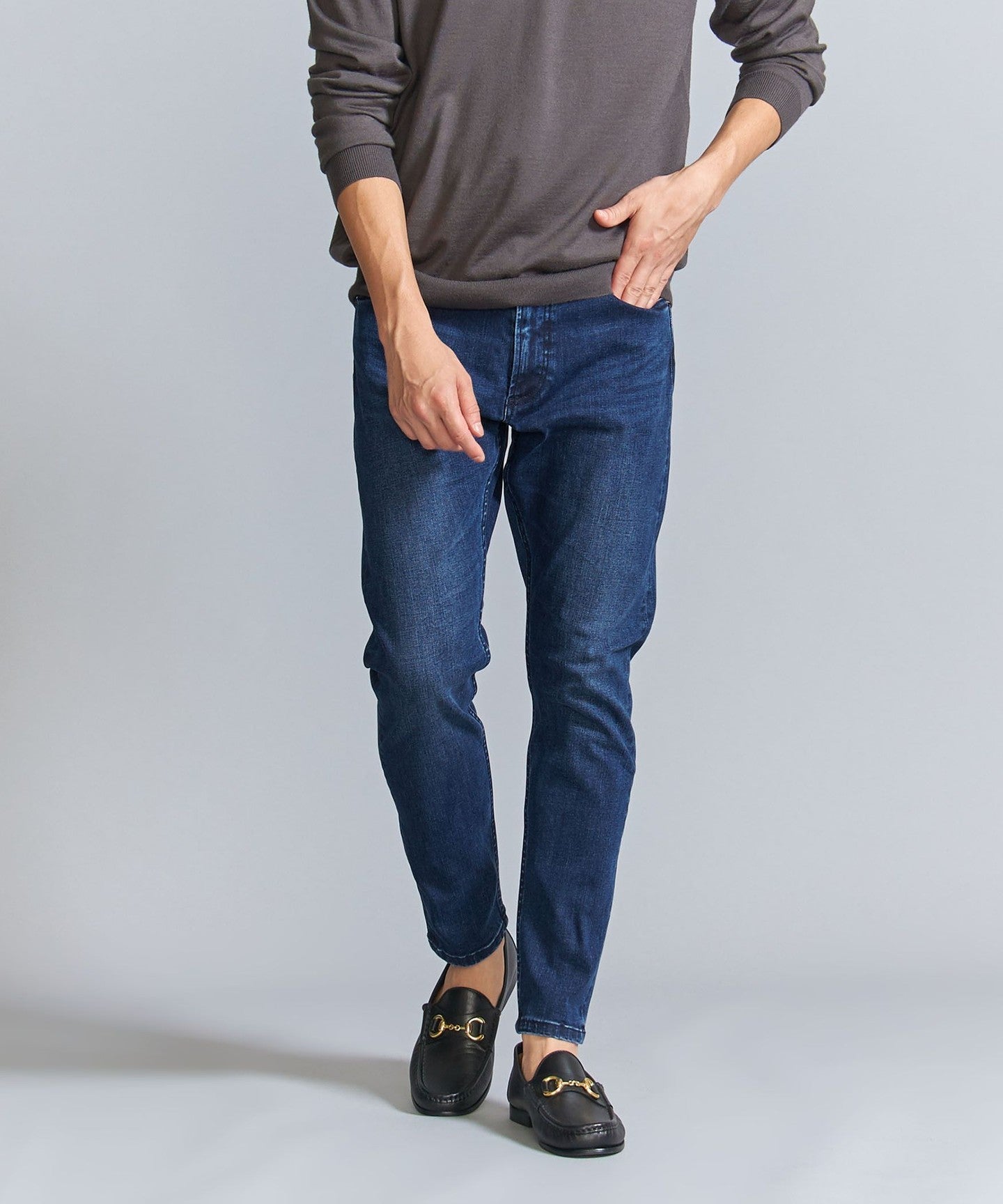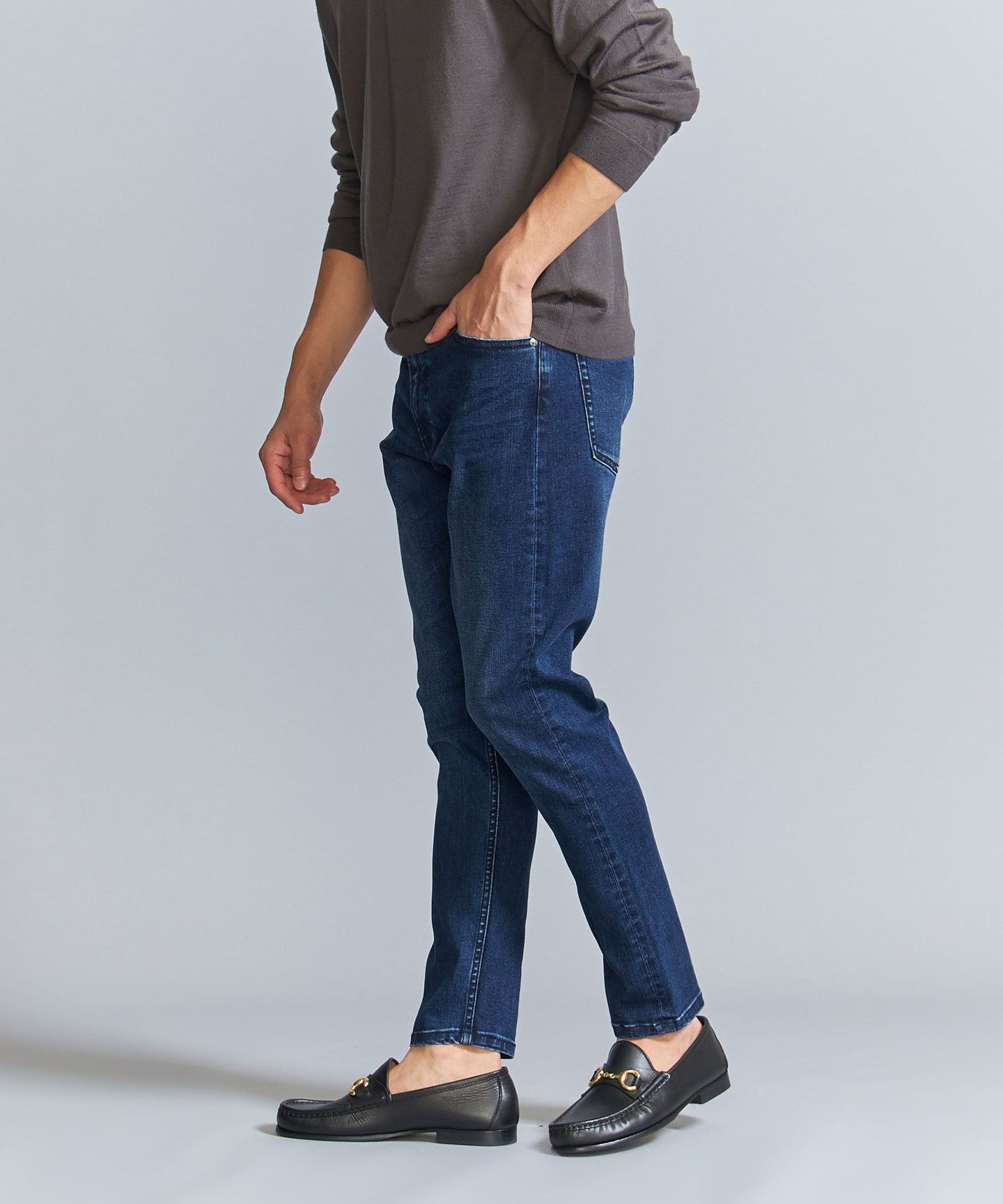 LT.BLUECOBALT: Indigo dyed. Please note that the color may transfer to light-colored bags, belts, etc. due to friction. We recommend wearing underwear of the same color. When washing, the color may fade slightly, so please wash the item separately.