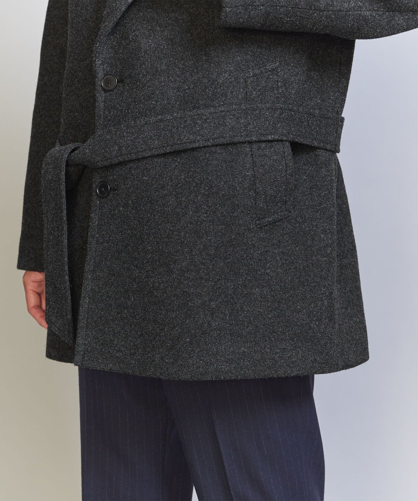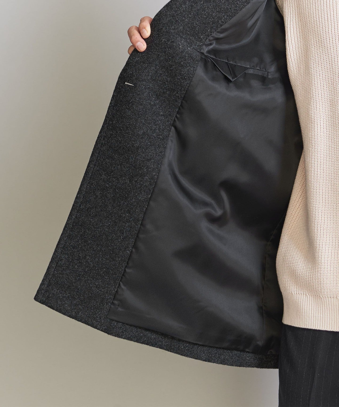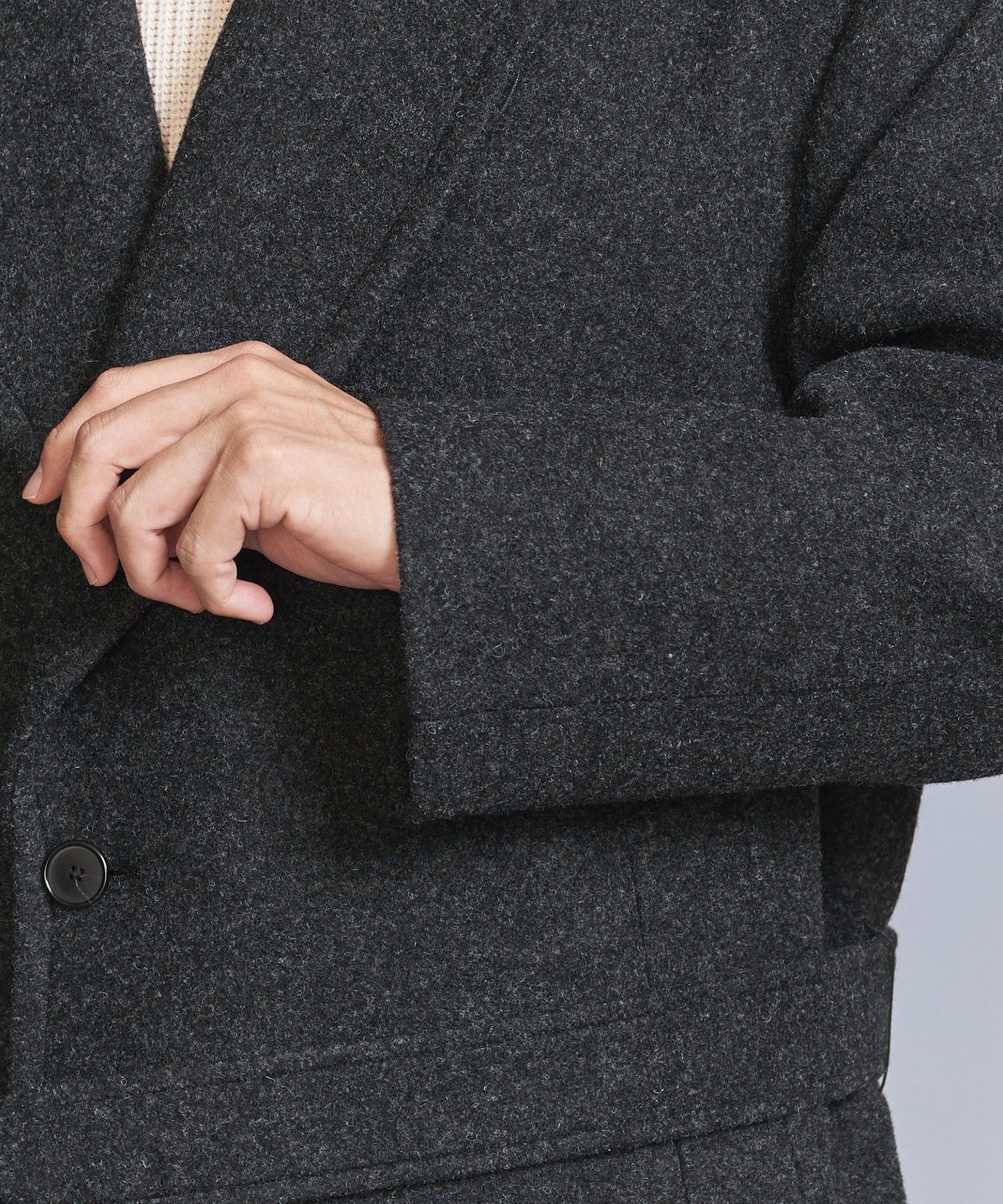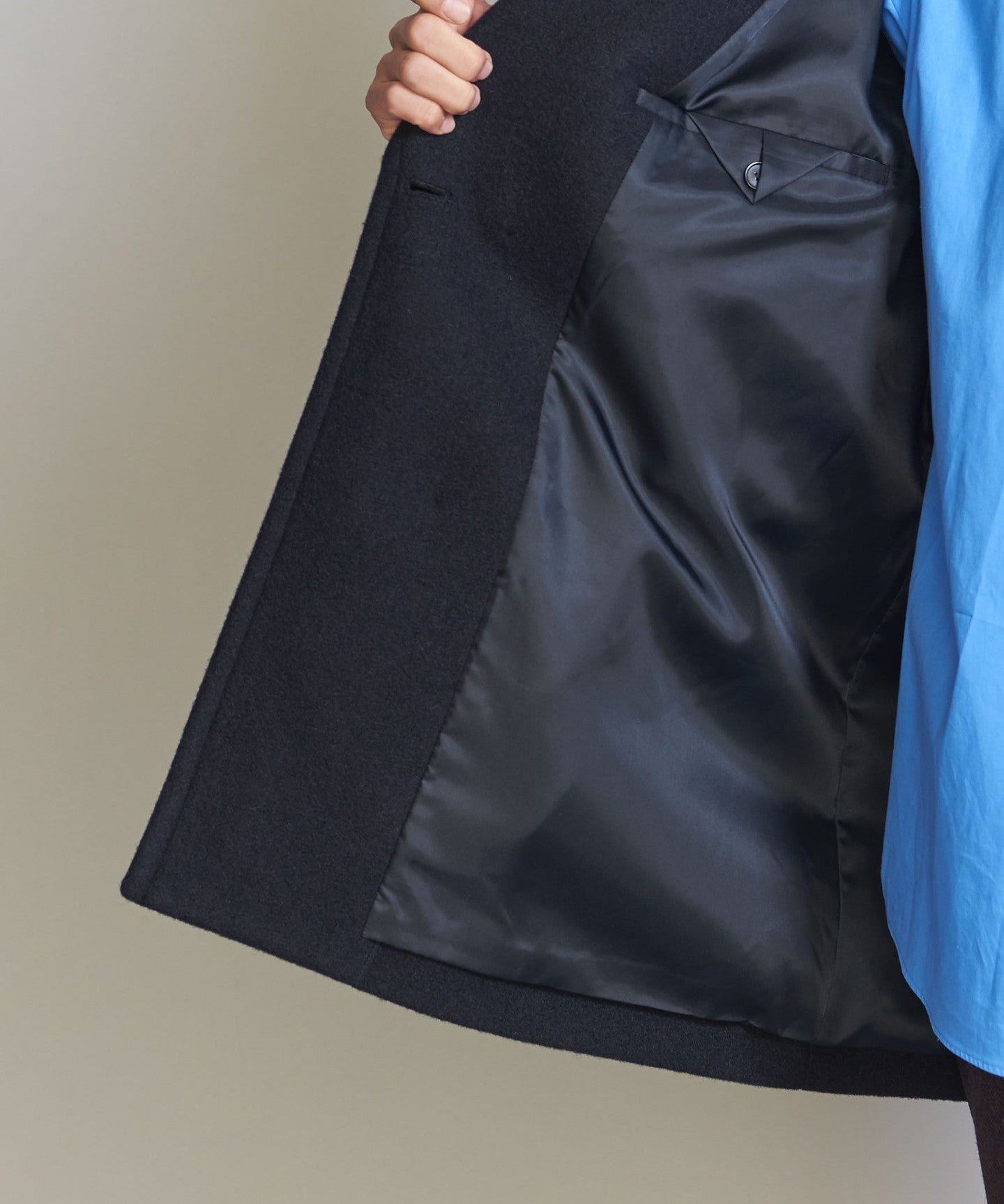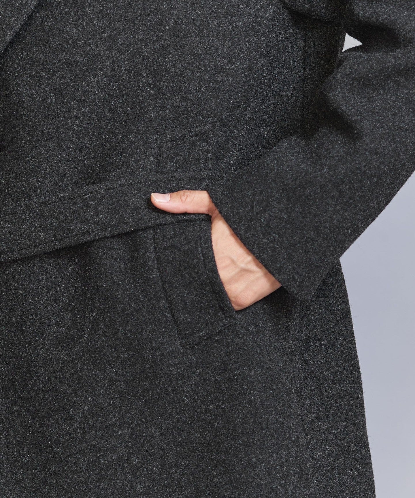 Melton FABRIC The material is lighter and more voluminous than the regular version, with a firm texture.