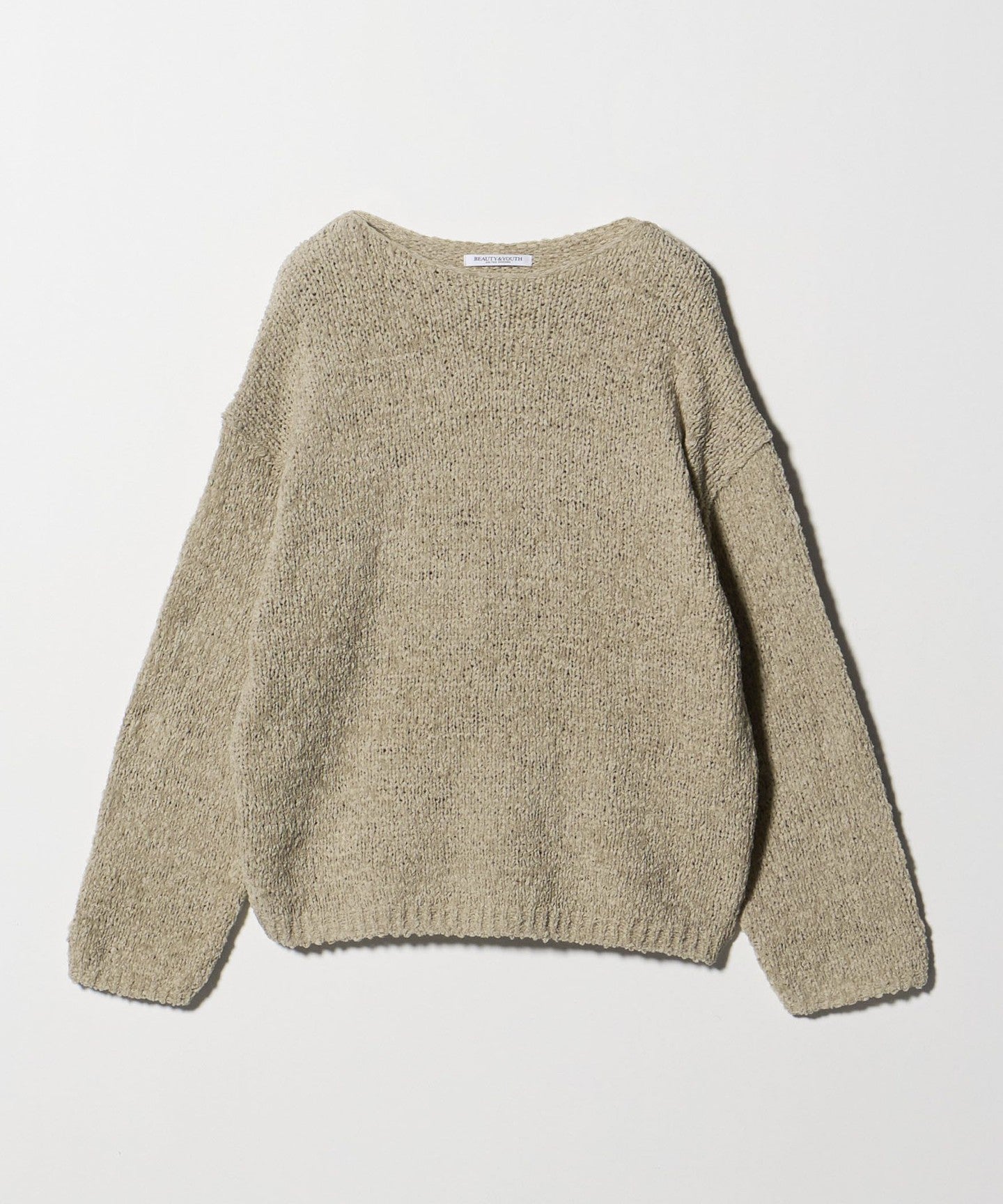 This knit pullover is loosely knitted using tape yarn, giving it a relaxed feel.