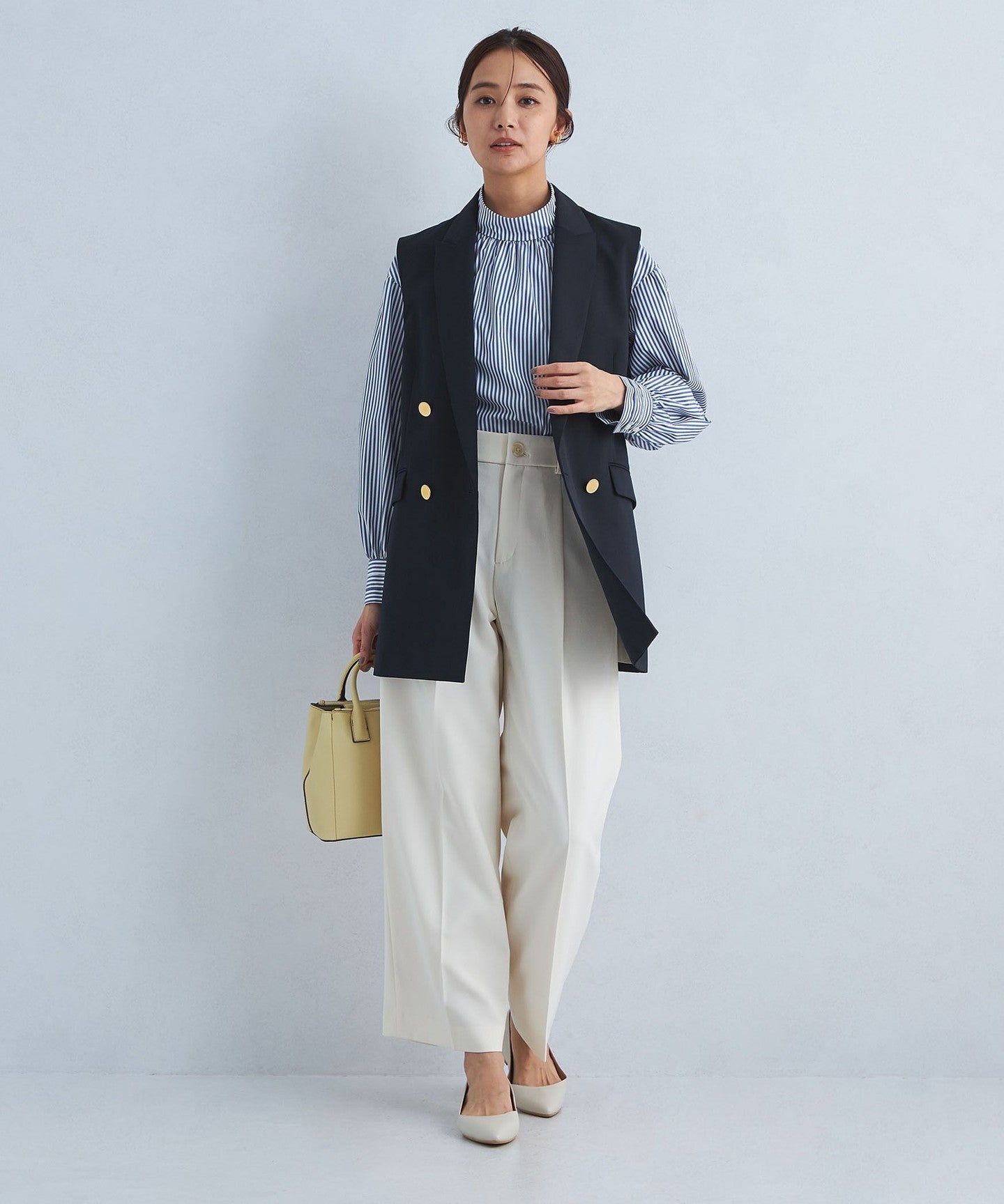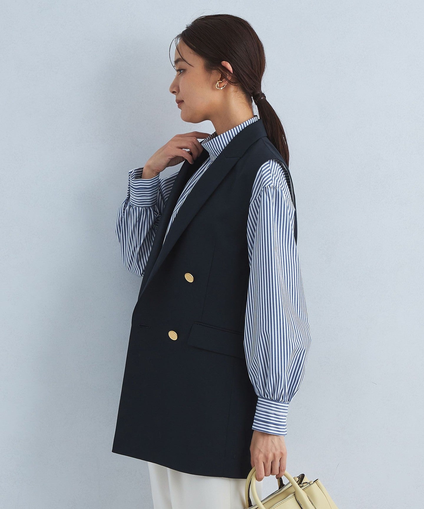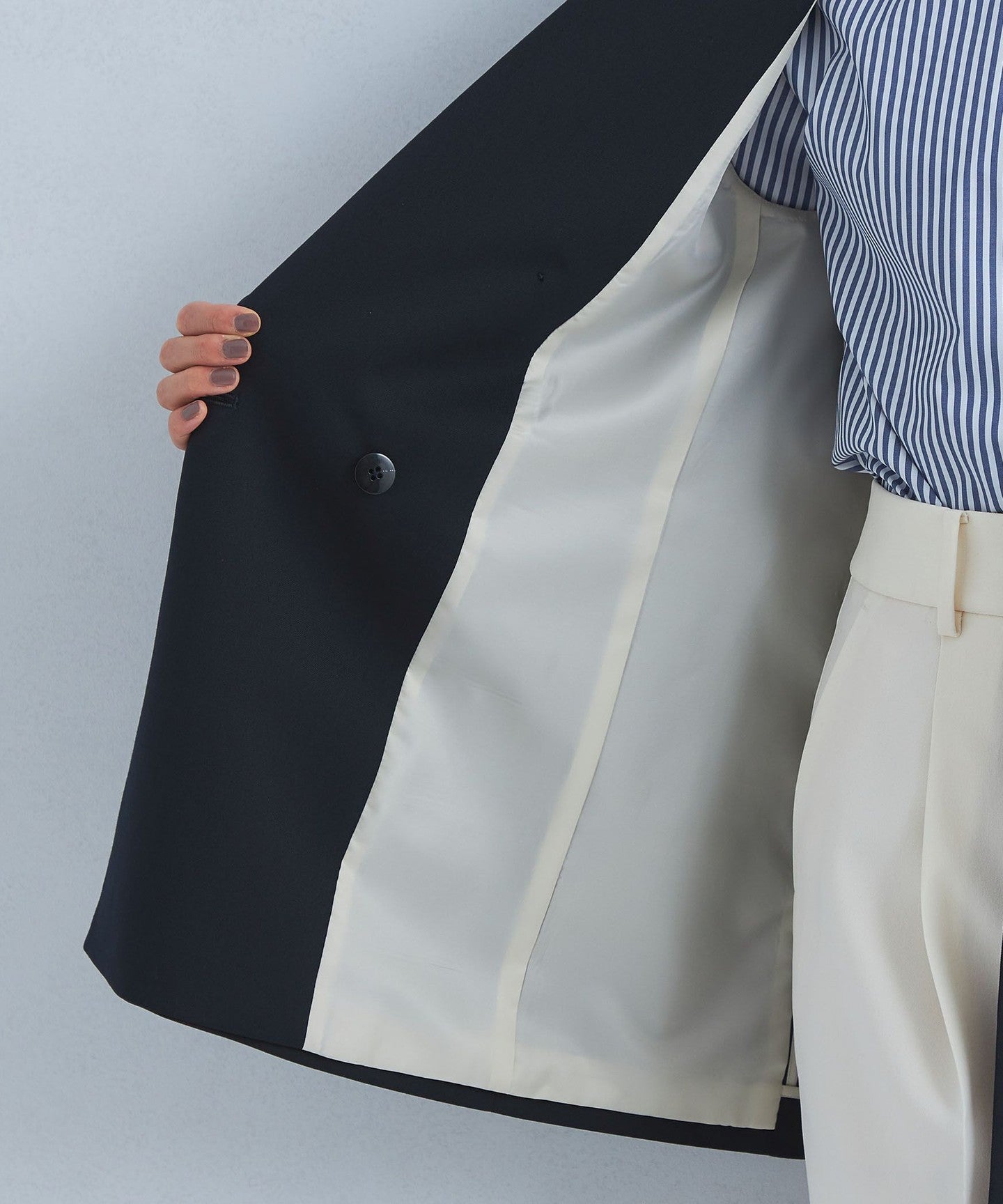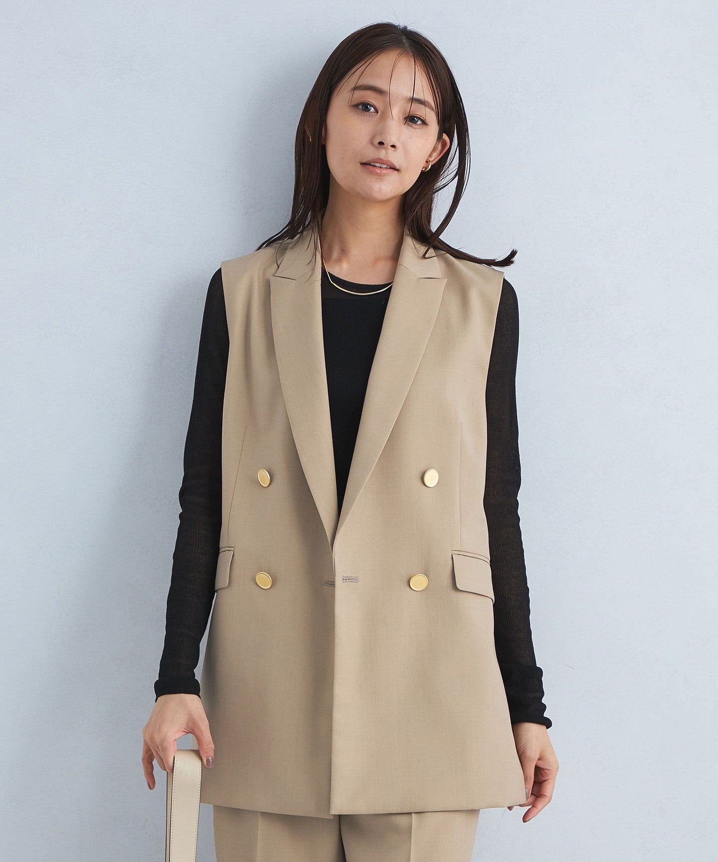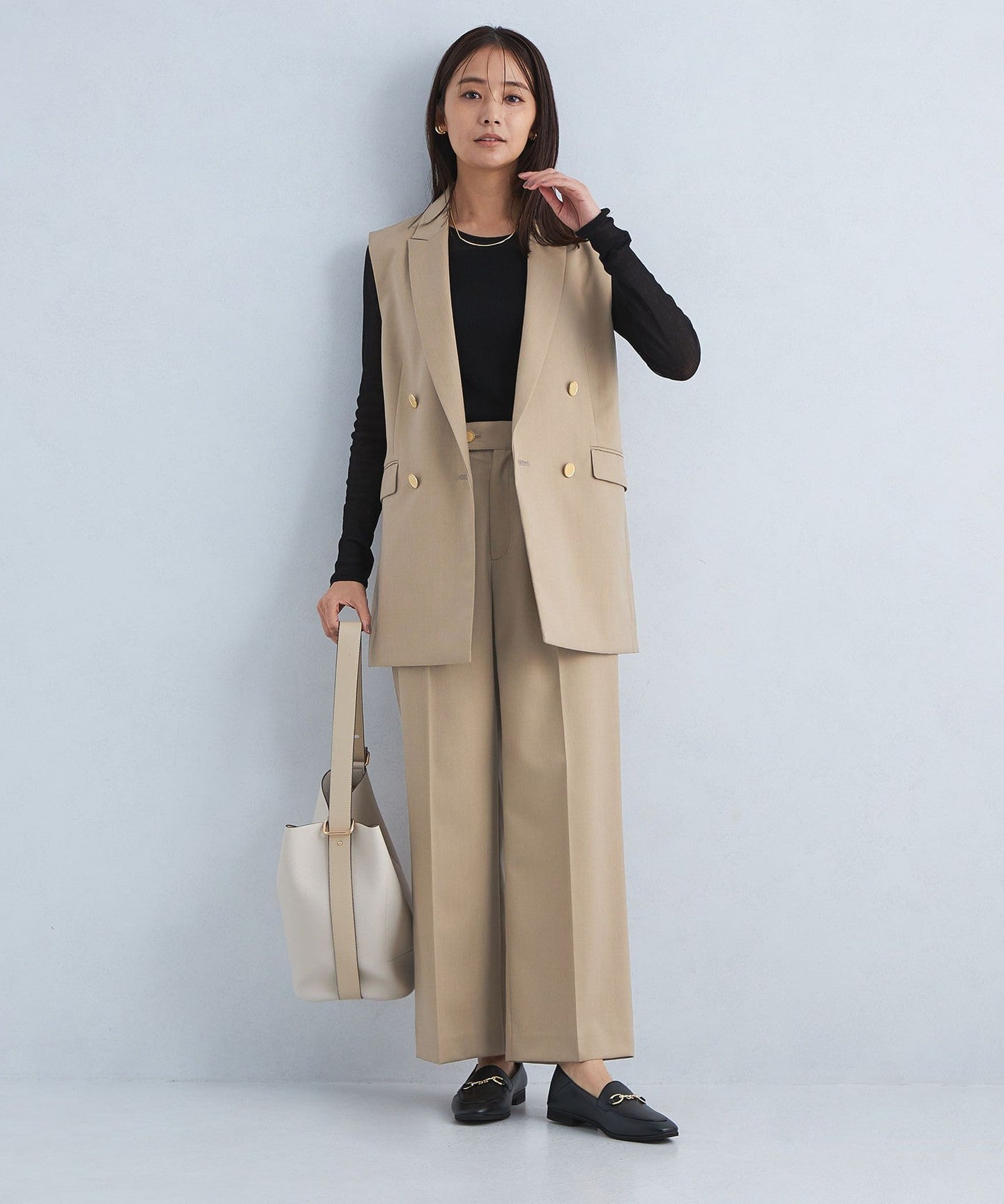 It can be worn as a set with pants from the same series, and we also recommend pairing it with denim for a casual mix look.