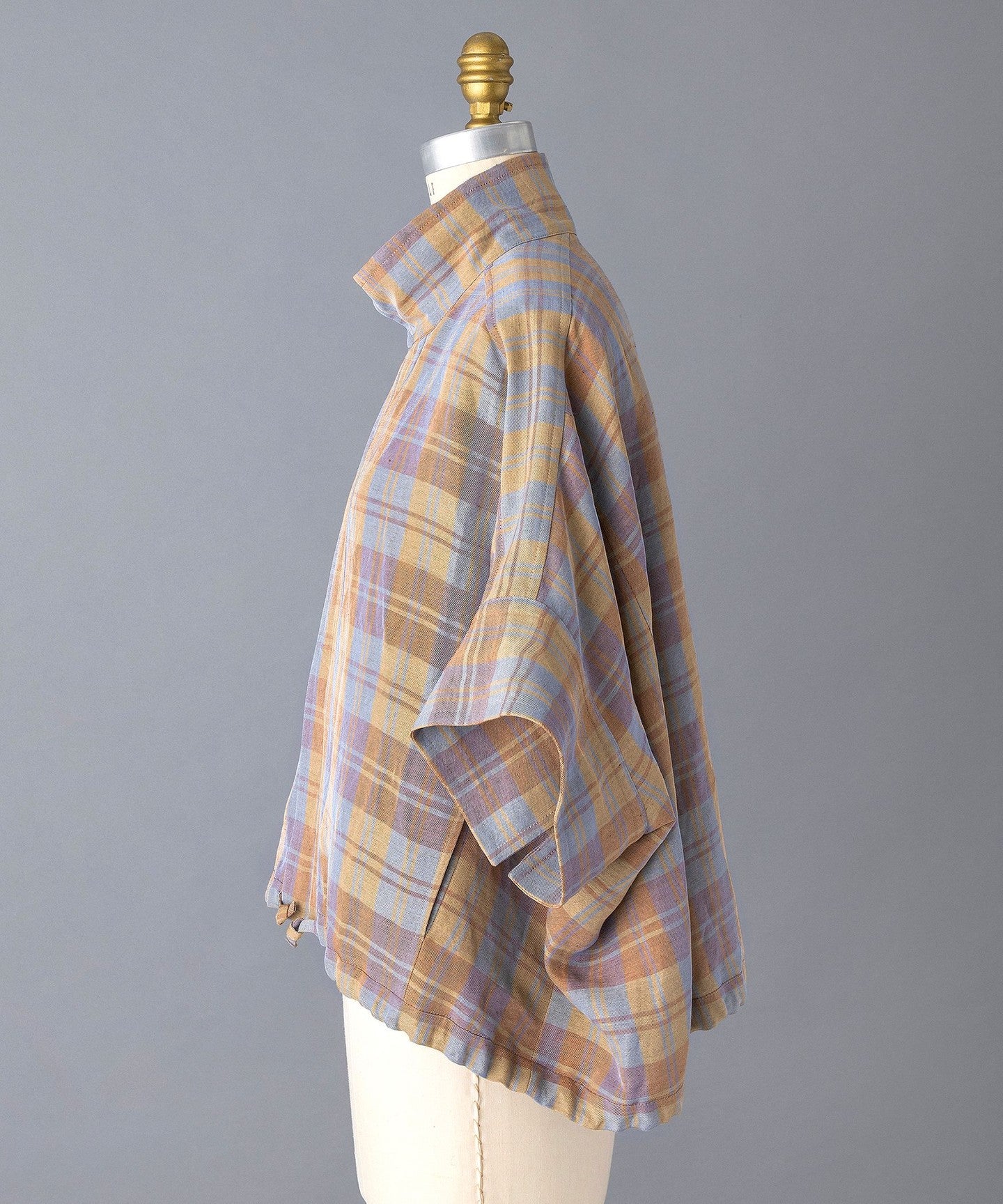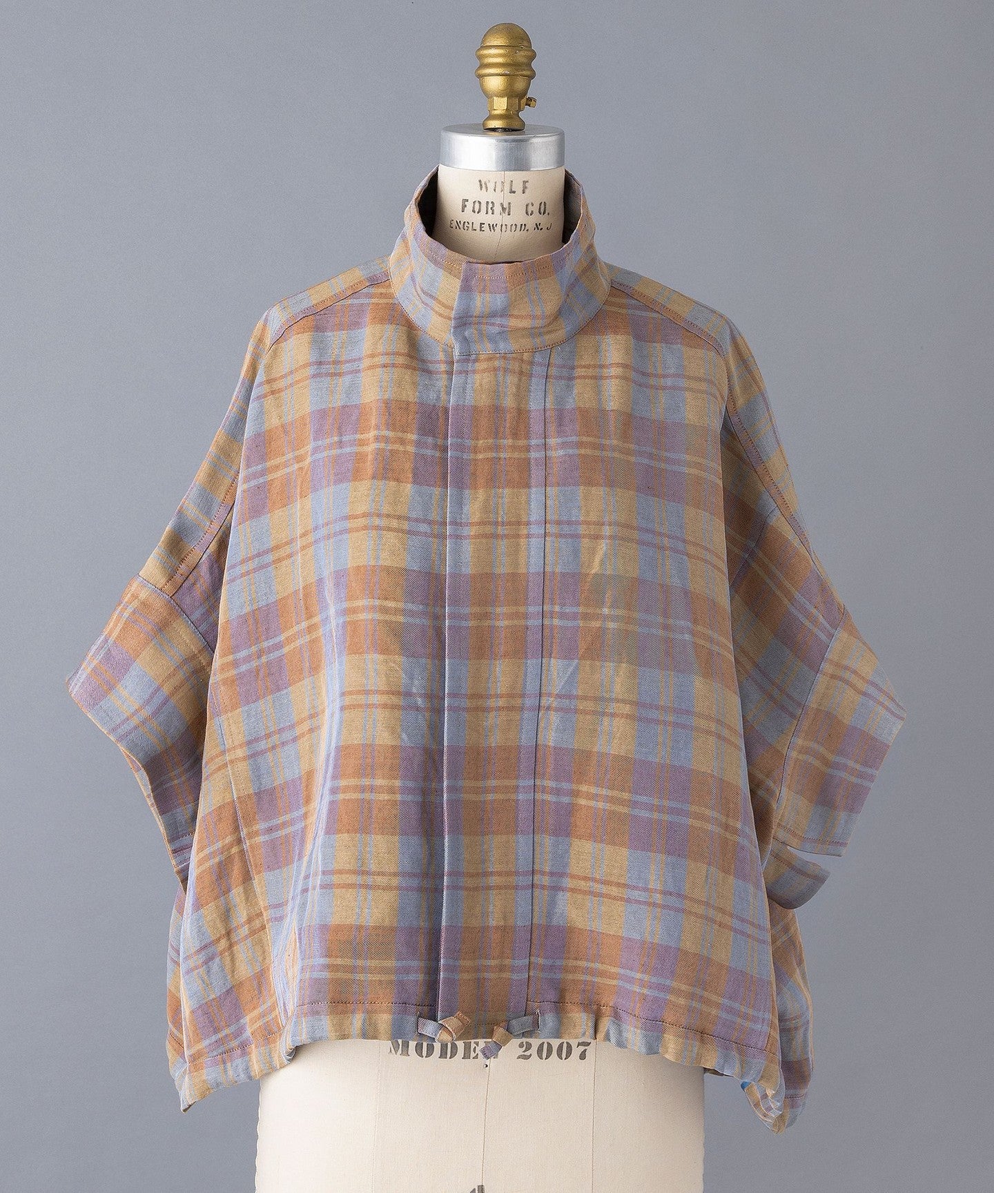 BLAMINKSUMMER Check Stand Collar Short Sleeve BLOUSON