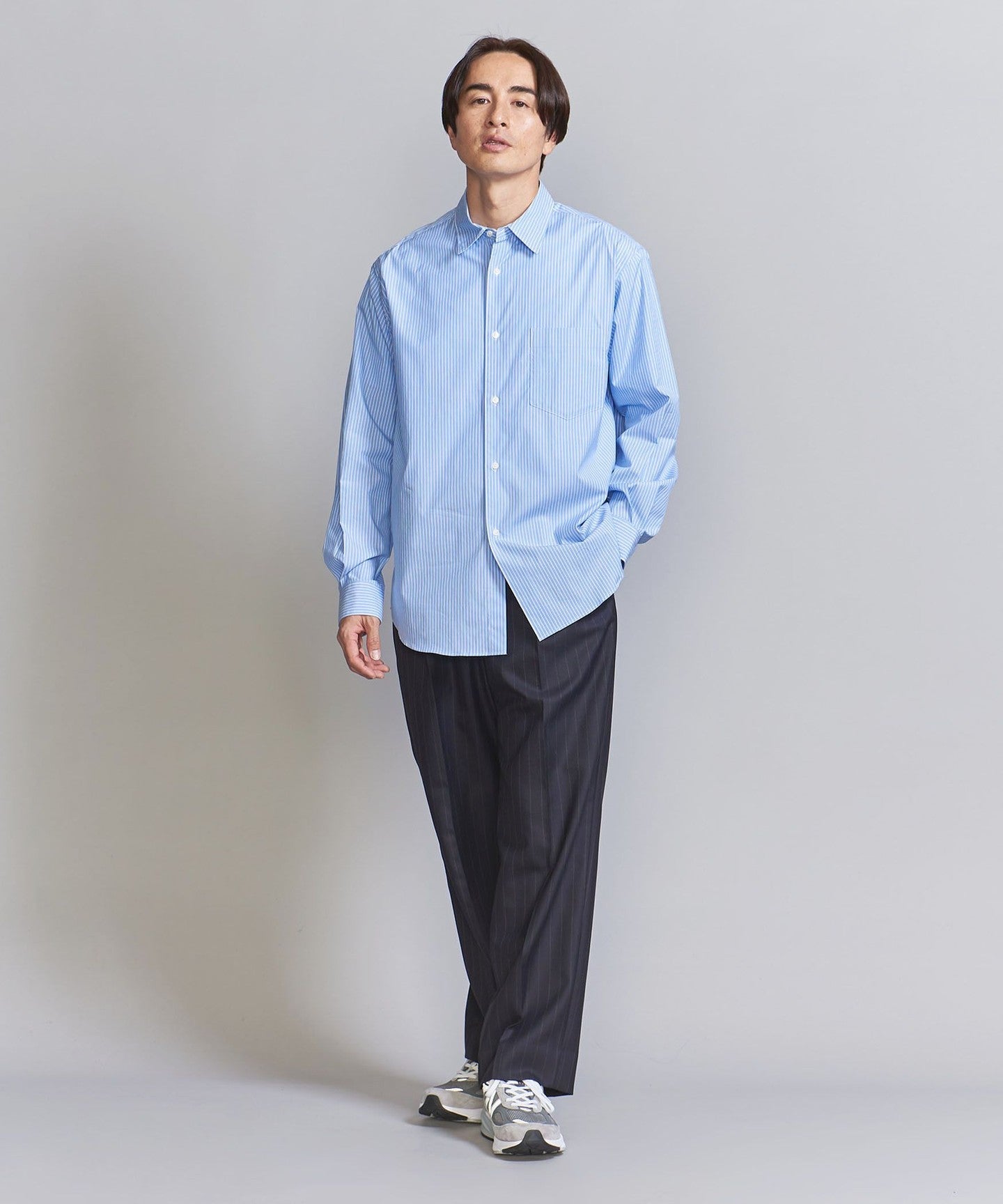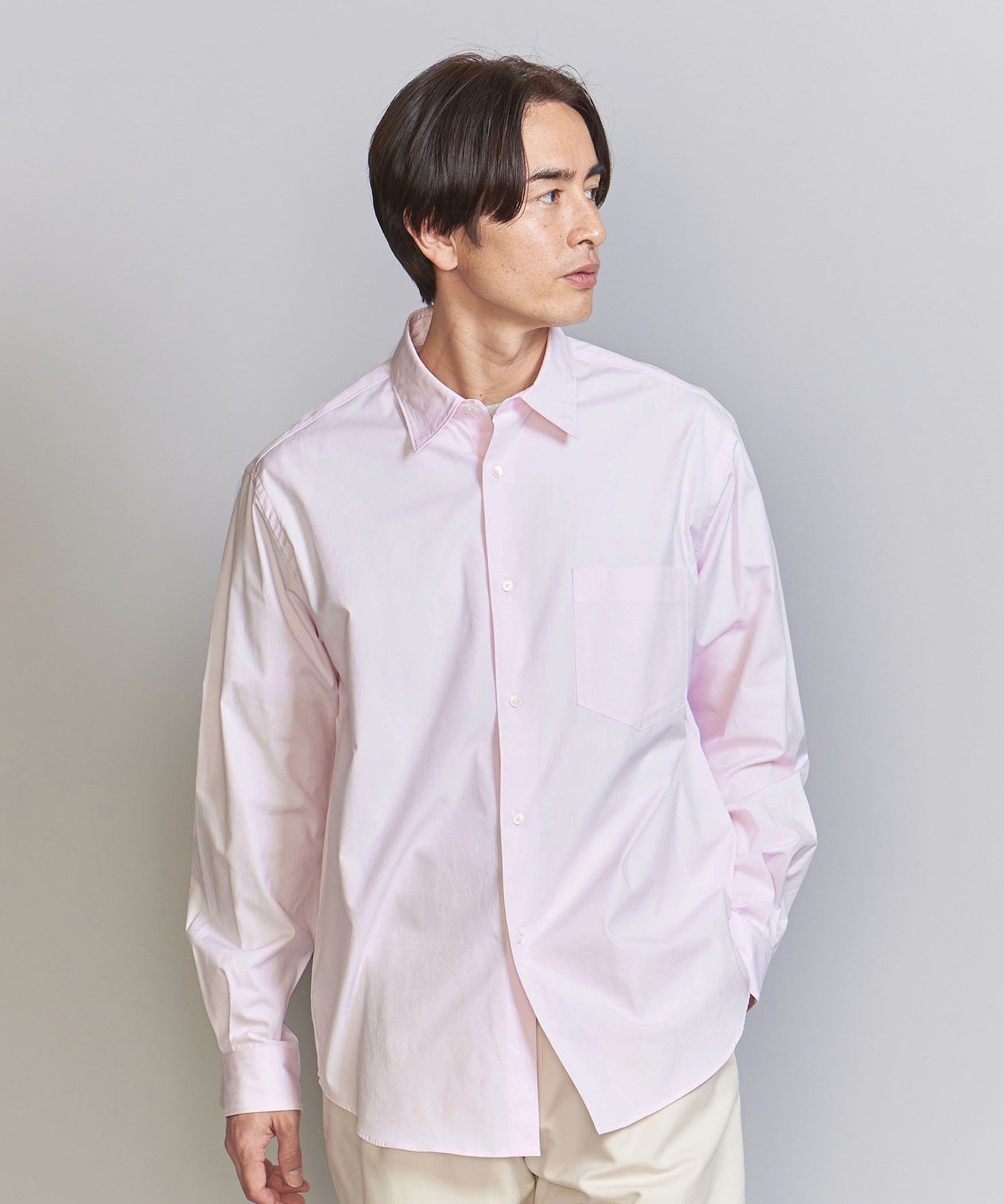 Although the body width is roomy, the neck size is intentionally set narrow, and the narrow V-zone when the first button is opened also creates a sense of elegance.
