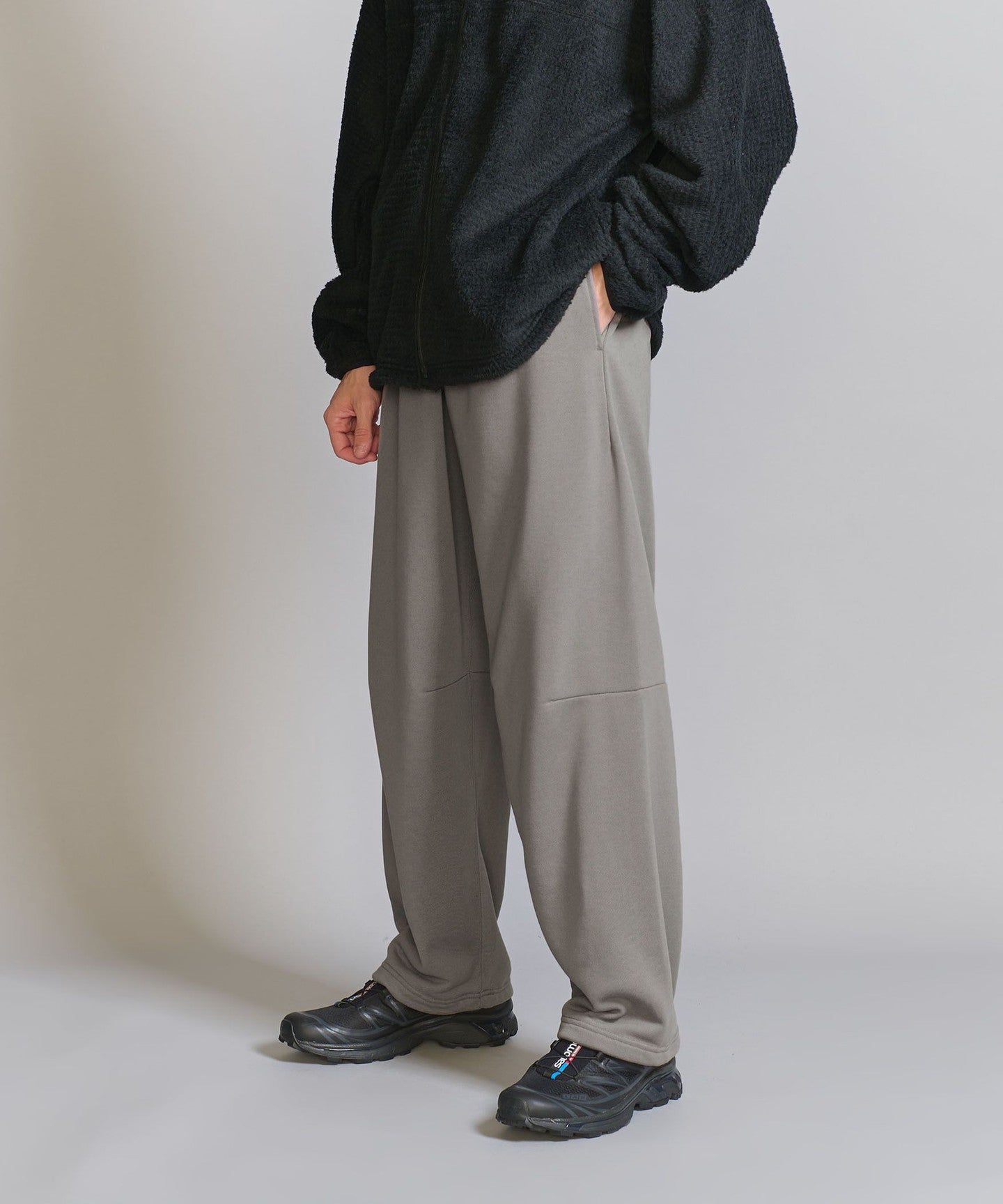 A three-dimensional wide tapered silhouette with a gusset on the inner thigh and a continuous dart from the knee to the back of the knee.