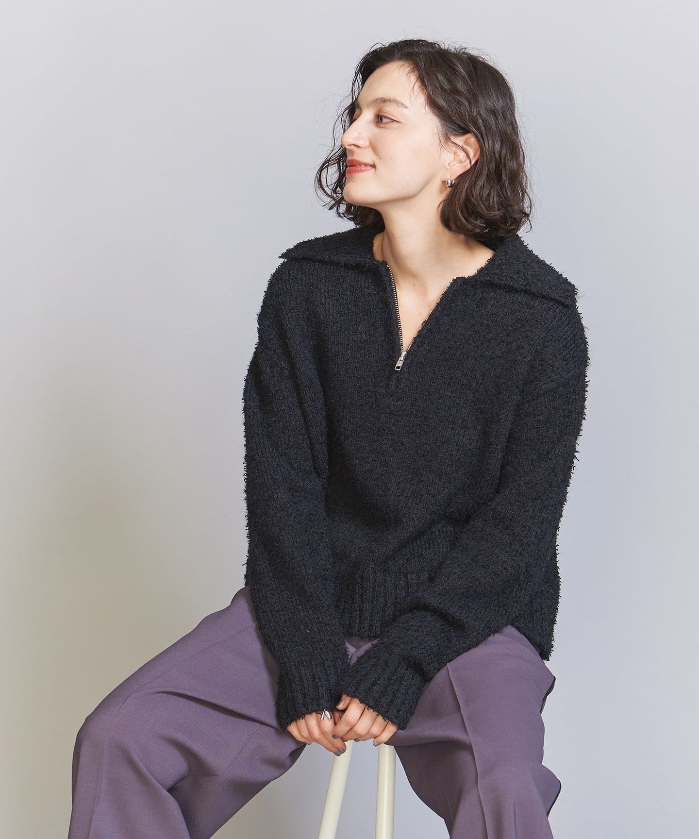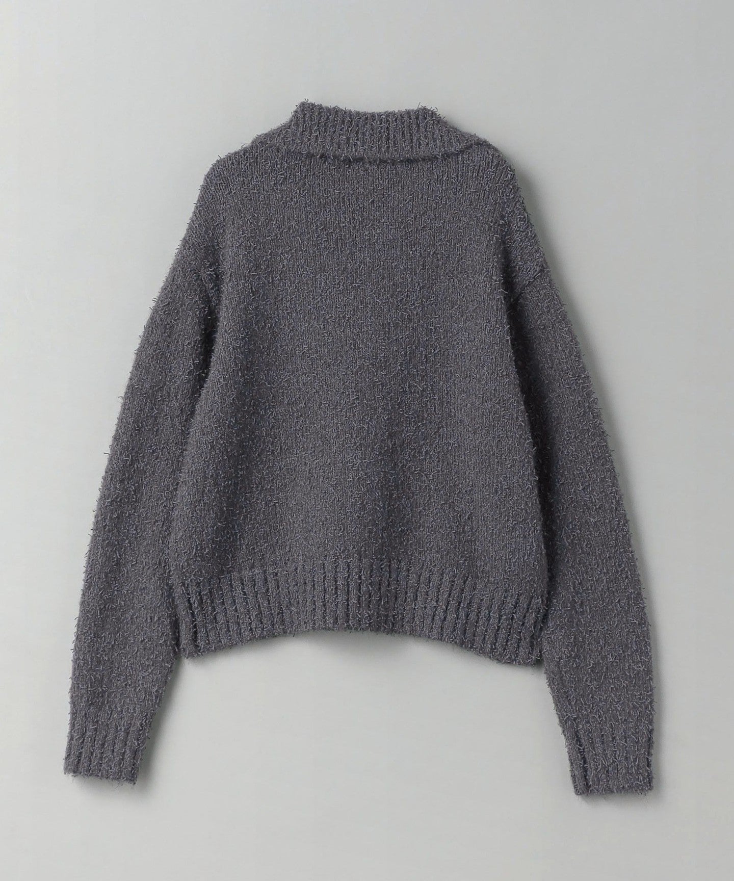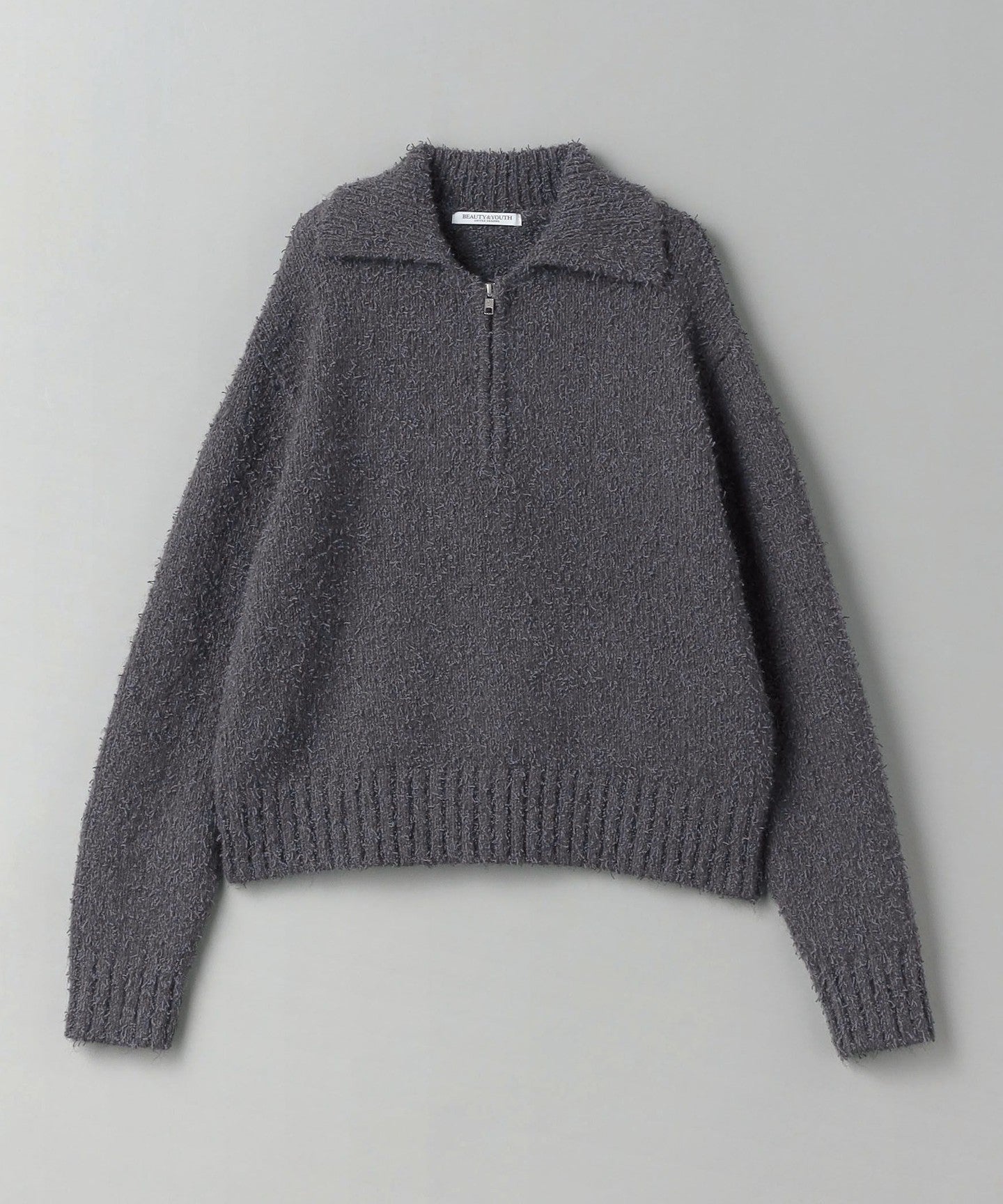 EXTERIOR This piece makes the most of the rich texture of the material and is finished with a simple half-zip design.