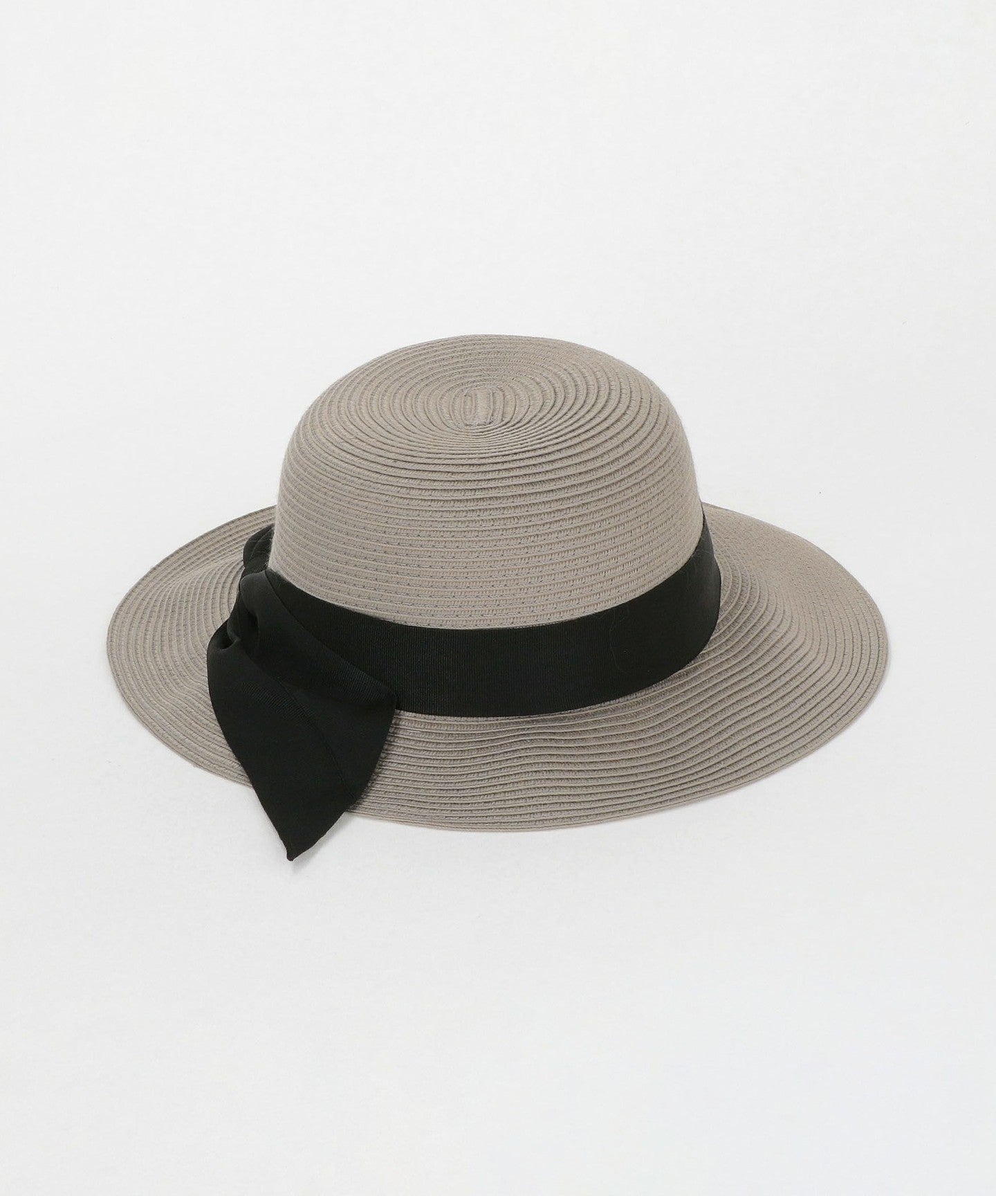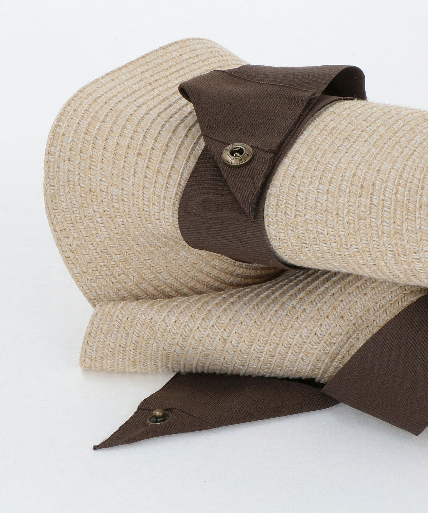 The light gray has a black ribbon, and the natural has a brown ribbon.