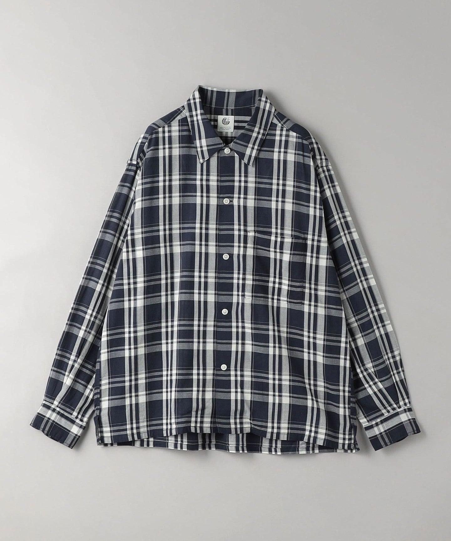 The navy and off-white check pattern is eye-catching.SHIRT .