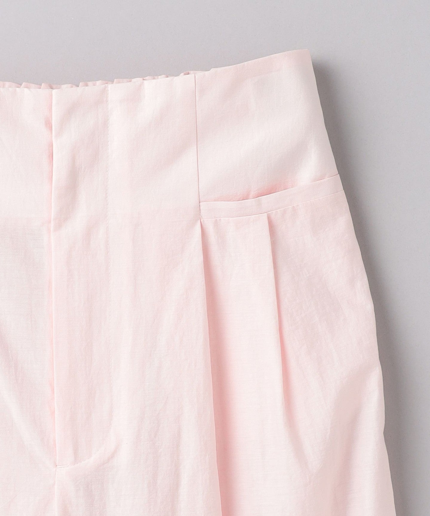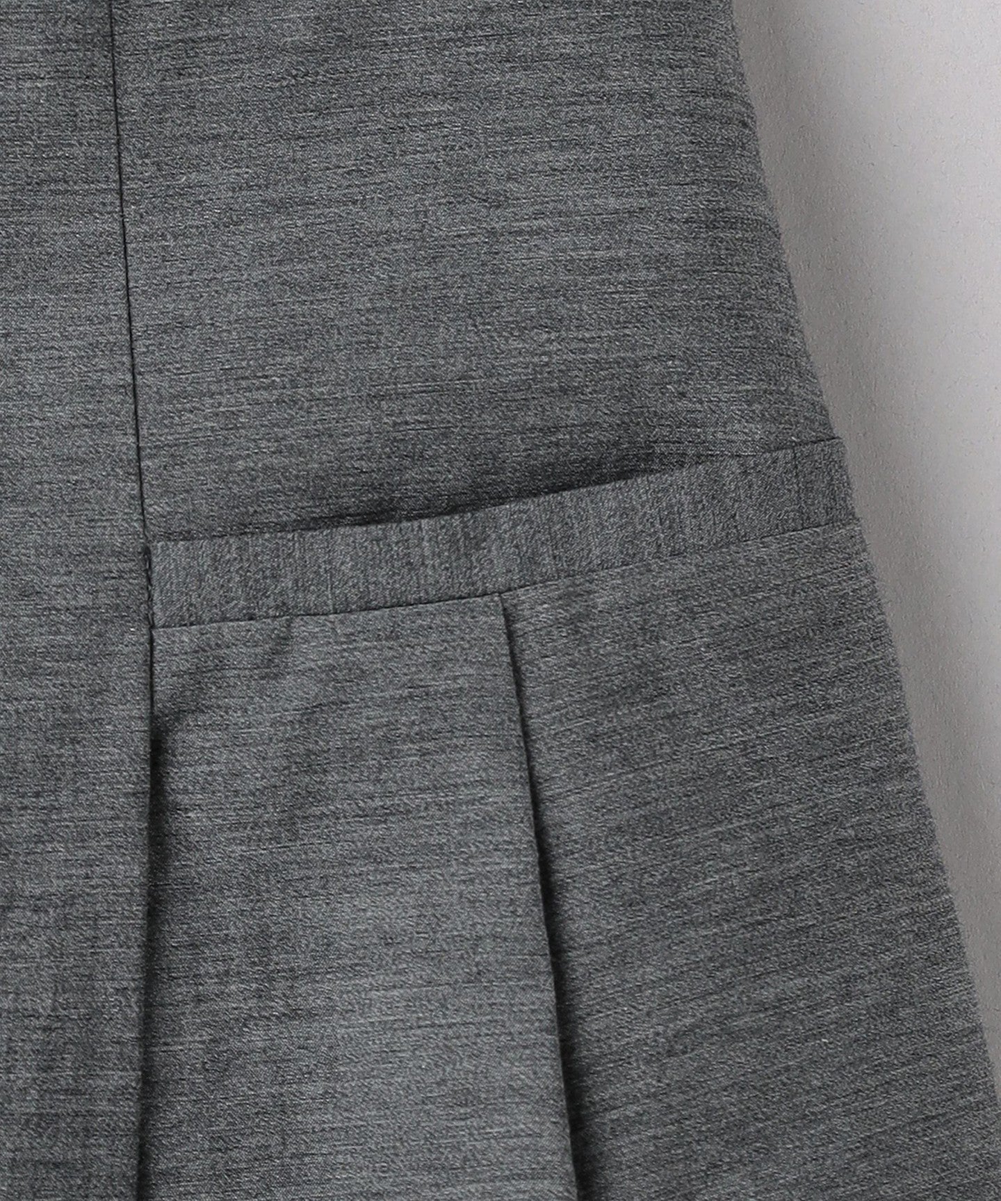 It features a wide silhouette from the hips to the hem while keeping the waist area slim.
