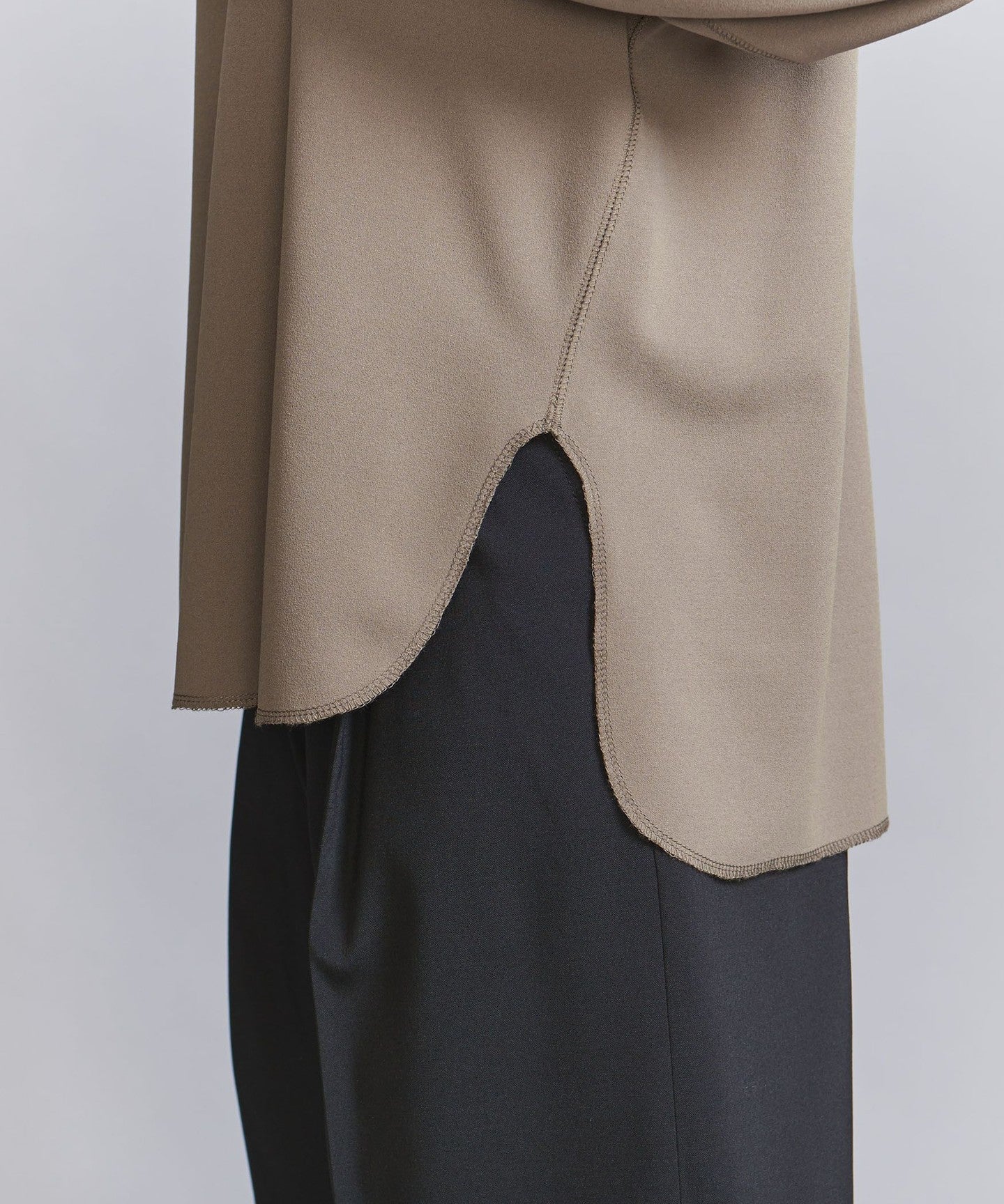 This item is subtle yet packed with attention to detail, with just the right amount of volume to create a nuanced look when the sleeves are rolled up, and side slits that add a focal point when worn on its own.