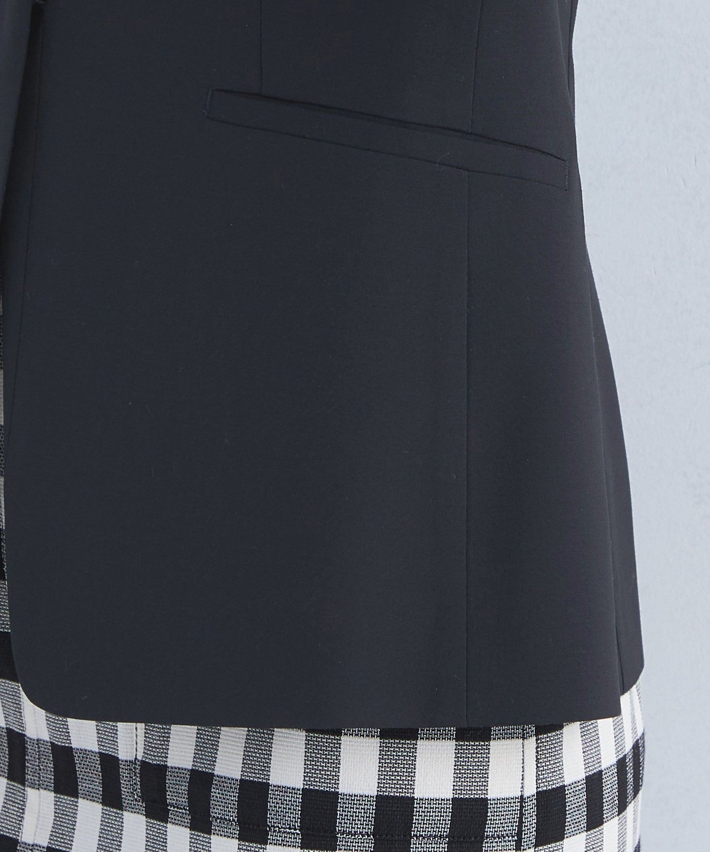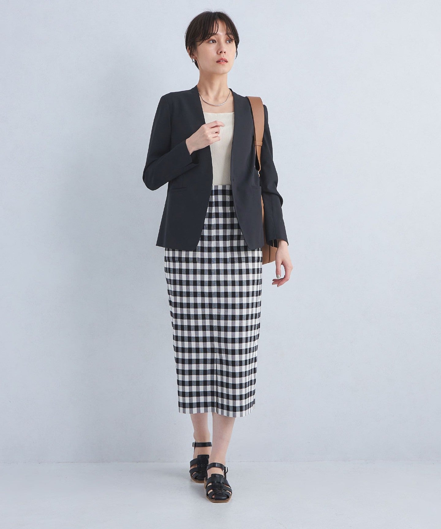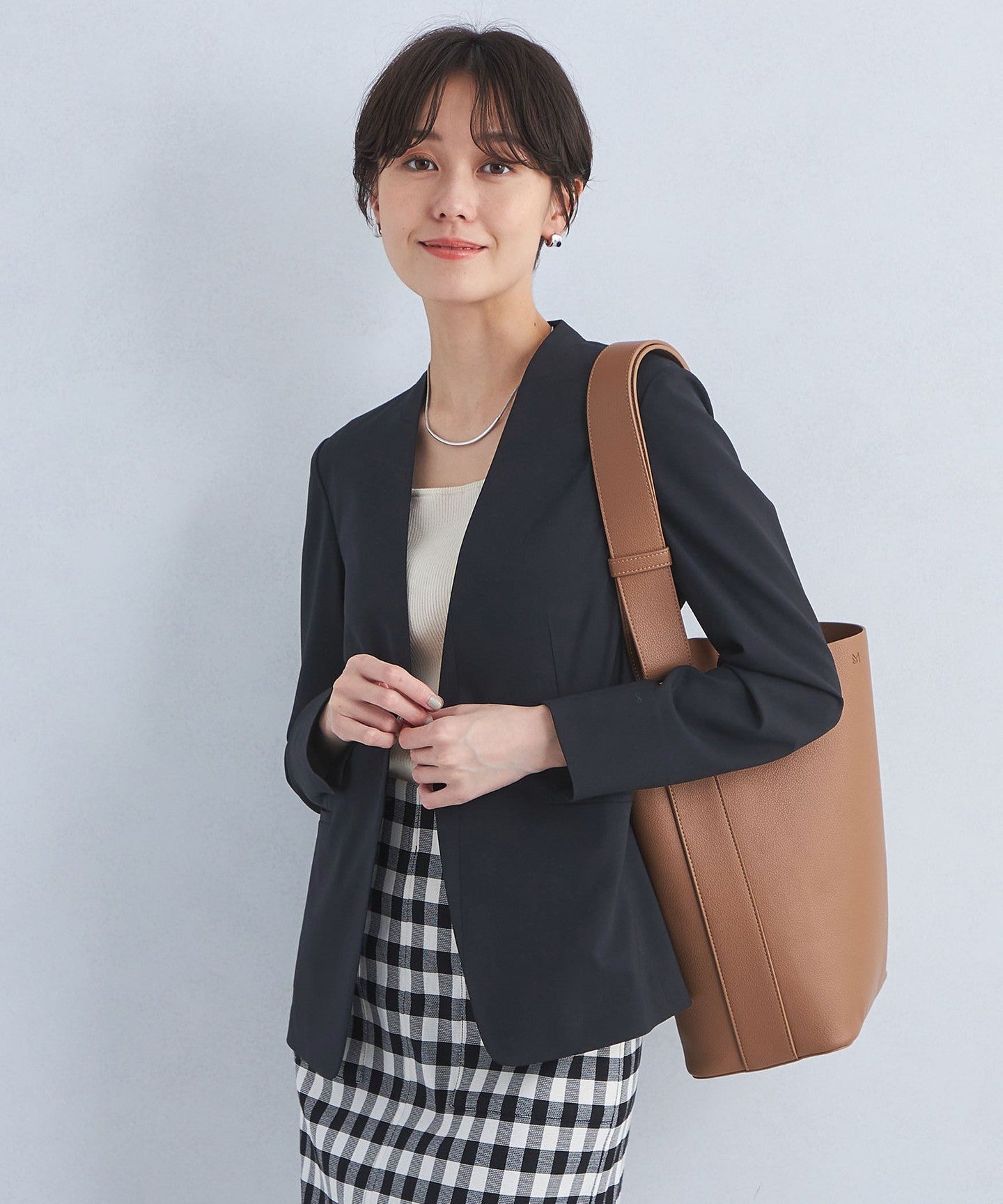 This no-lapel jacket has a clean, unadorned design that makes it easy to mix and match.