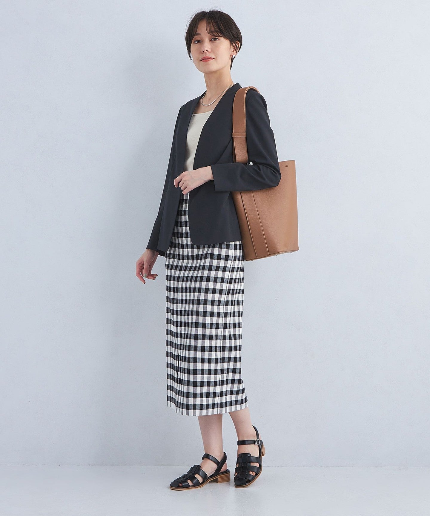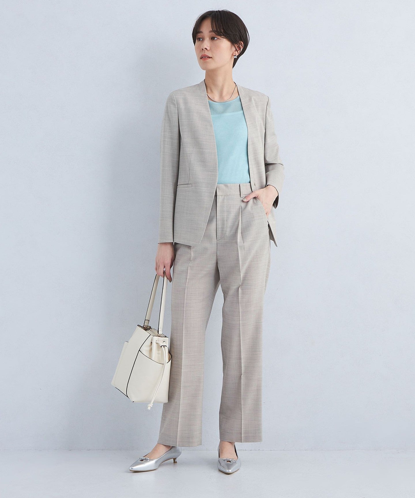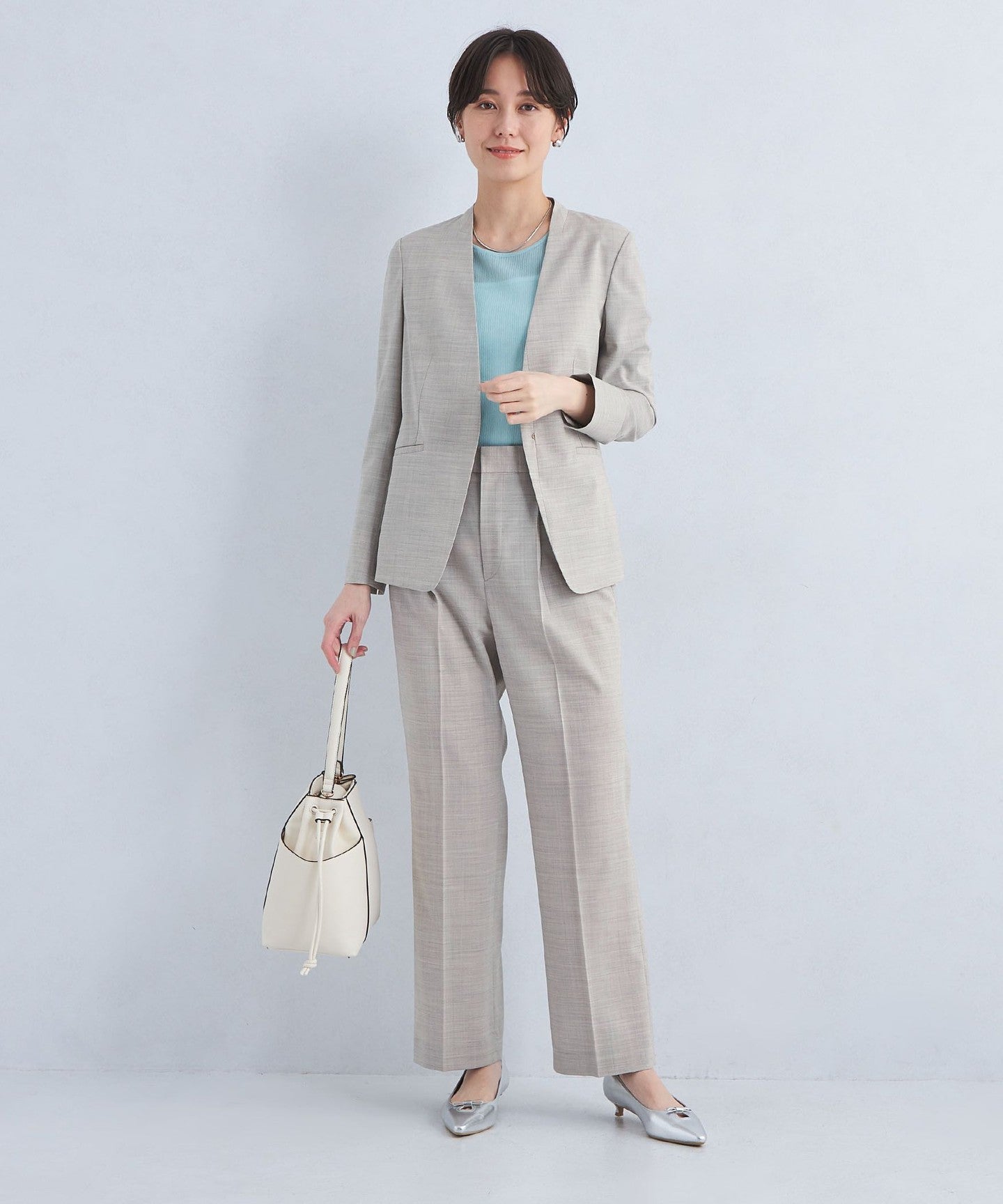 It goes well with a variety of items such as wide pants and I-line skirts.