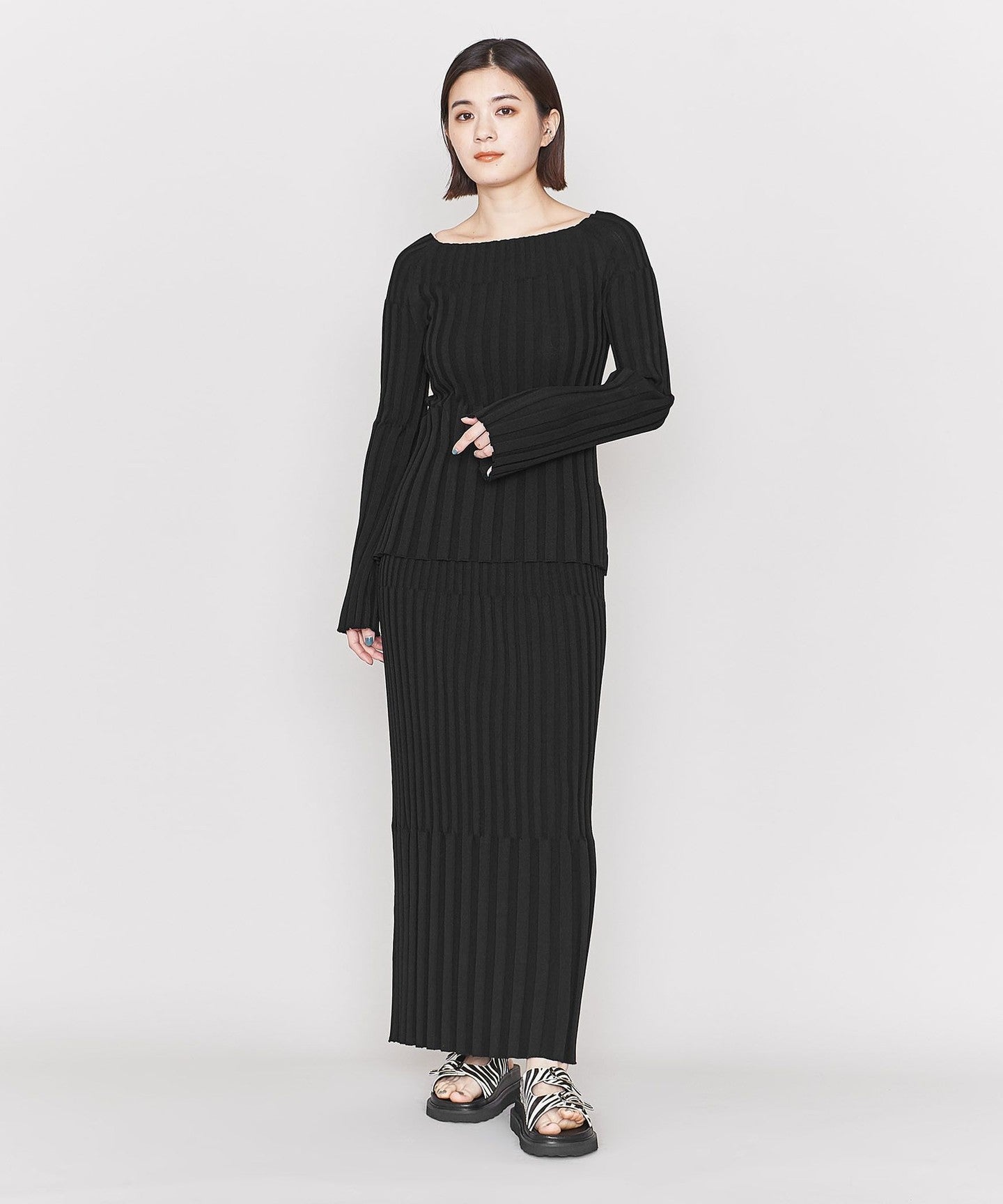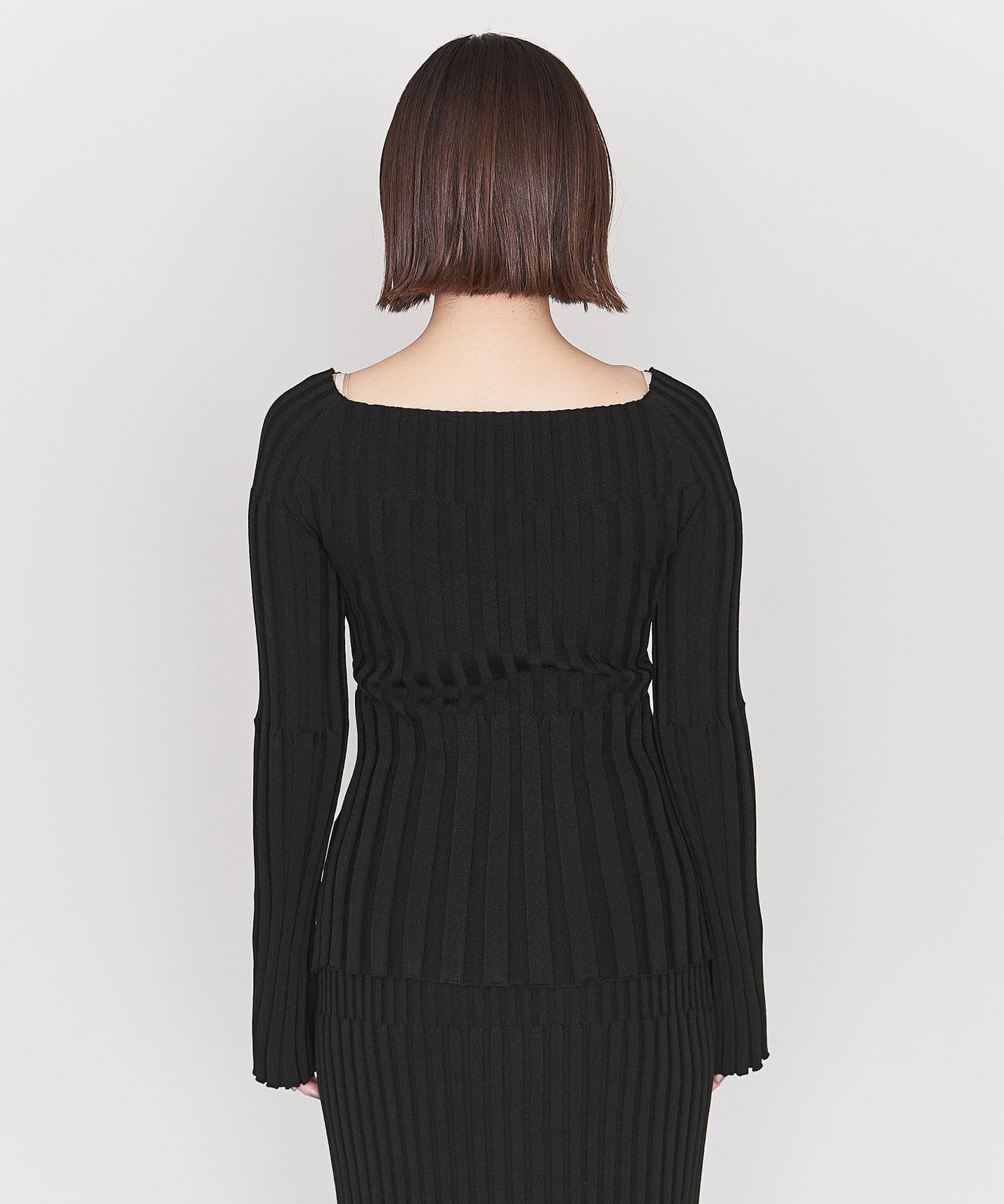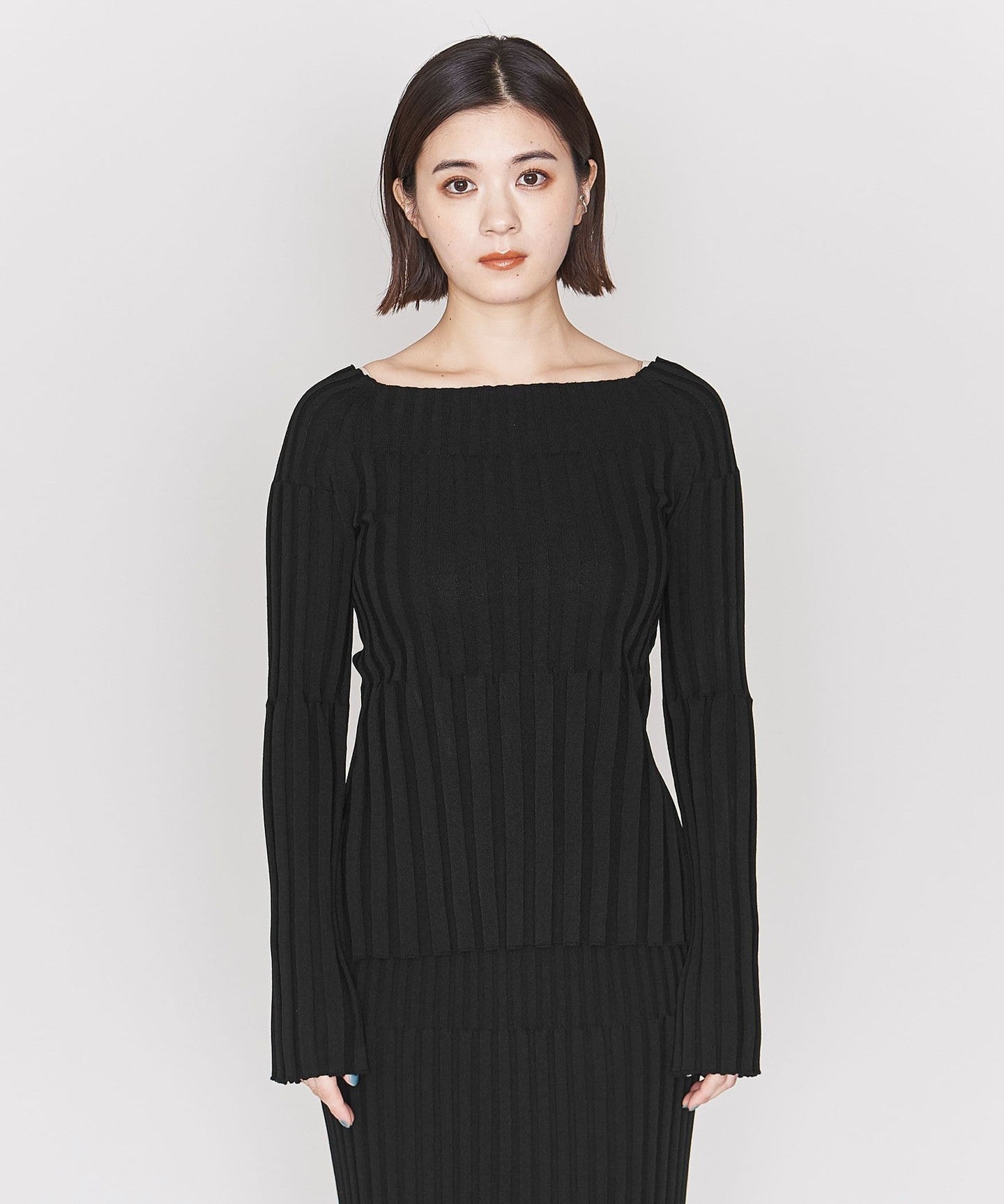 <ASTRAET> Ribbed boat neck flared sleeves KNIT