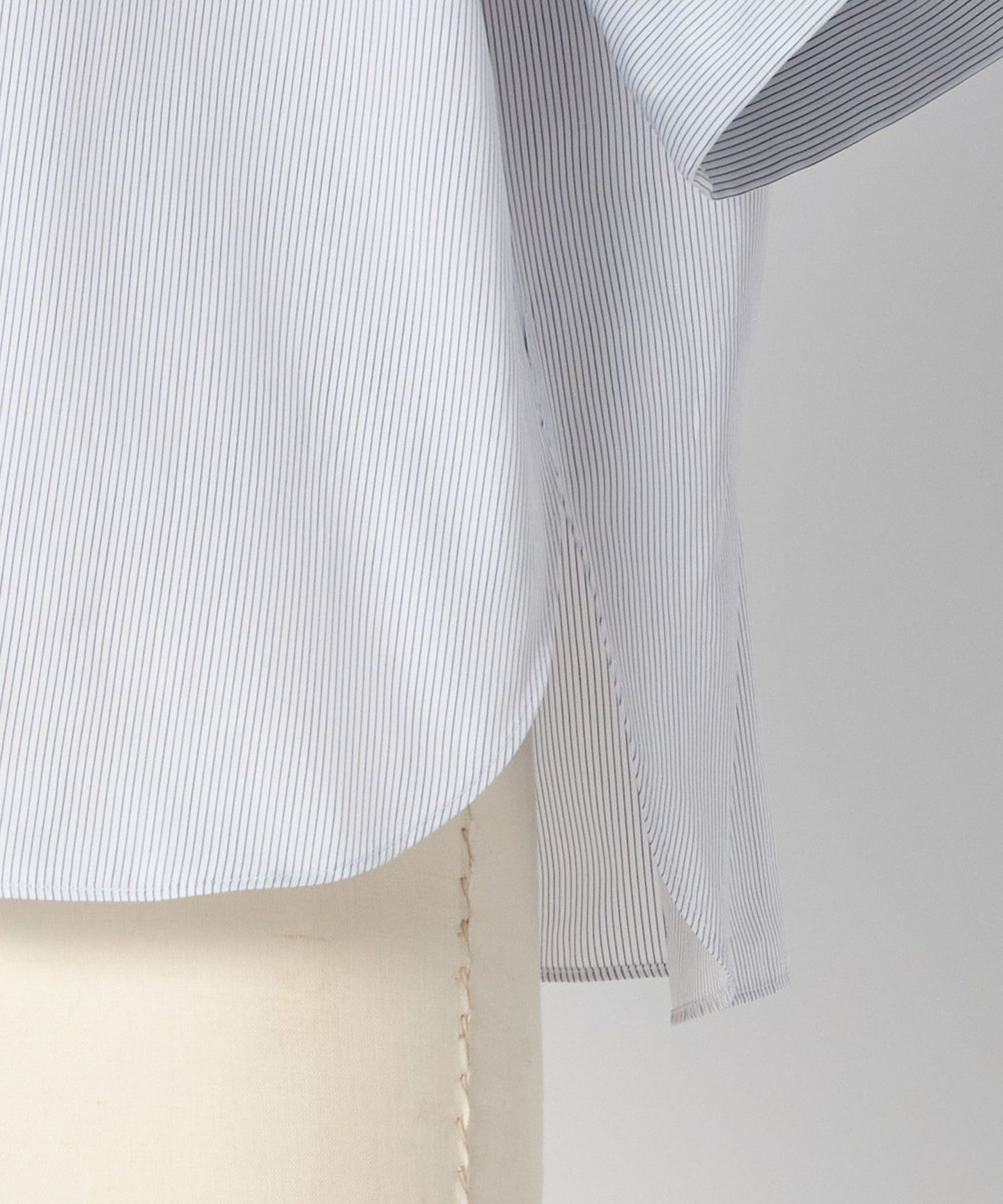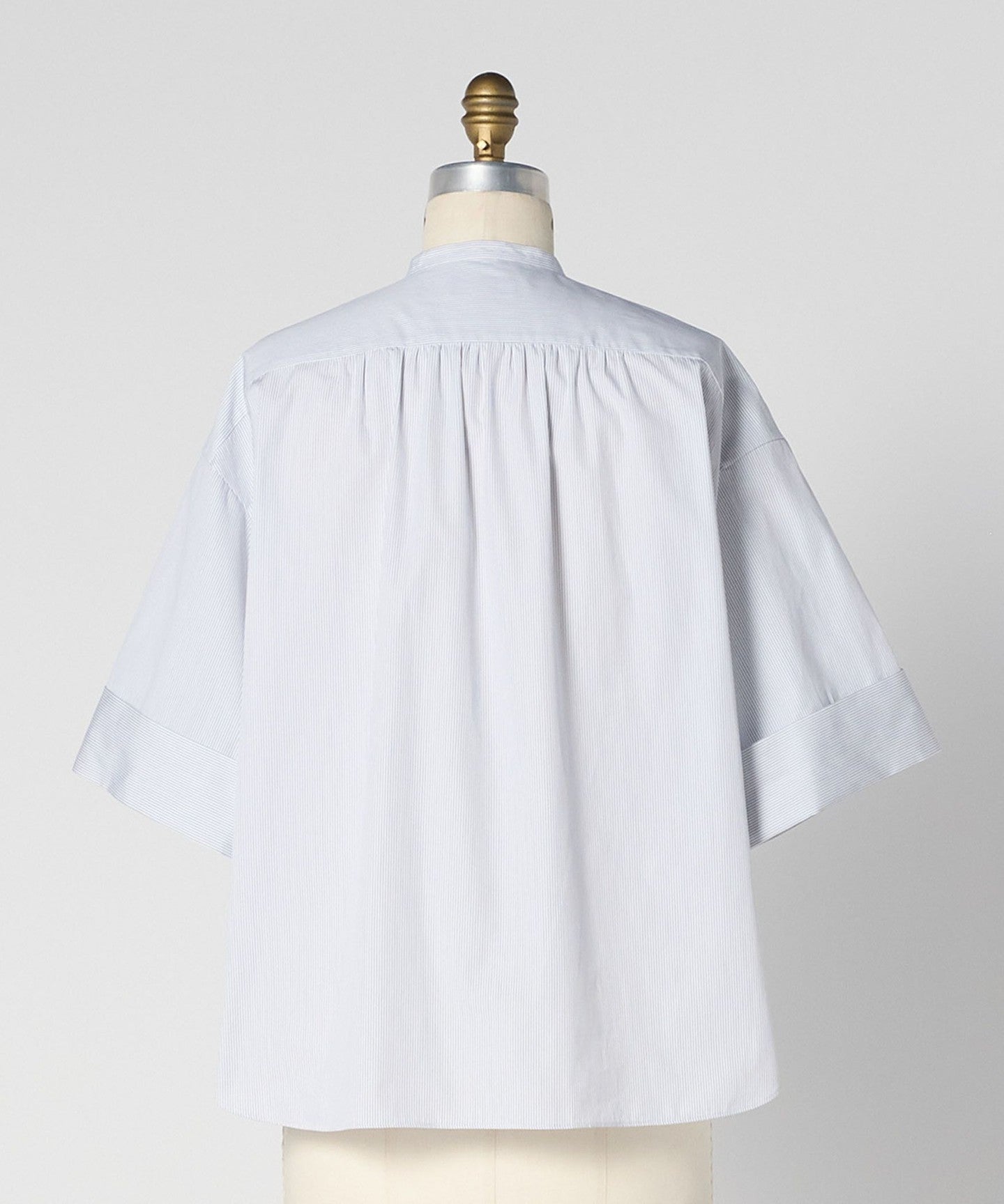 This piece has a beautiful balance of delicate and elegant pinstripe pattern and feminine details.