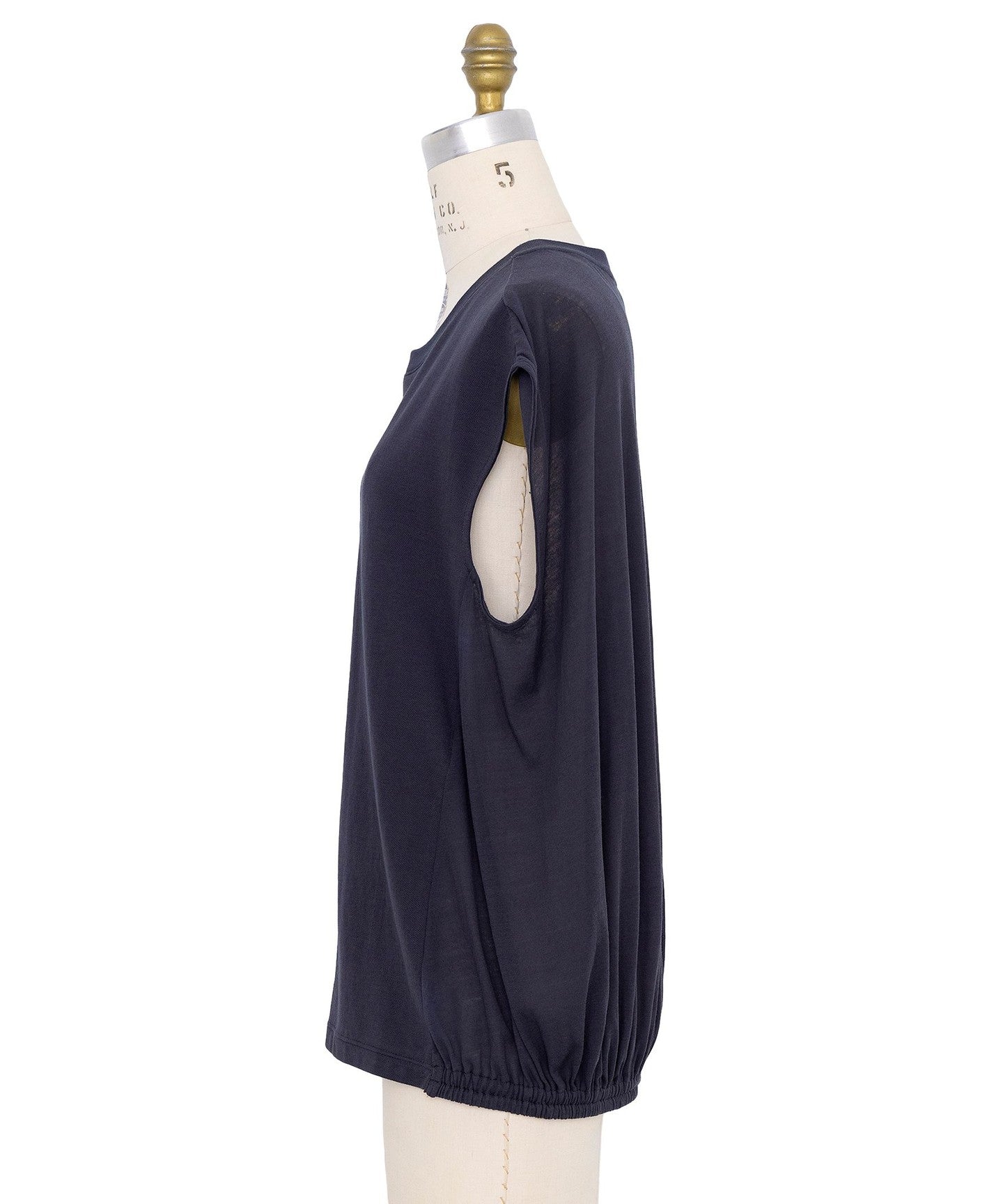 The back is made of slightly transparent cotton gauze jersey material for a light finish.