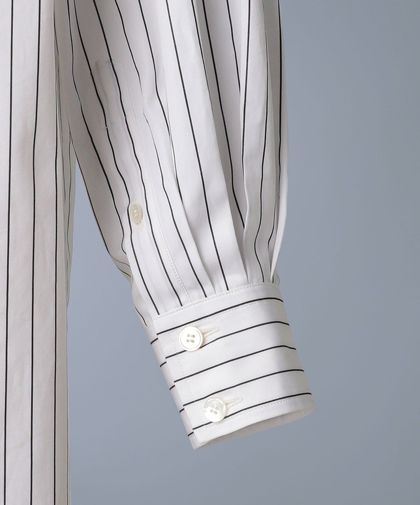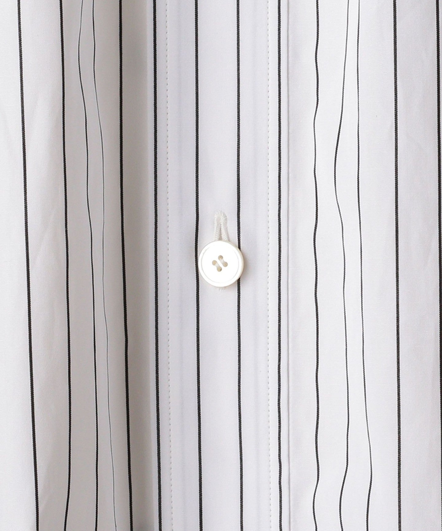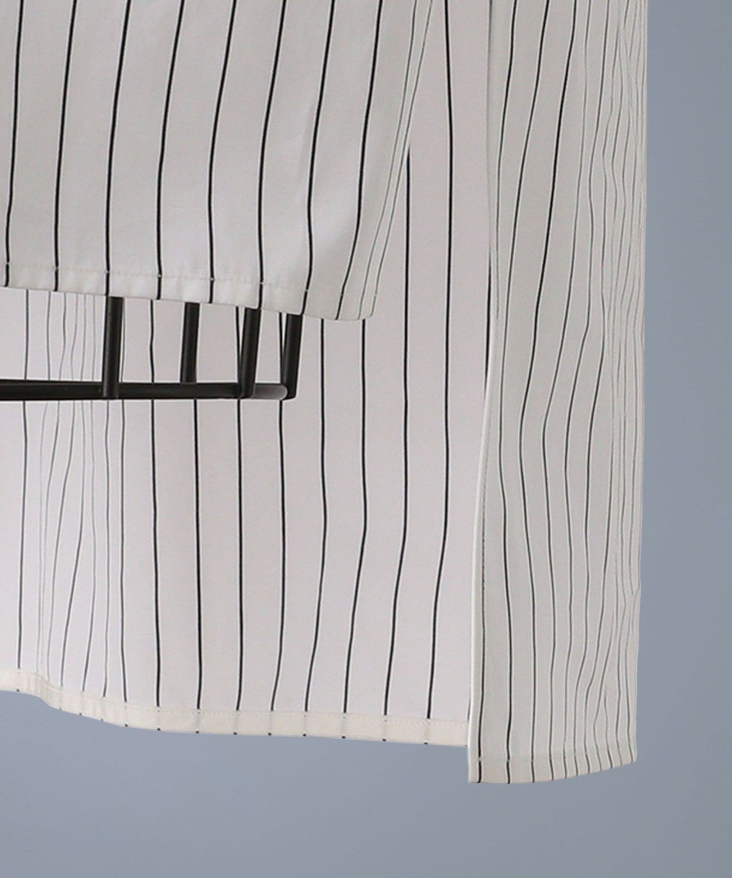 The three-dimensional silhouette created by gathering and the striped pattern are the highlights.