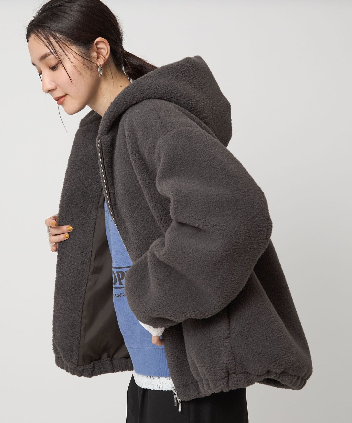 The hem has a drawstring, so you can enjoy changing the silhouette by tightening the hem.